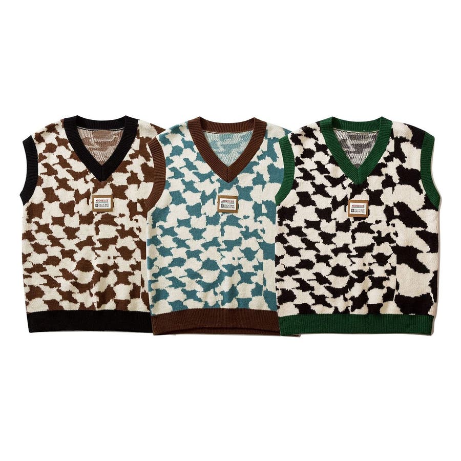 アニマル模様Vネックニットベスト ストリート系 ロンT