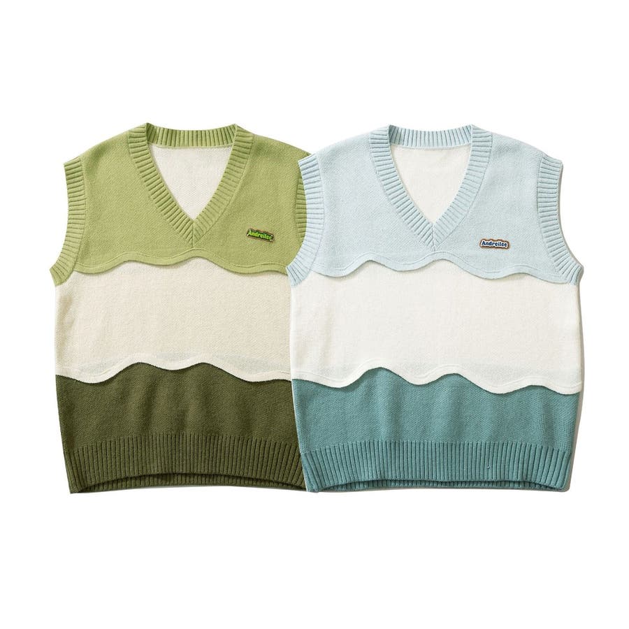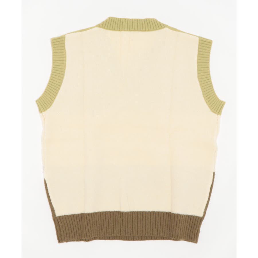 【HOOK】配色3段切り替えVネックニットベスト ストリート系 ロンT