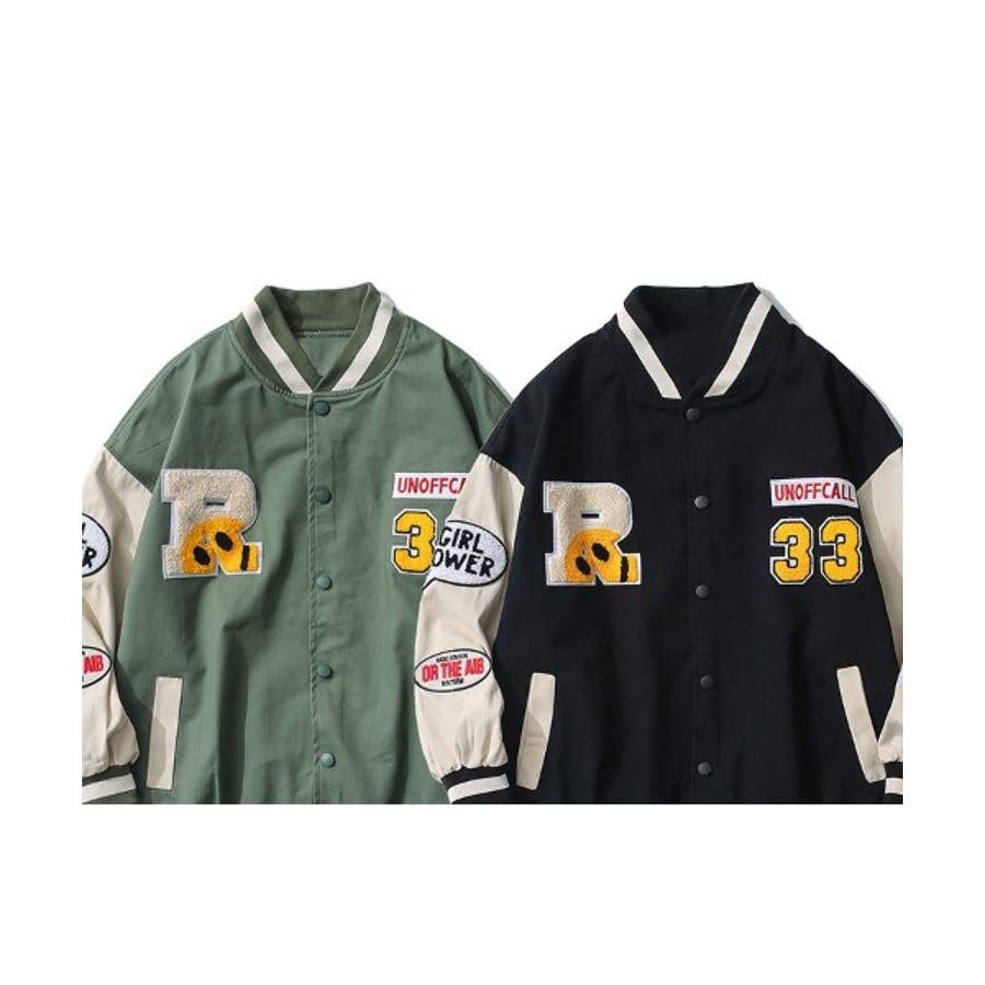 HOOK 数字ロゴアメカジ袖配色切り替えドッキングブルゾン お揃い