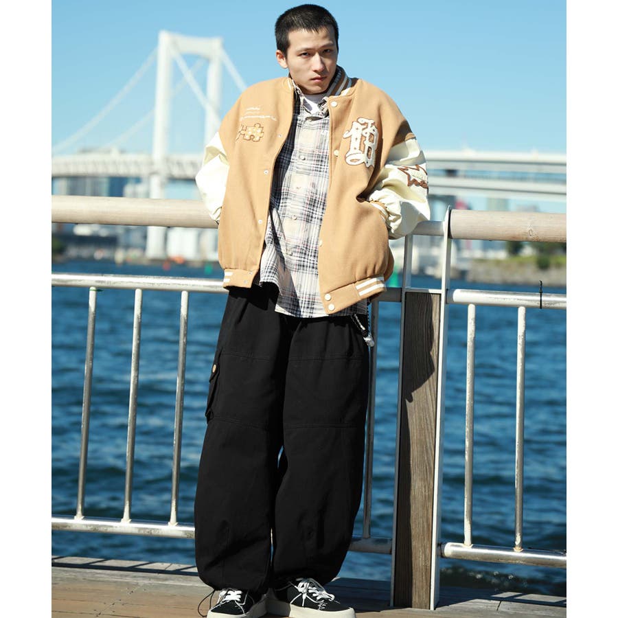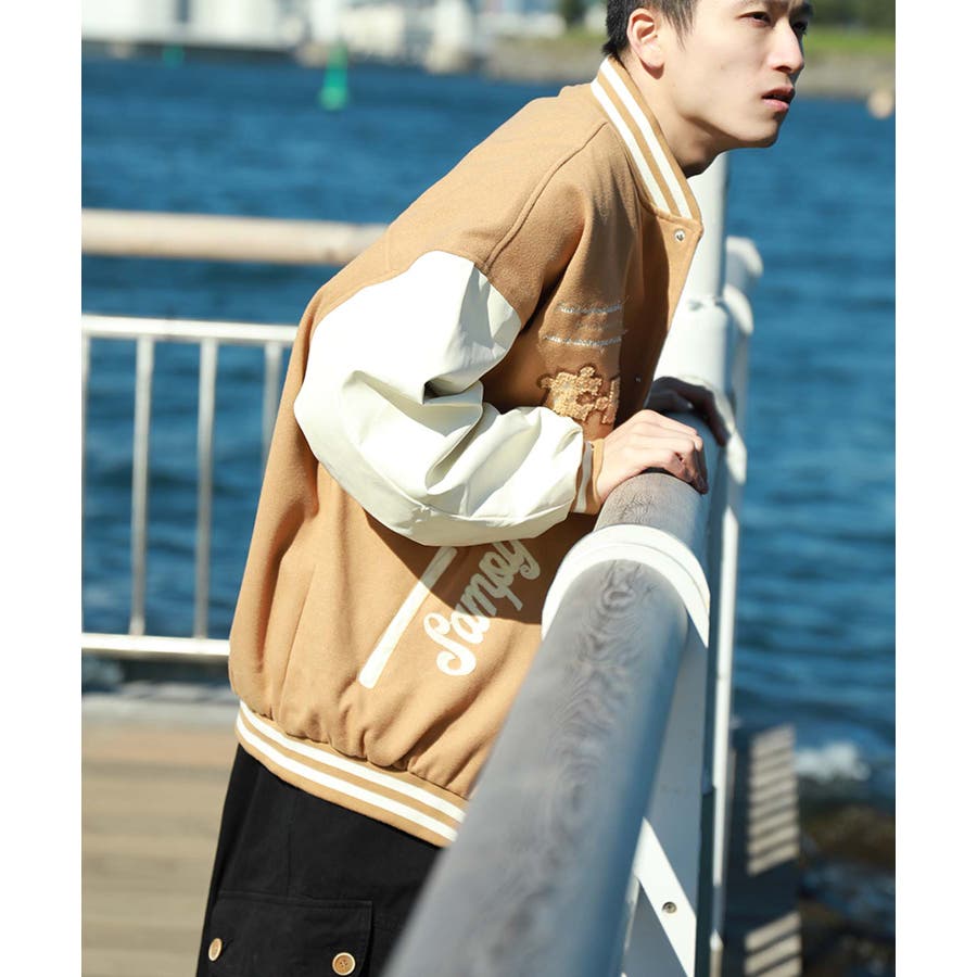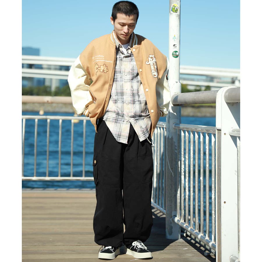 ブルゾン【HOOK】B柄 ユニセックスアメカジワッペン刺繍スタジャンジャケット …