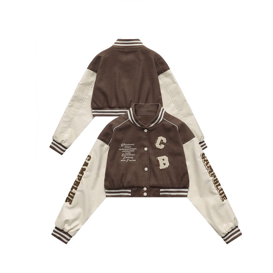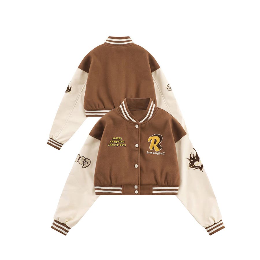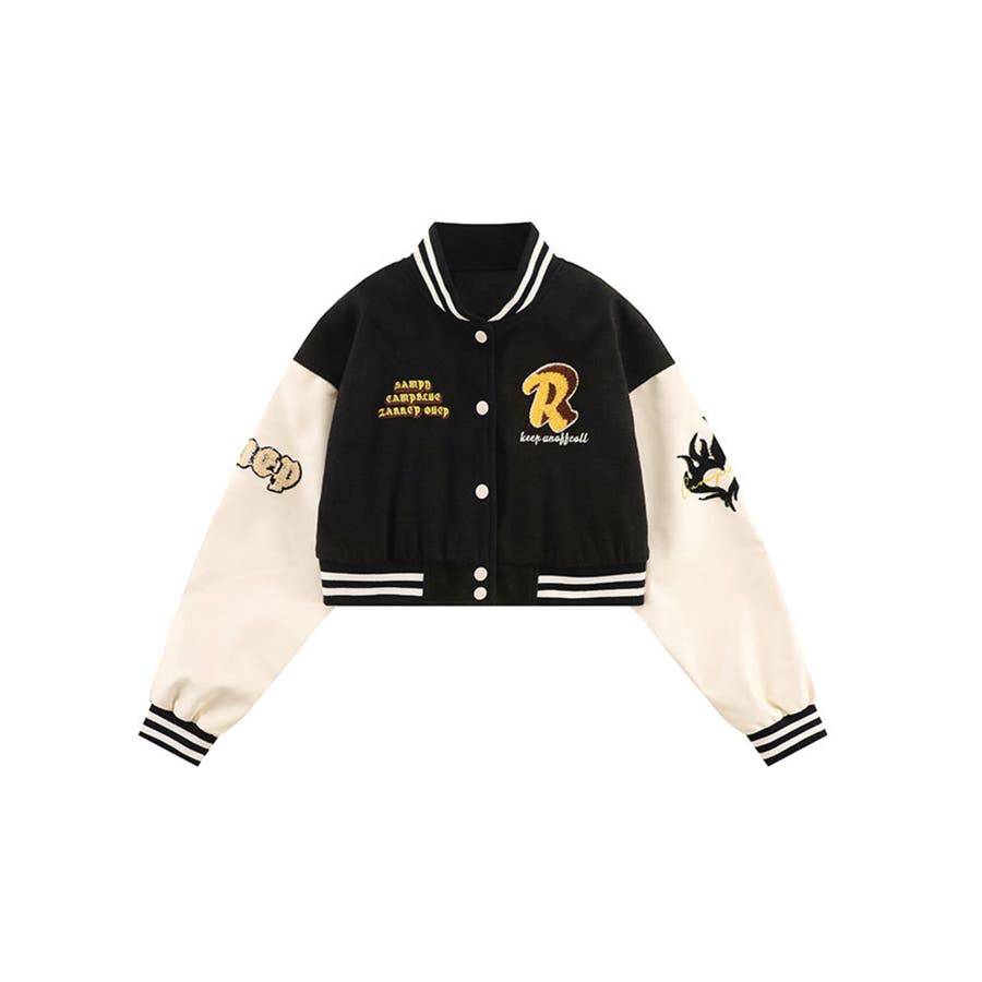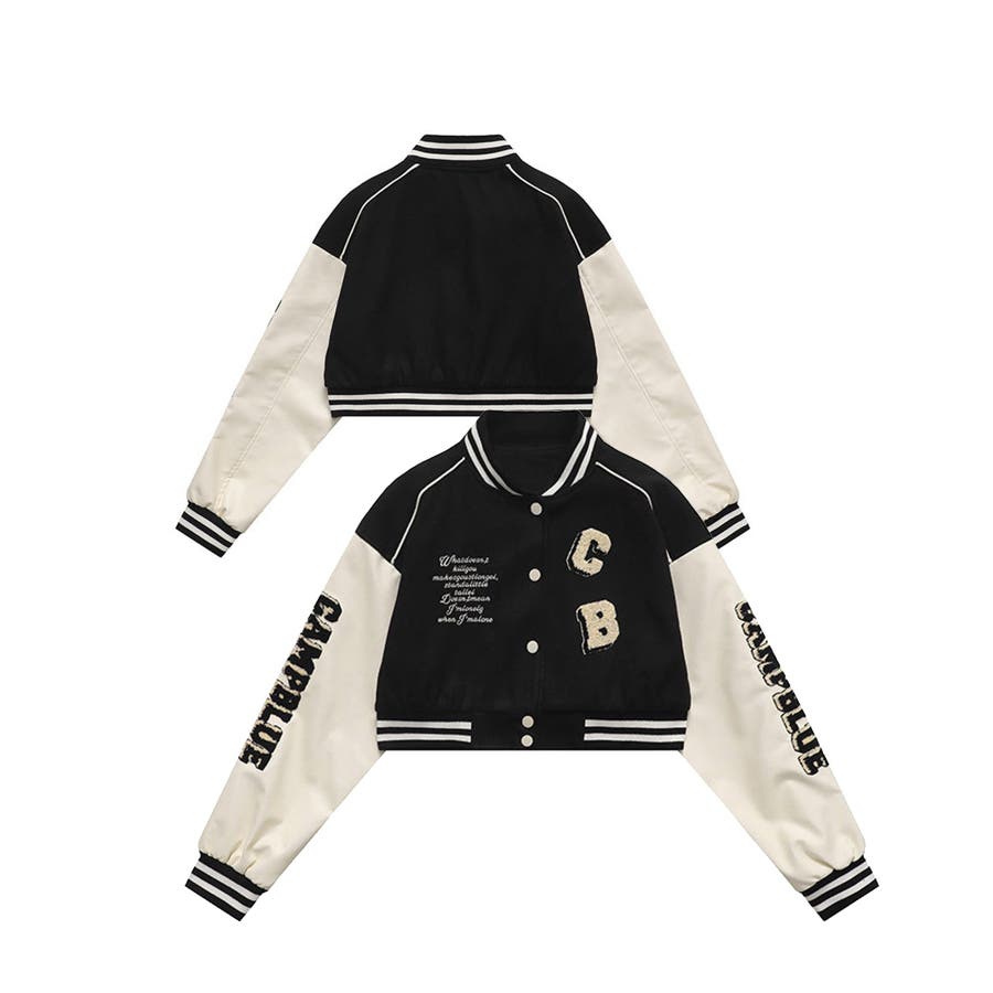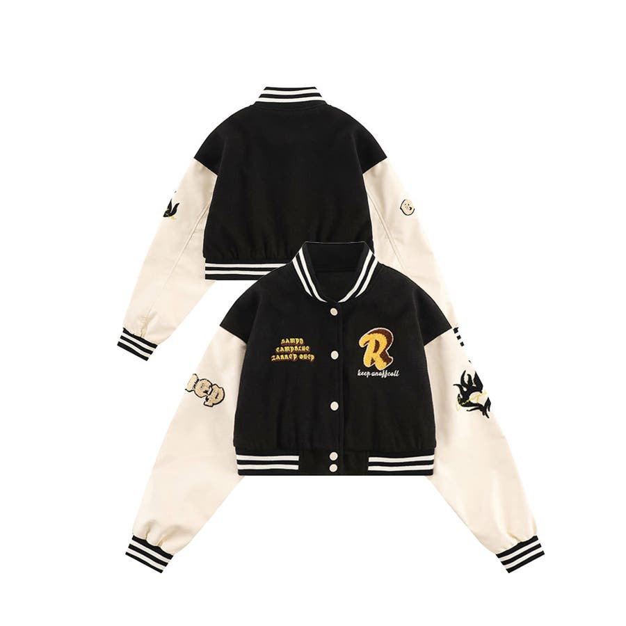 ブルゾンアメカジワッペン刺繍スタジャンジャケット クロップド丈 ストリート系