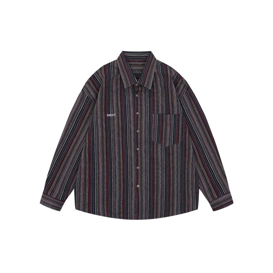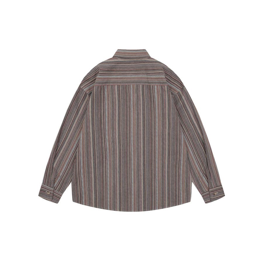 【HOOK】古着風ストライプ総柄ビッグシャツ ユニセックス 韓国ファッション