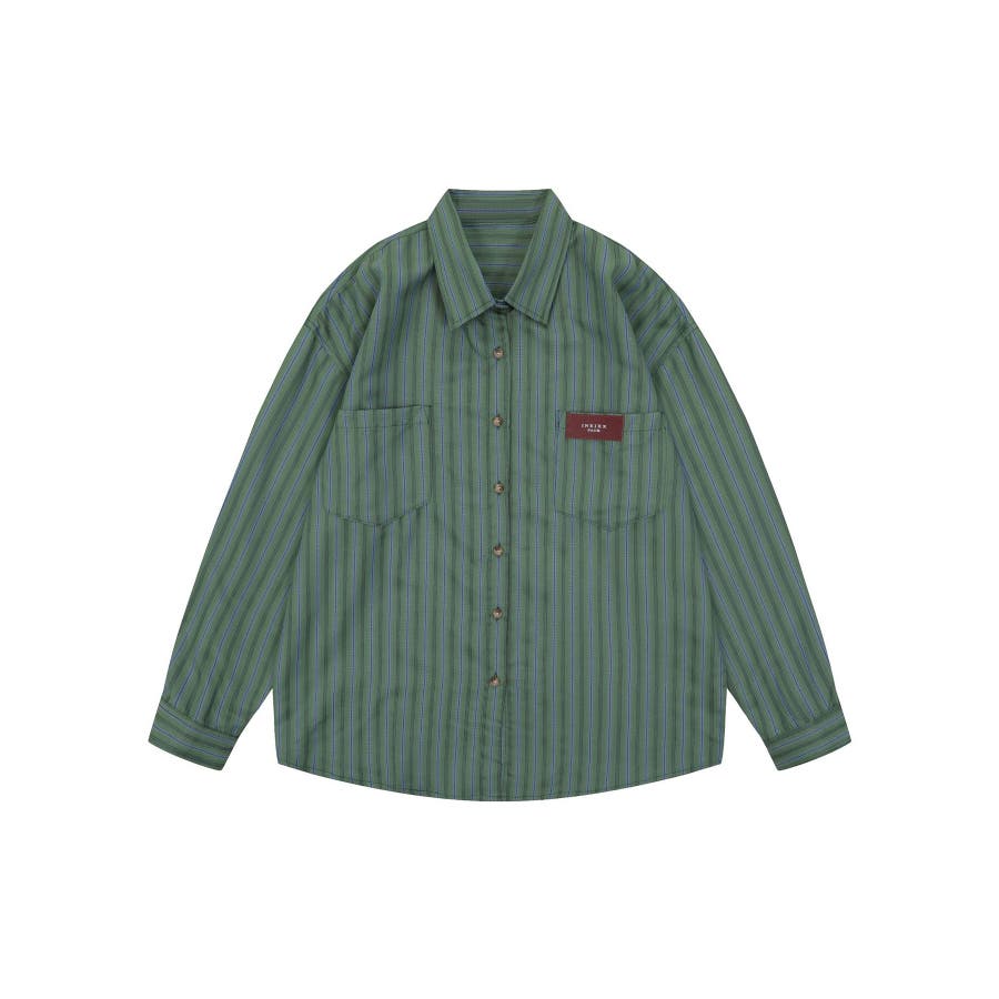 【HOOK】古着風ストライプ総柄ビッグシャツ