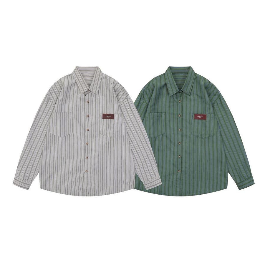 高密度で織られた柔らかく肌触りが良い生地のストライプ総柄ビッグシャツシリーズですストライプ柄が爽やかな雰囲気を醸し出してくれますチノパンやショートパンツと合わせて春夏のカジュアルスタイルはもちろん、ワイドパンツやカーゴパンツと合わせると今季っぽい雰囲気ストリート、アメカジ、カジュアル、韓国ファッション、古着MIXとどんなファッションにもオッケー