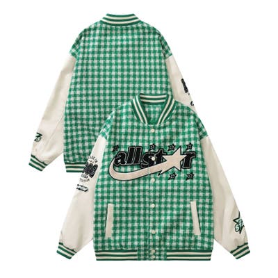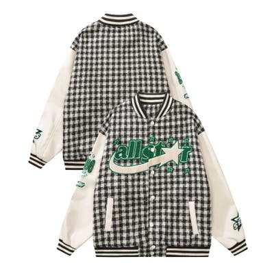 ブルゾンユニセックスアメカジワッペン刺繍チェック柄スタジャンジャケット
