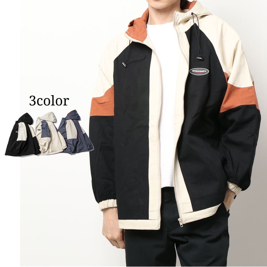 新作【HOOK】アメカジ配色切り替えフードパーカージャケット 韓国ファッション …
