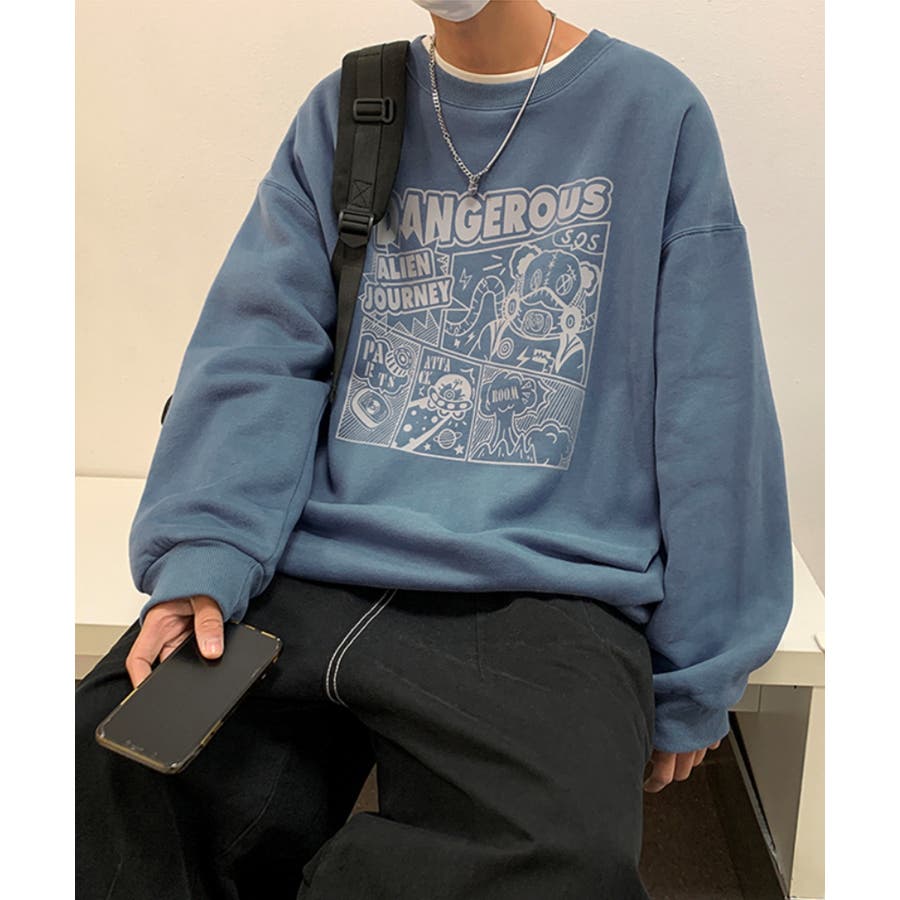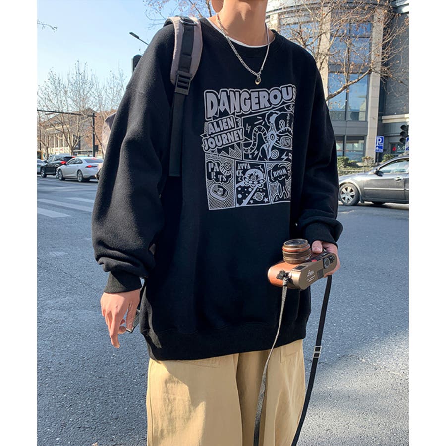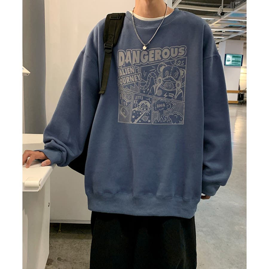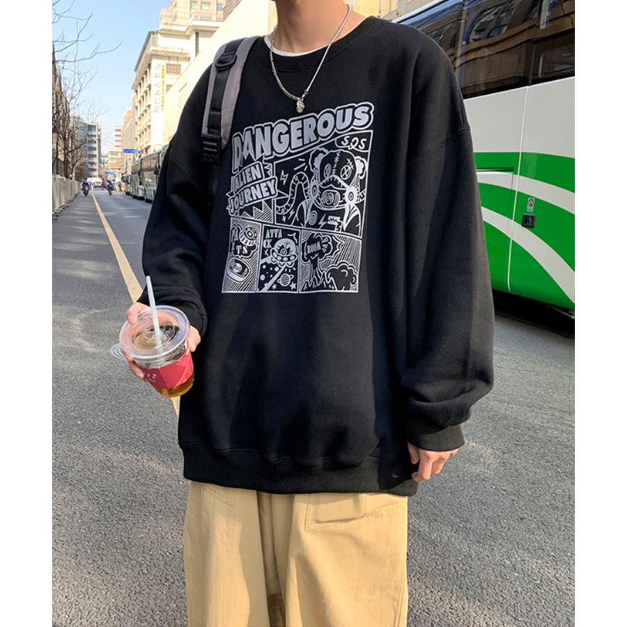 HOOK アニメアメカジアンティーク風イラストスウェット 韓国ファッション