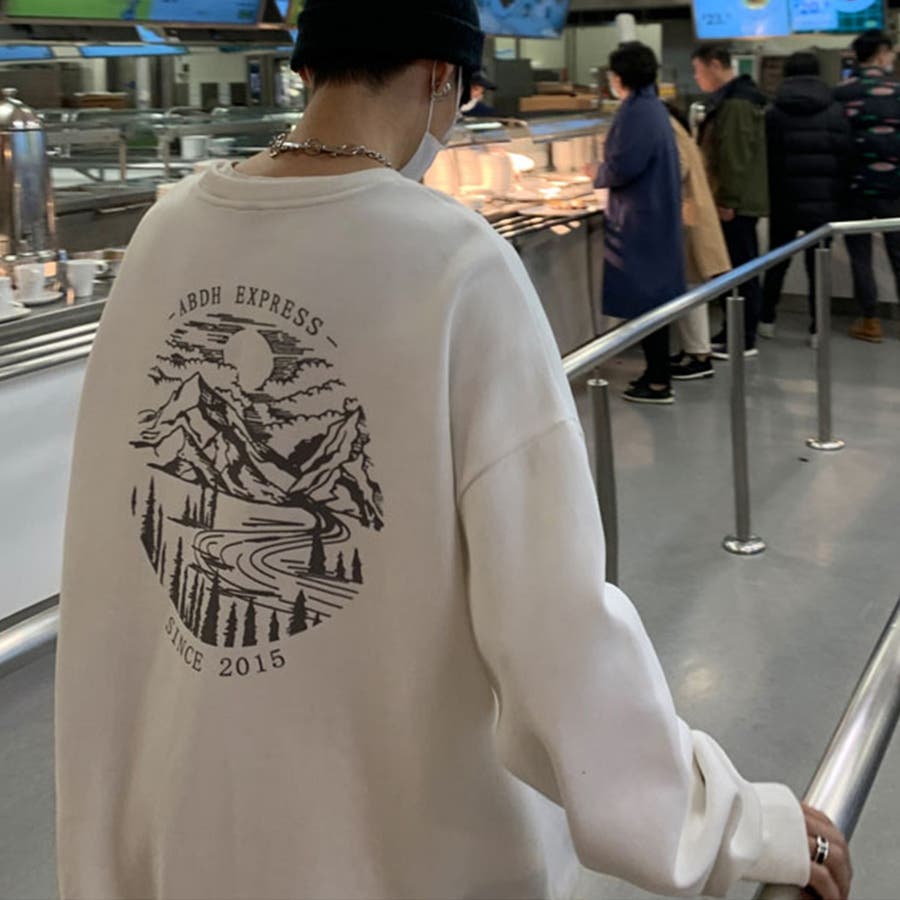 HOOK アメカジアンティーク風イラストスウェット 韓国ファッション