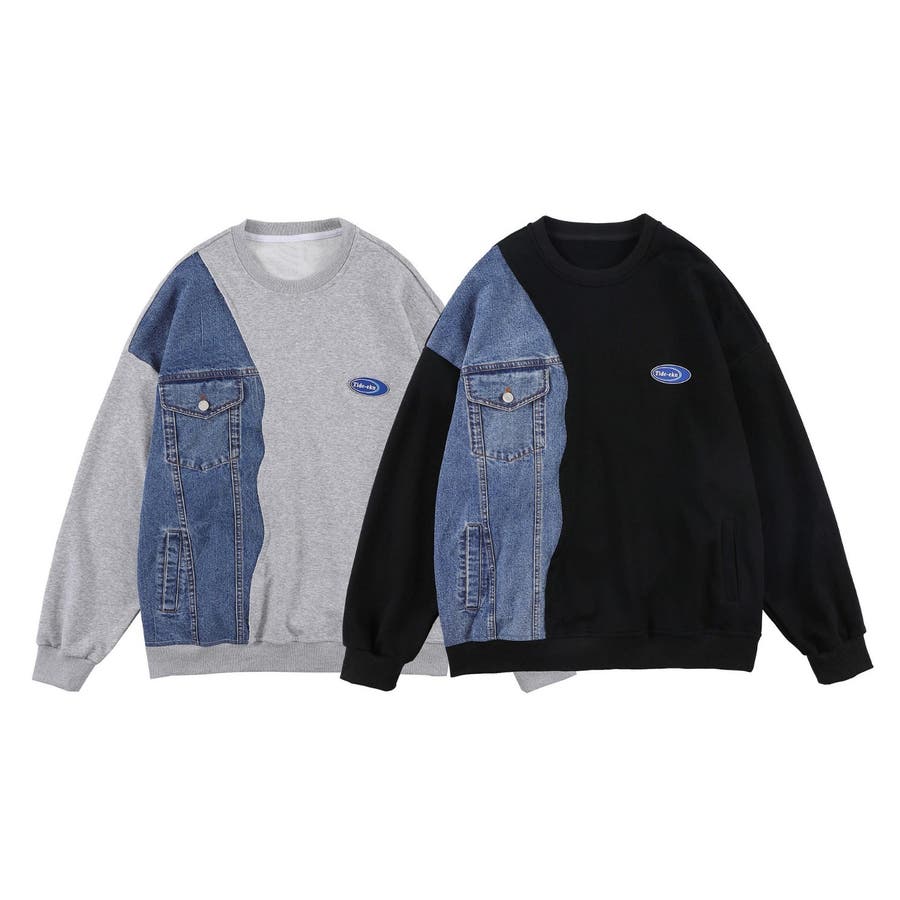 個性派 デニム切り替えスウェット メンズ