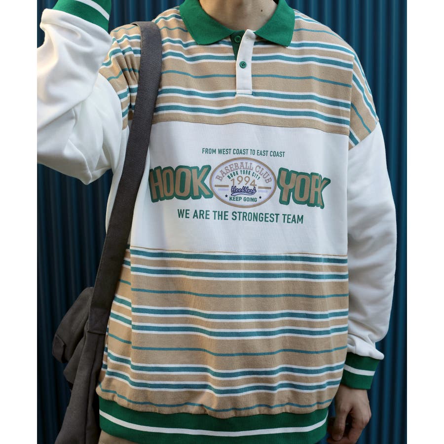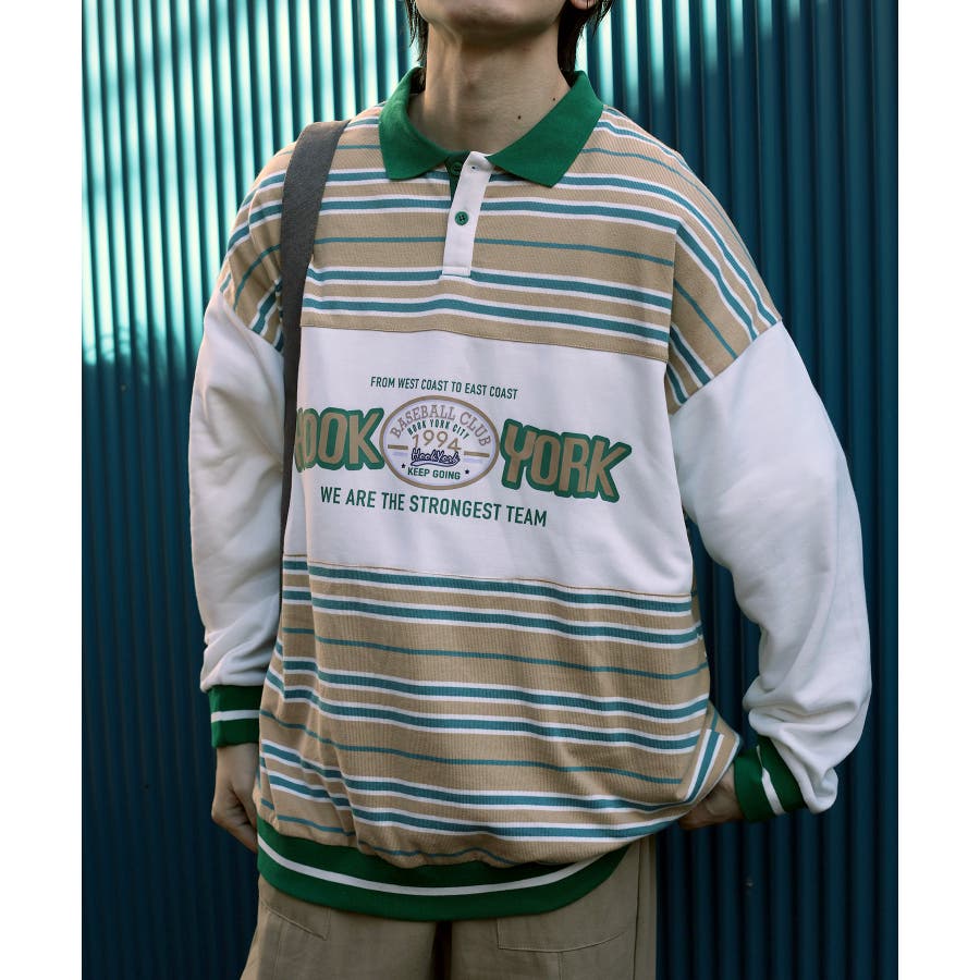 存在感のあるボーダー生地切り替えデザインにロゴプリントが映える一着です。