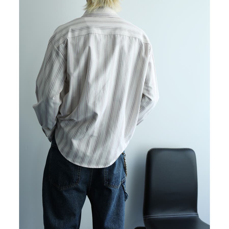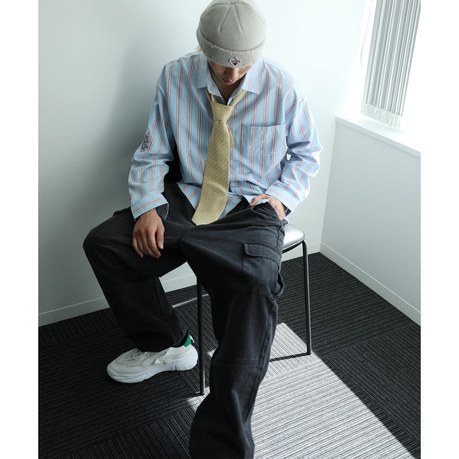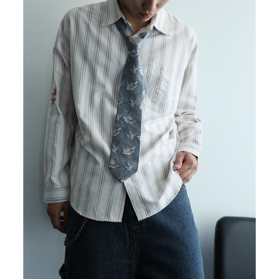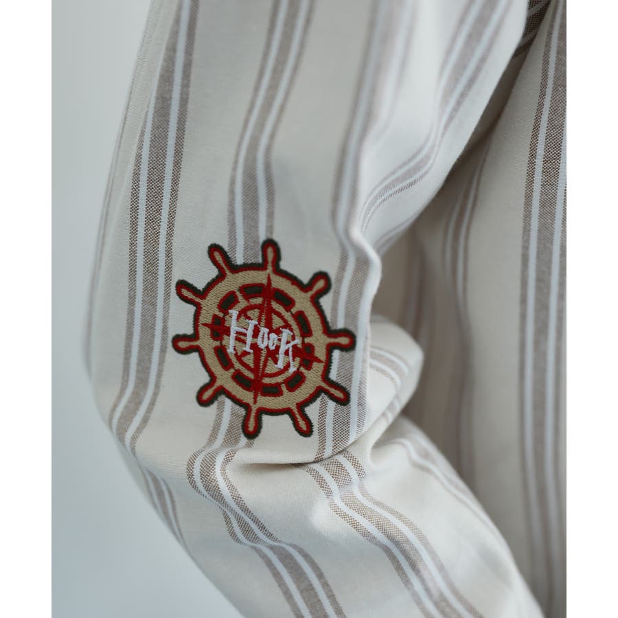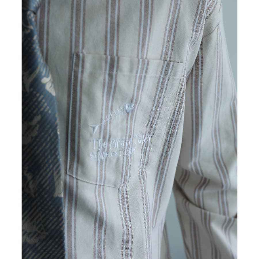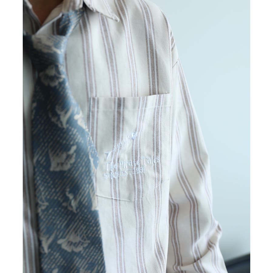 HOOK original 配色ストライプワンポイント刺繍長袖シャツ