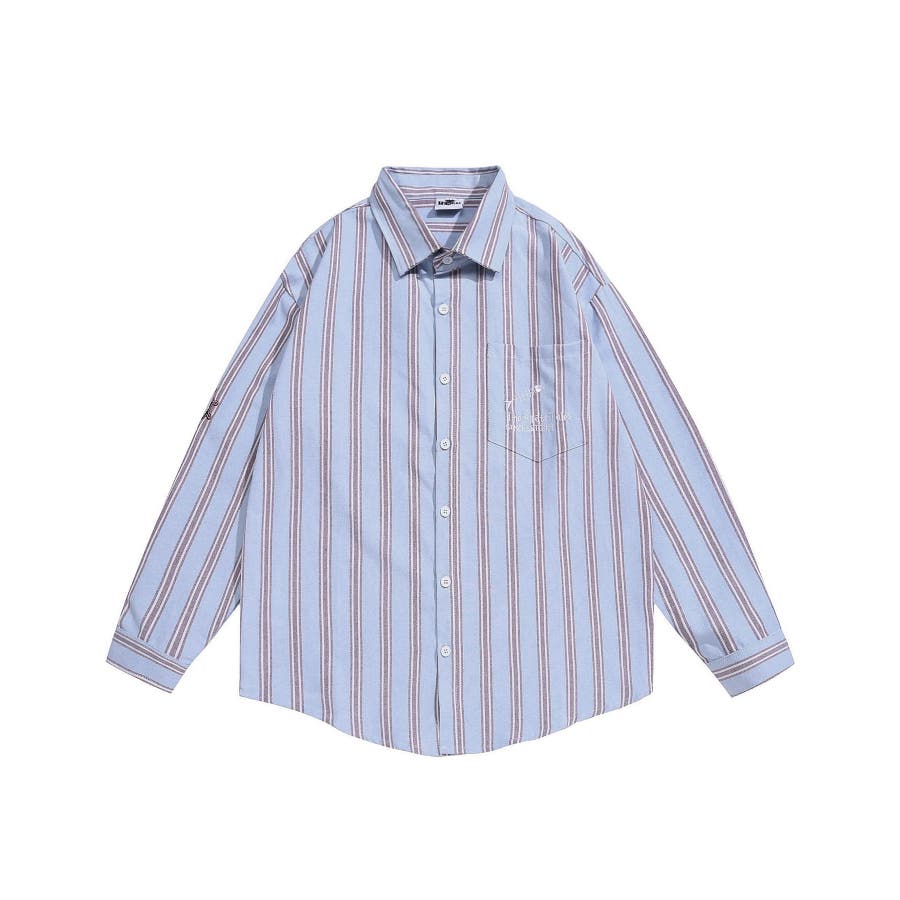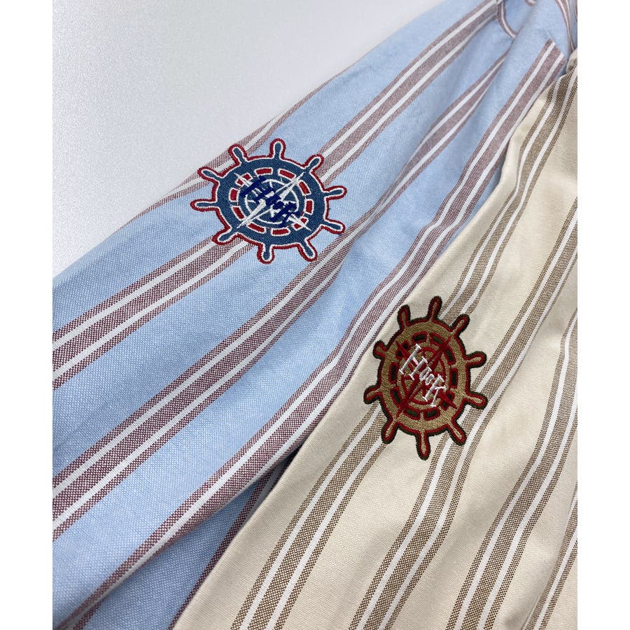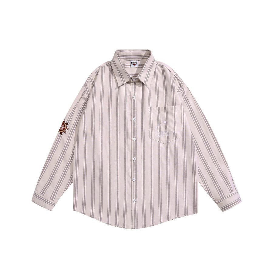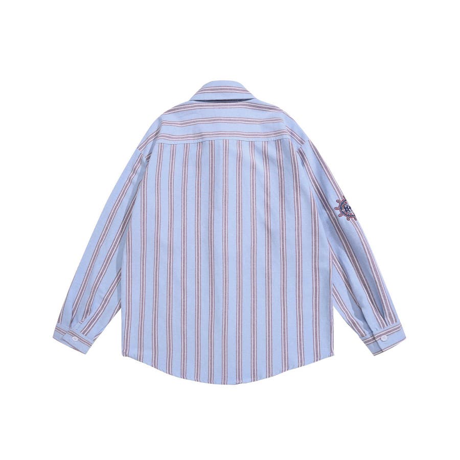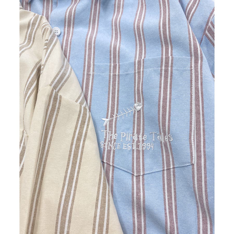 シンプルでワンポイント刺繍が可愛いシャツストライプが入ったパッとシンプルなシャツ肘部分に船のハンドルである舵輪の刺繍、胸ポケットに魚の骨の刺繍が入っているのがポイント太めのパンツに合わせればストリート系に、ストレートパンツに合わせれば綺麗系な韓国っぽい雰囲気が出せます。さらに、スカートにも合わせられるまさに万能な1着毎日のコーディネートが楽しくなるシャツです! 男女問わずユニセックスで着ていただけるアイテム。カップルはもちろん、友達同士でのお揃いコーデにもおすすめです!