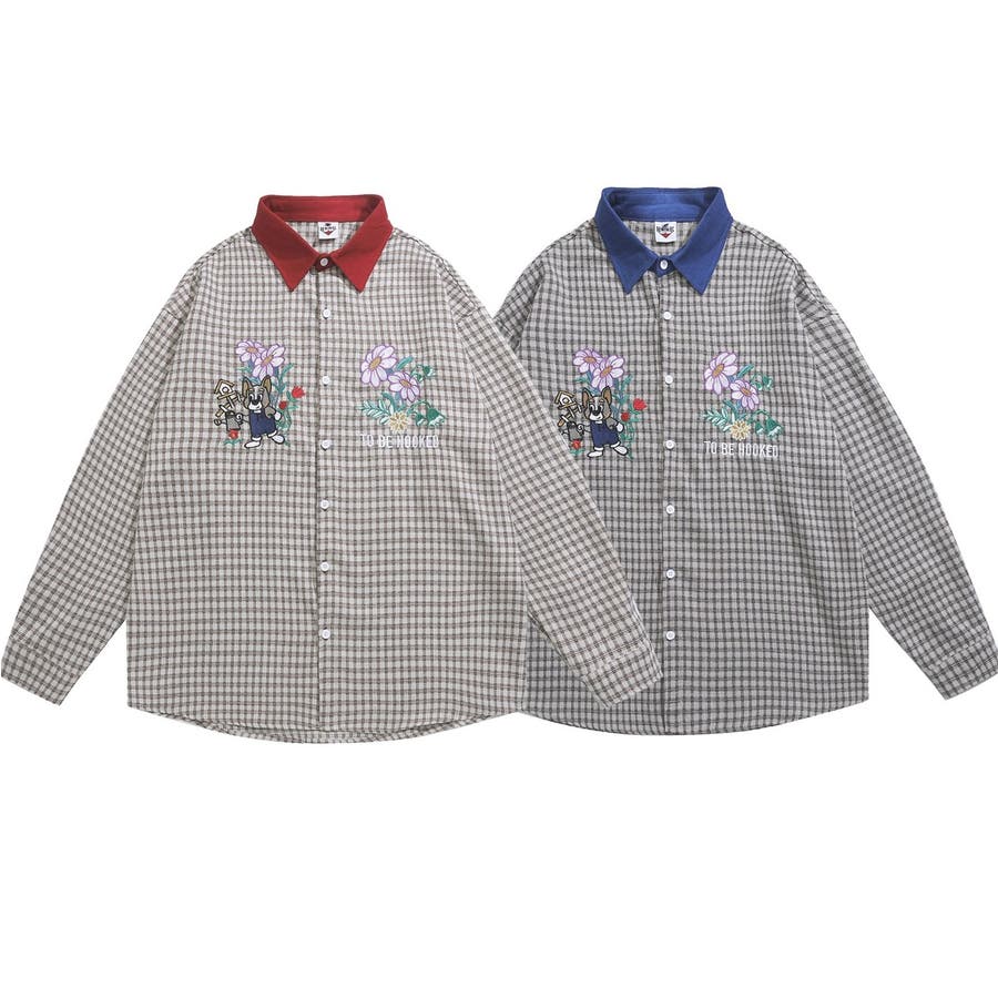 ワンちゃんの刺繍が可愛いシャツいろんなパンツに合わせやすく、キレイめ系にもストリート系にもできる便利な1着です。ワンちゃんがガーデンでお花に水やりをしているデザインの刺繍が入っていて、レトロで可愛い雰囲気のシャツです。さらに襟が深い色合いのコーデュロイの生地で作られているオシャレなデザインもポイントです!赤と青の2色展開で男女問わず着用できるデザインなので、プレゼントやお揃いコーデにもおすすめです!男女問わずユニセックスで着ていただけるアイテム。カップルはもちろん、友達同士でのお揃いコーデにもおすすめです!