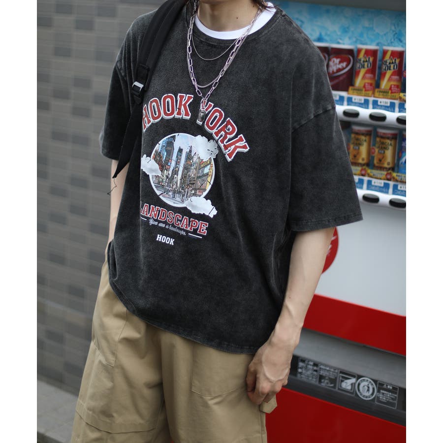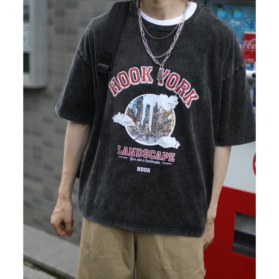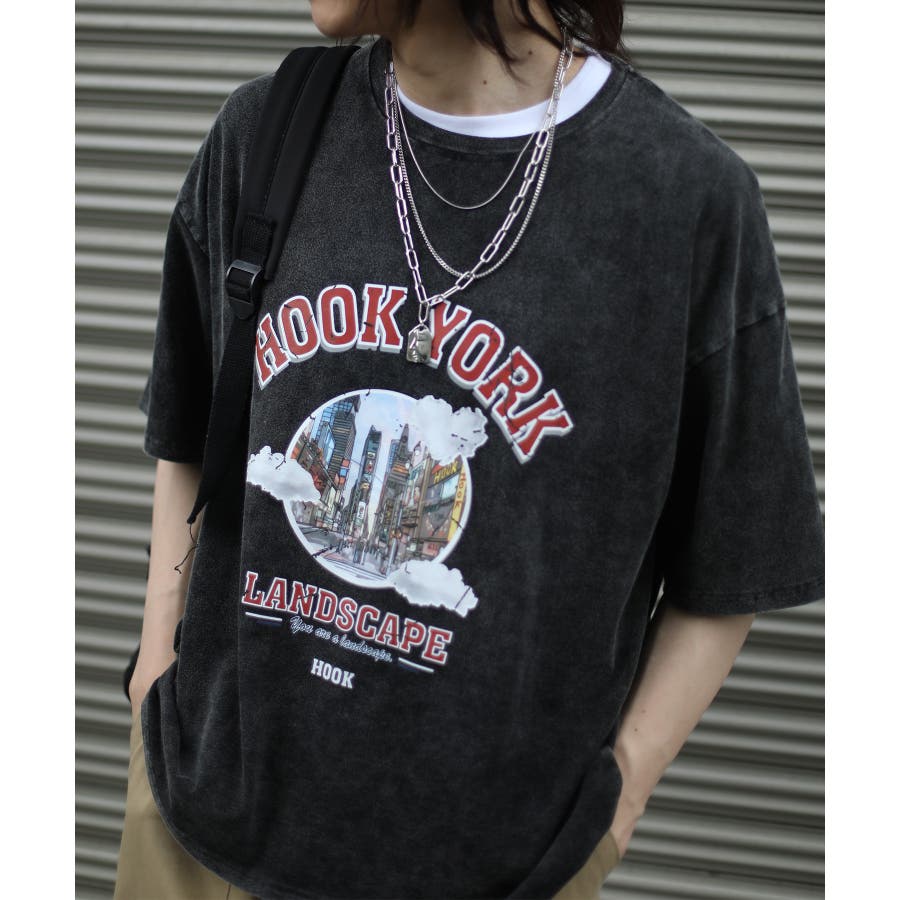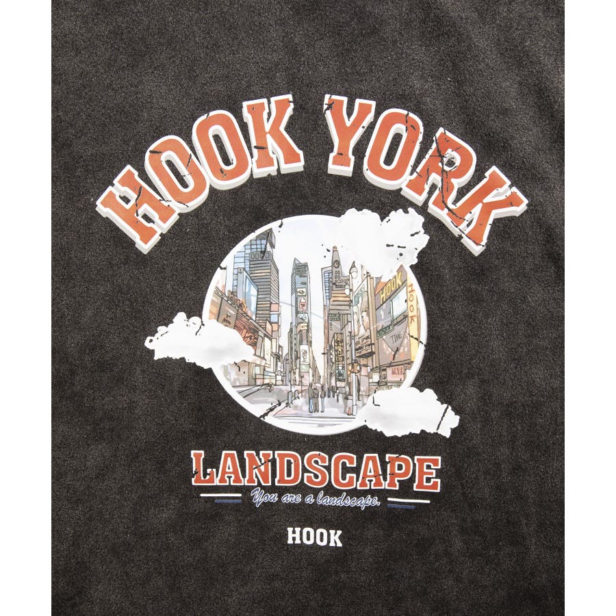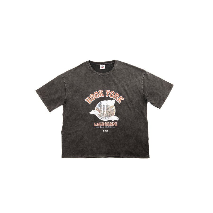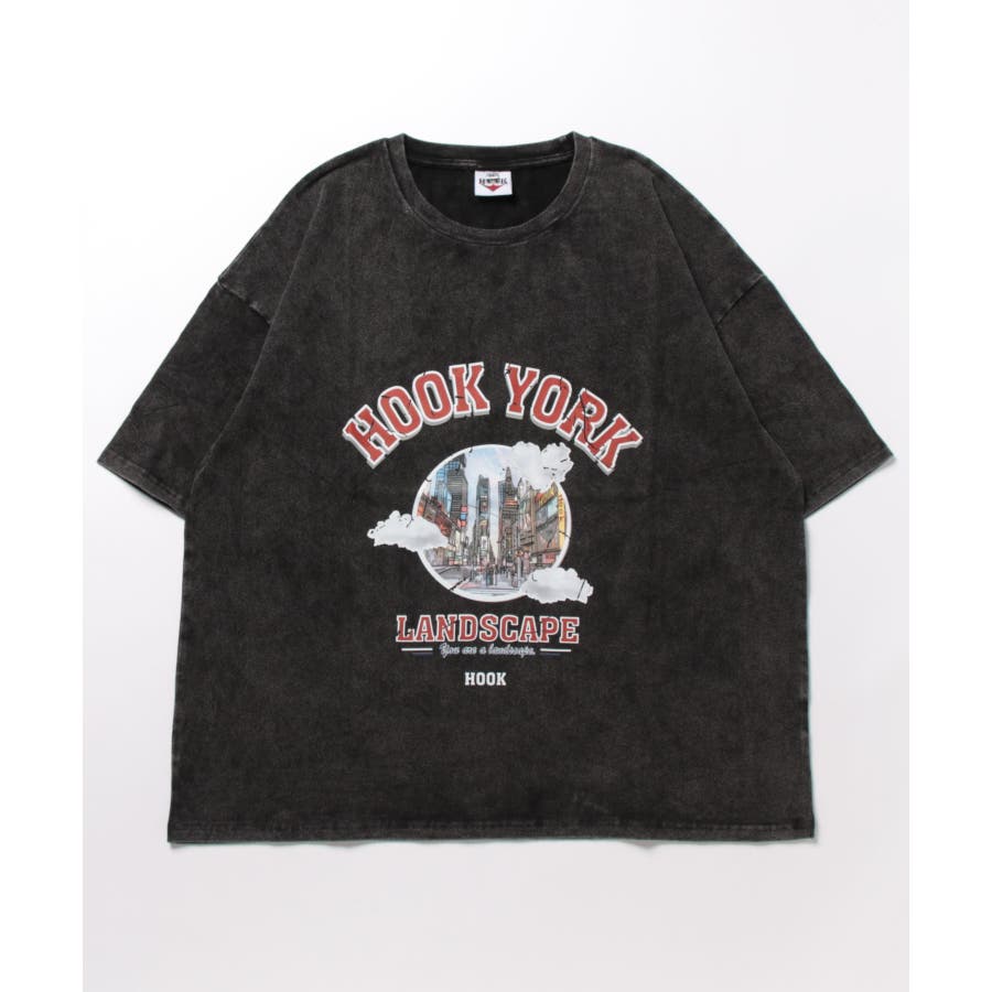 HOOK original 古着風都市グランジプリント半袖Tシャツ
