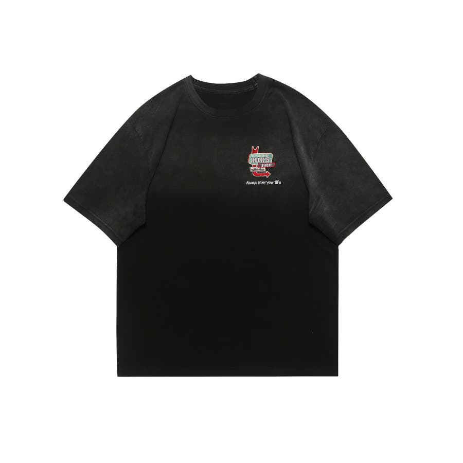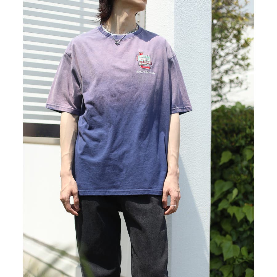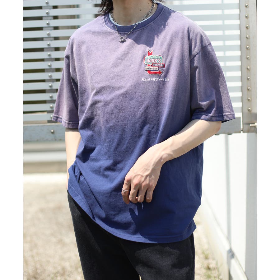 個性派グラデーション暈し染め刺繍ビッグTシャツ 韓国ファッション ストリート系