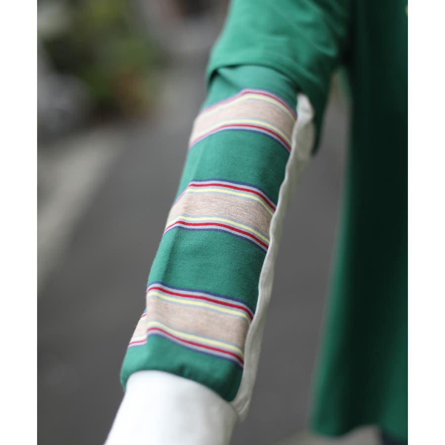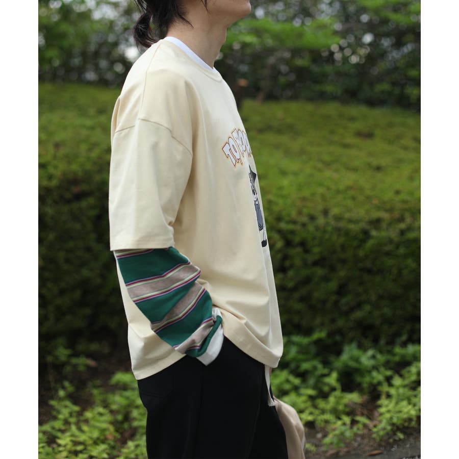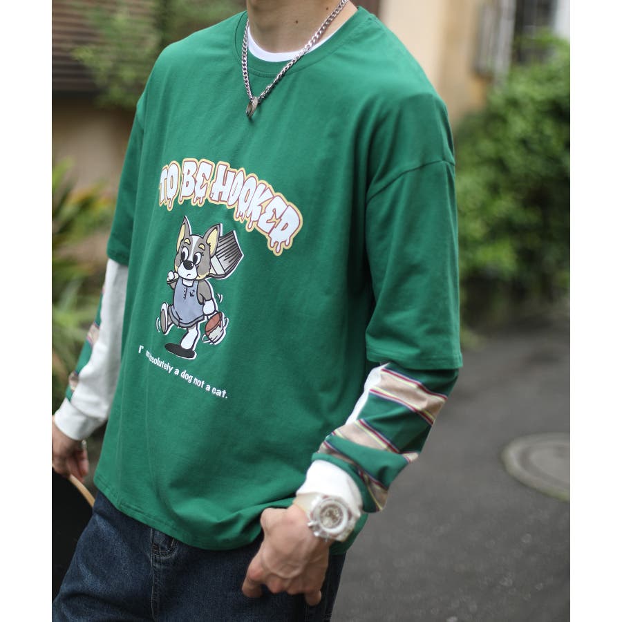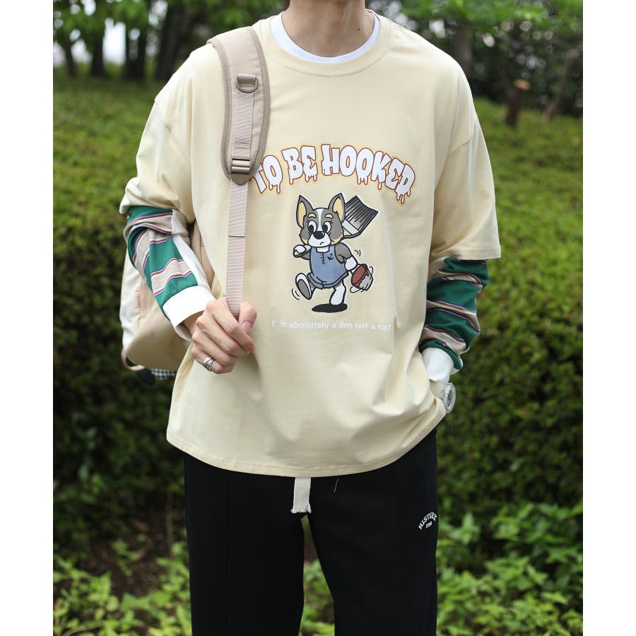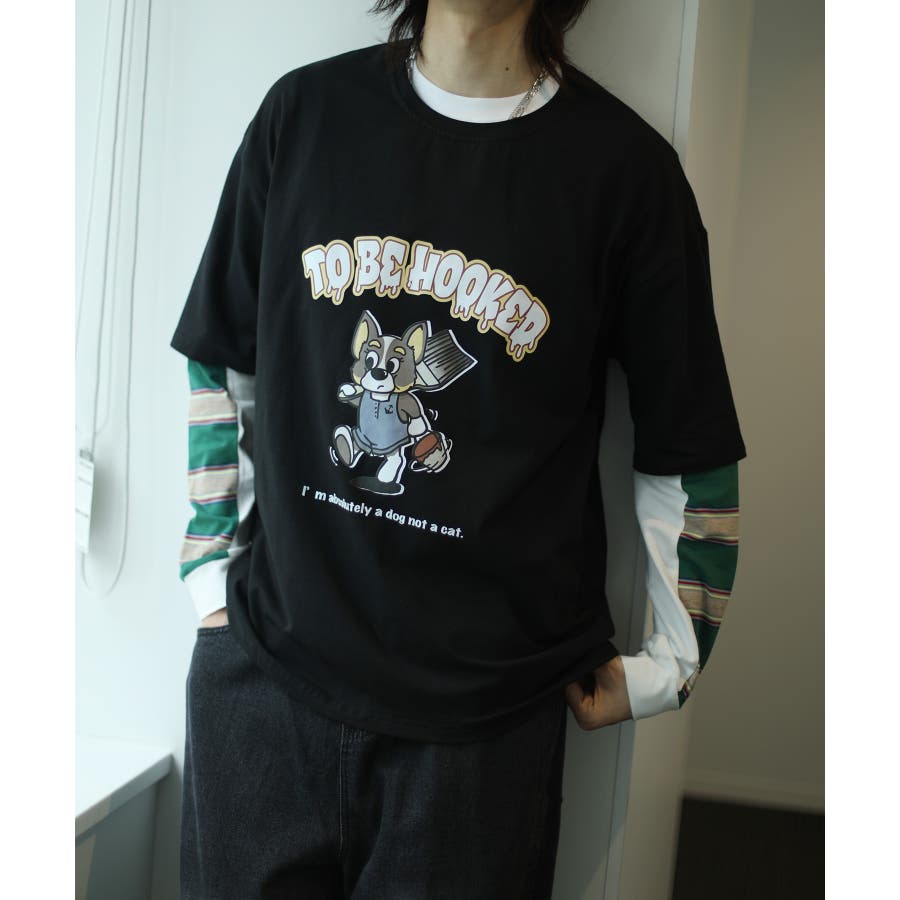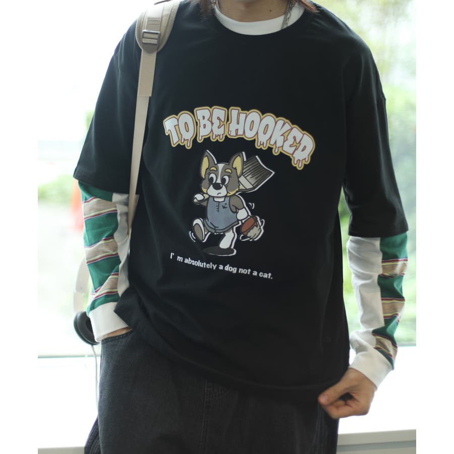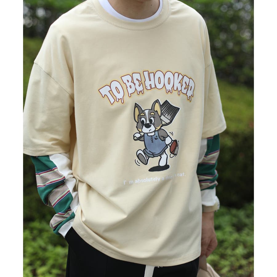 かわいいカートゥーンプリントボーダー切り替え袖TEE ロンT 韓国ファッション