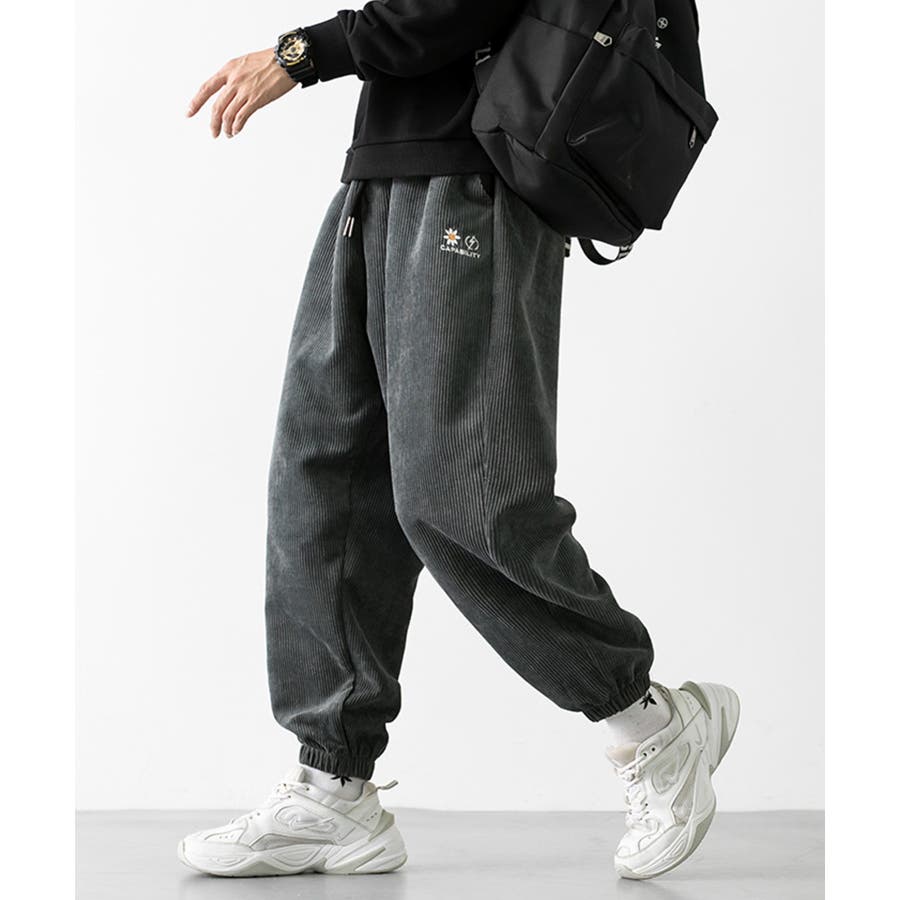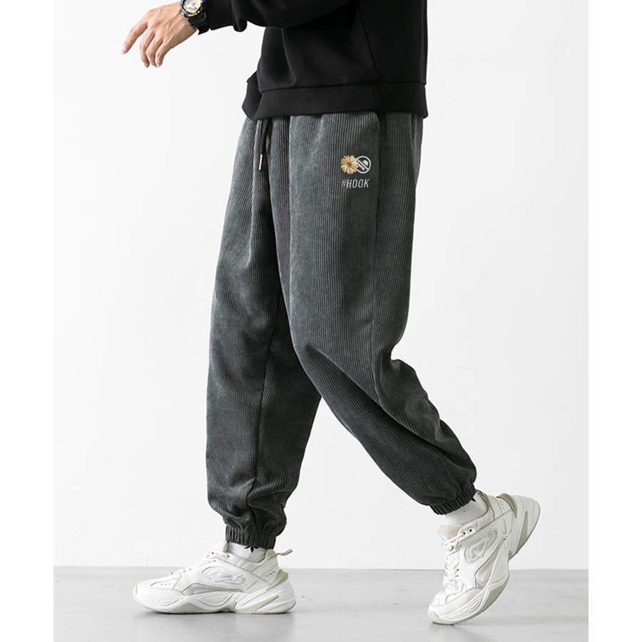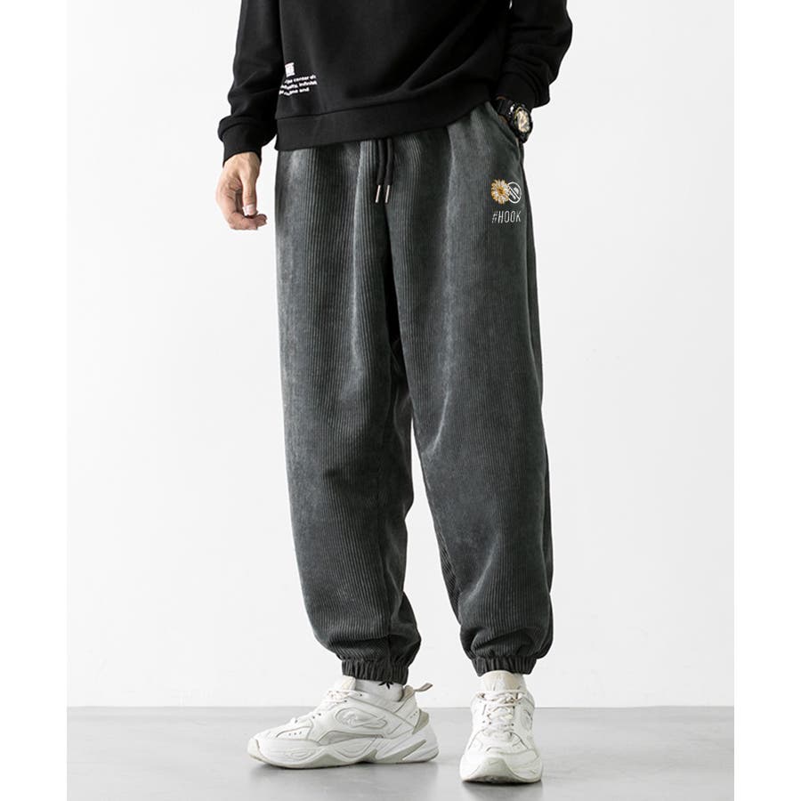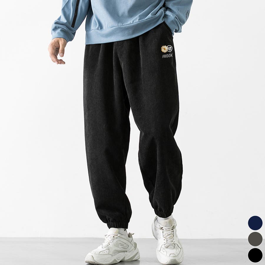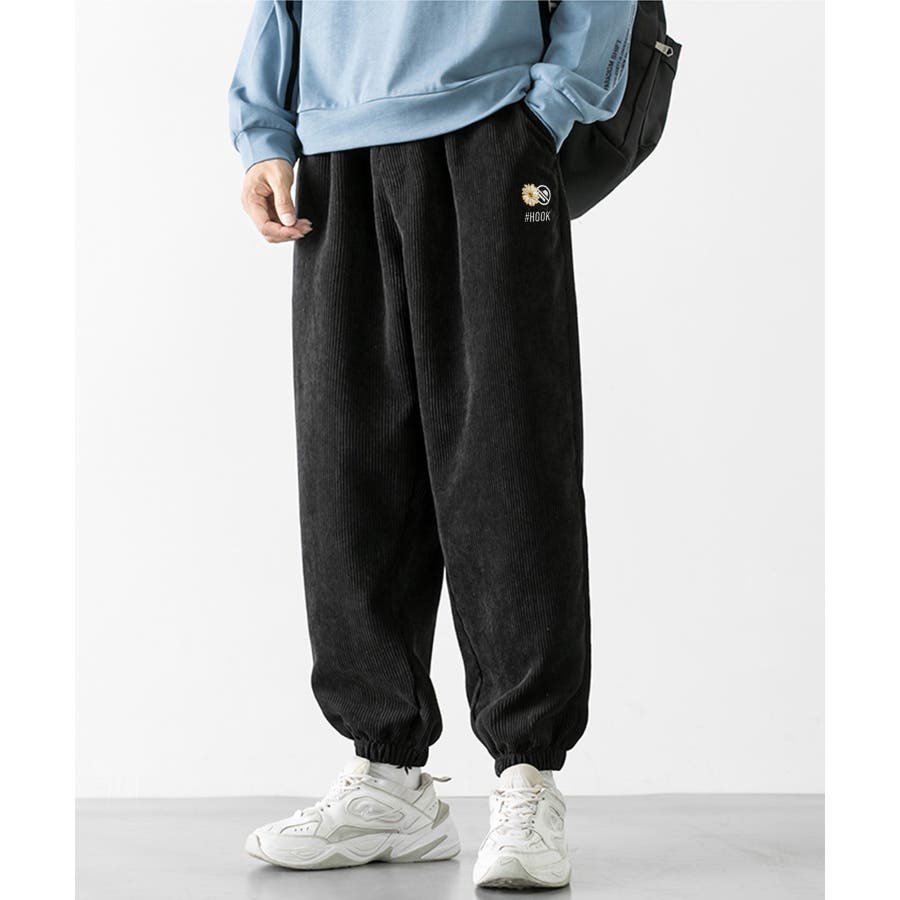 HOOK -original- マーガレット刺繍コーデユロイ裾絞りパンツ