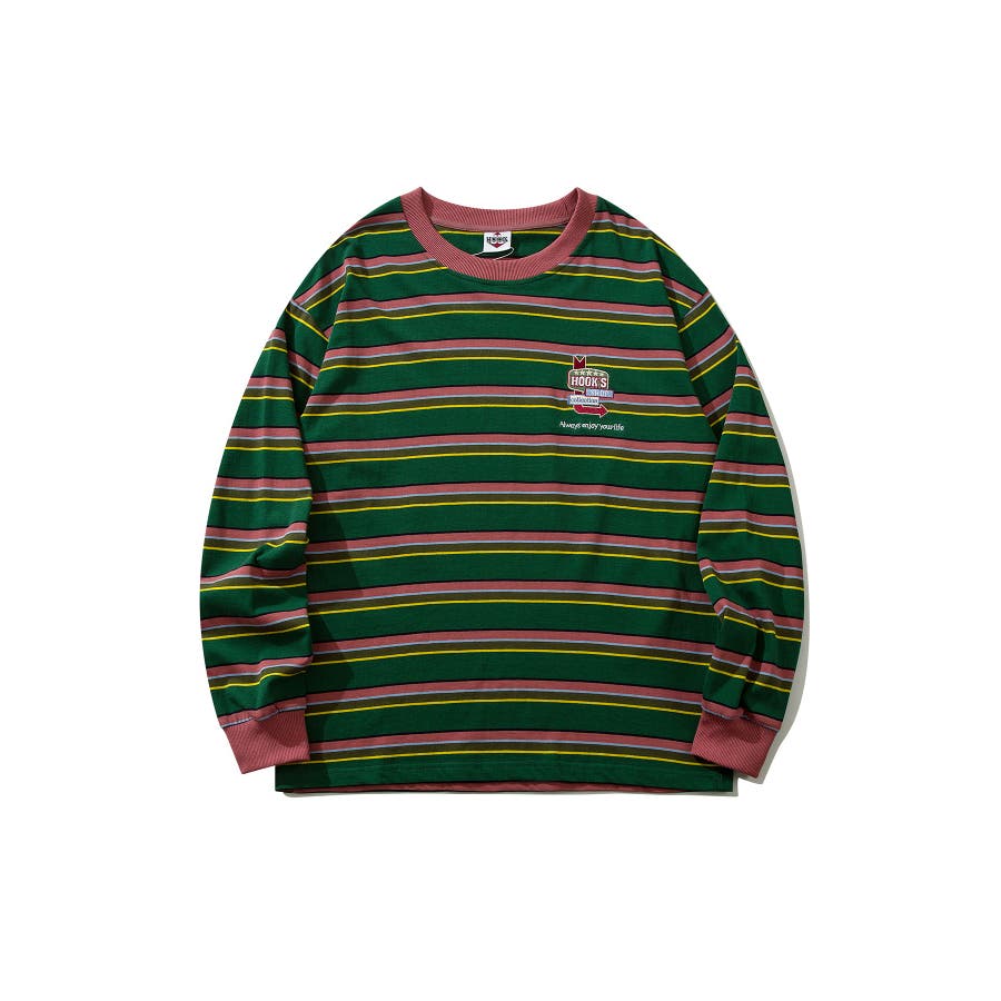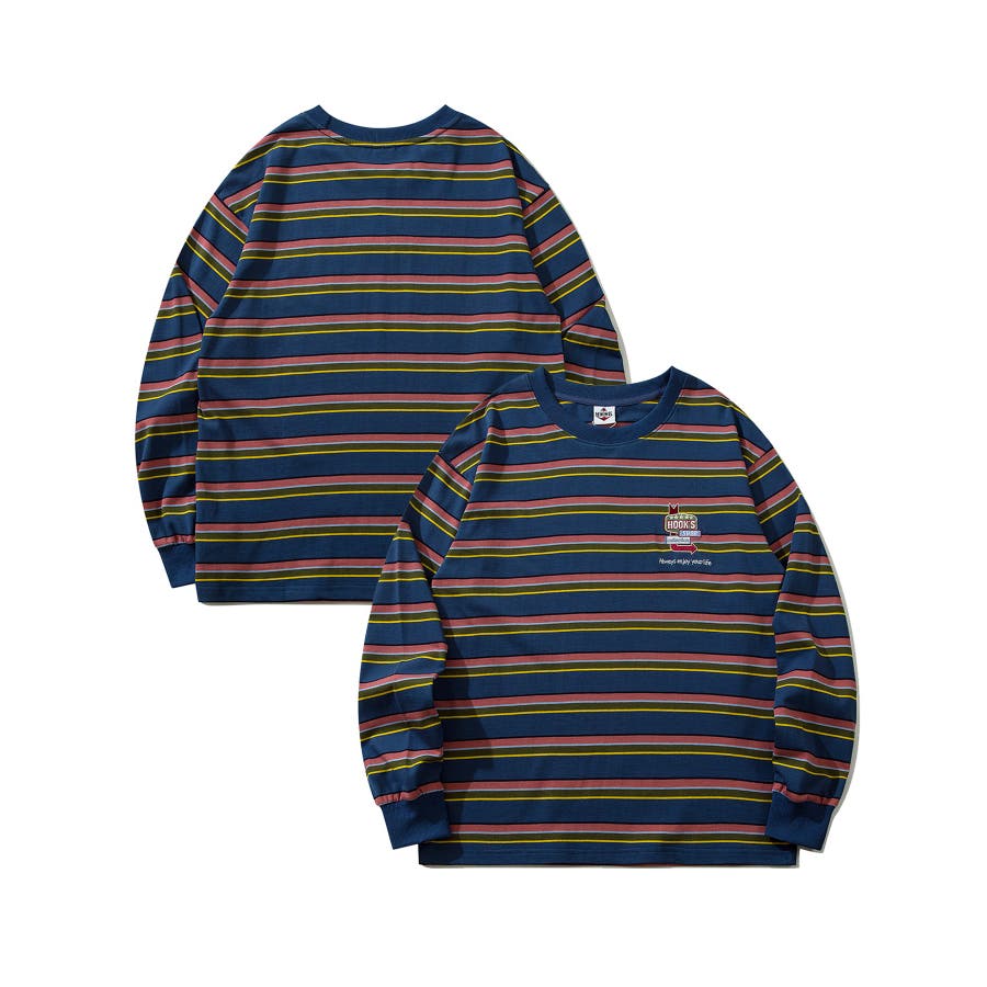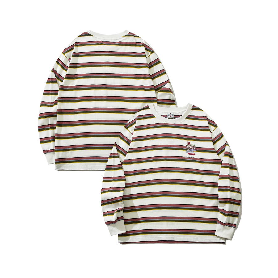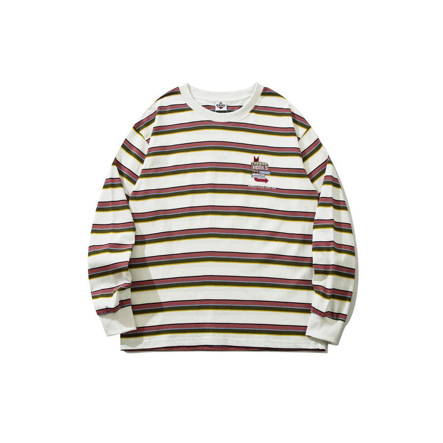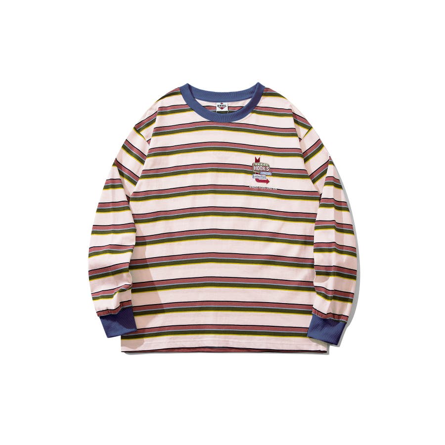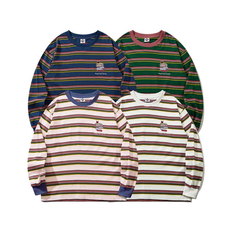 HOOK original アメカジワンポイント刺繍マルチボーダー長袖カット…