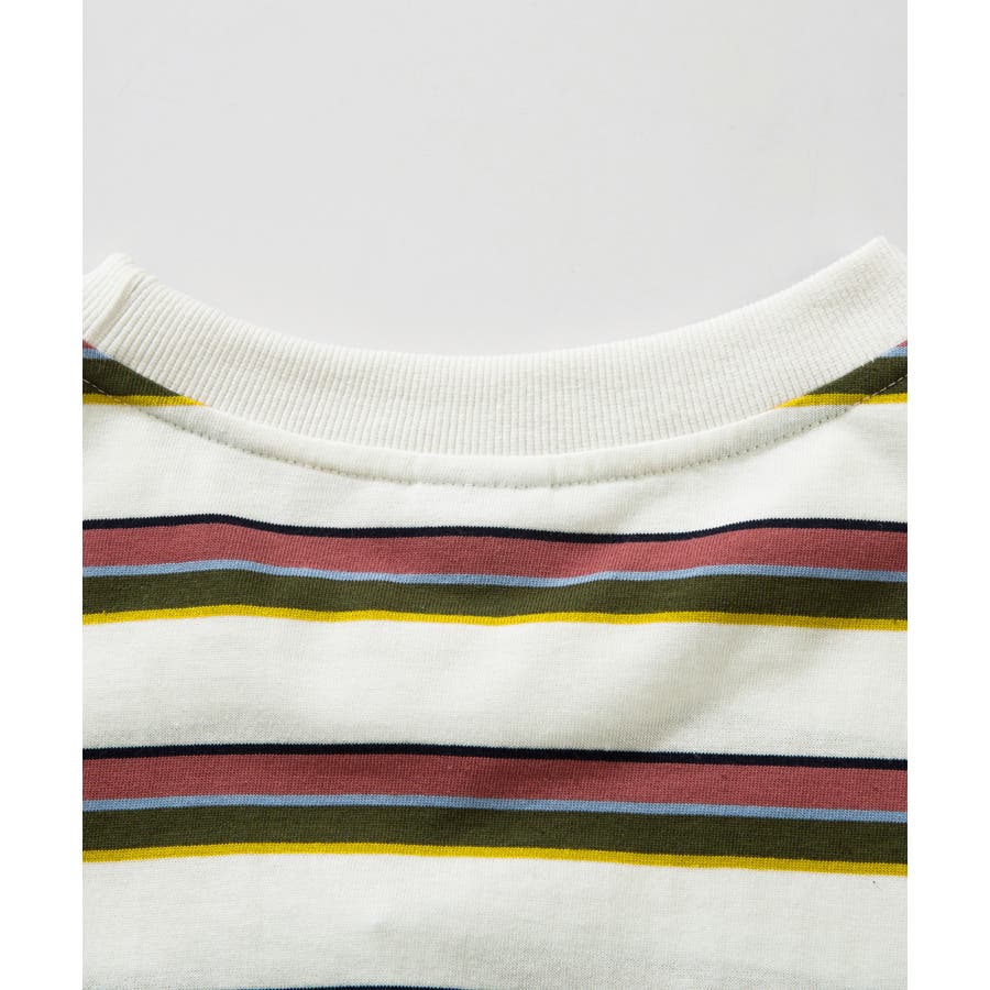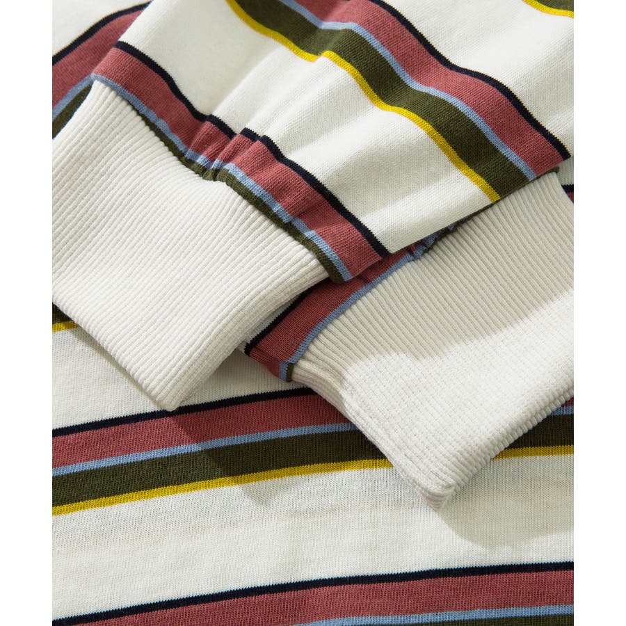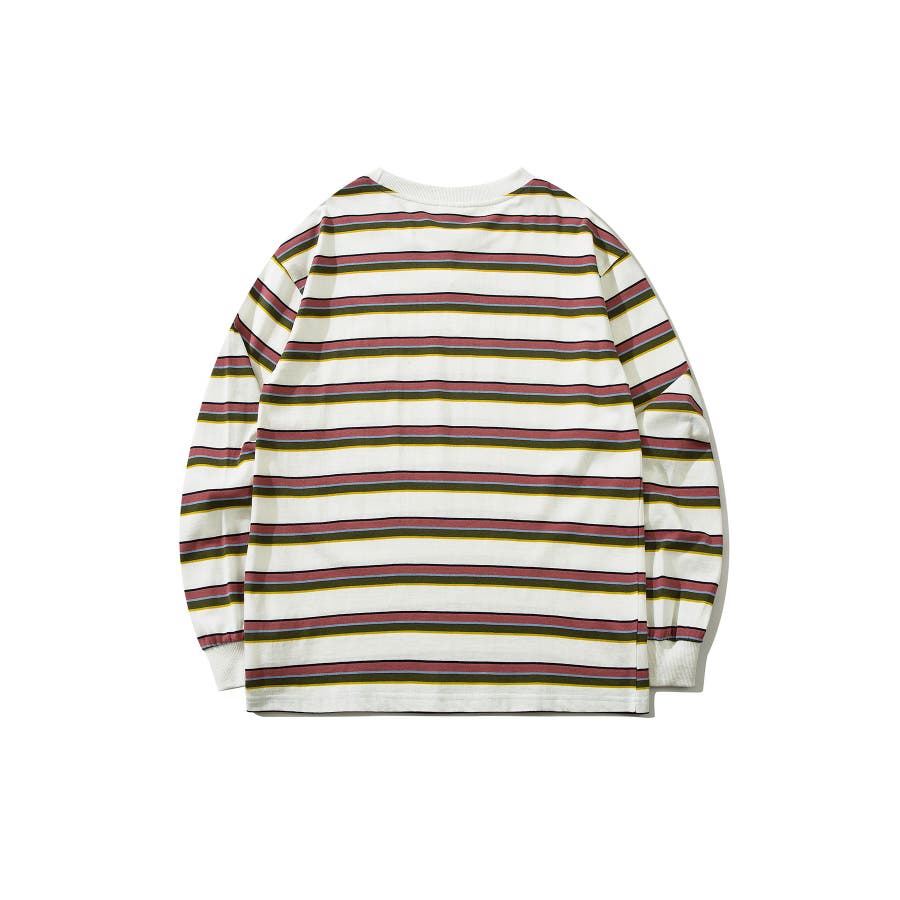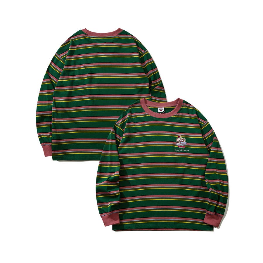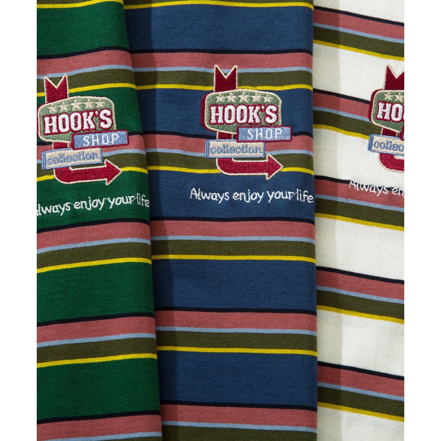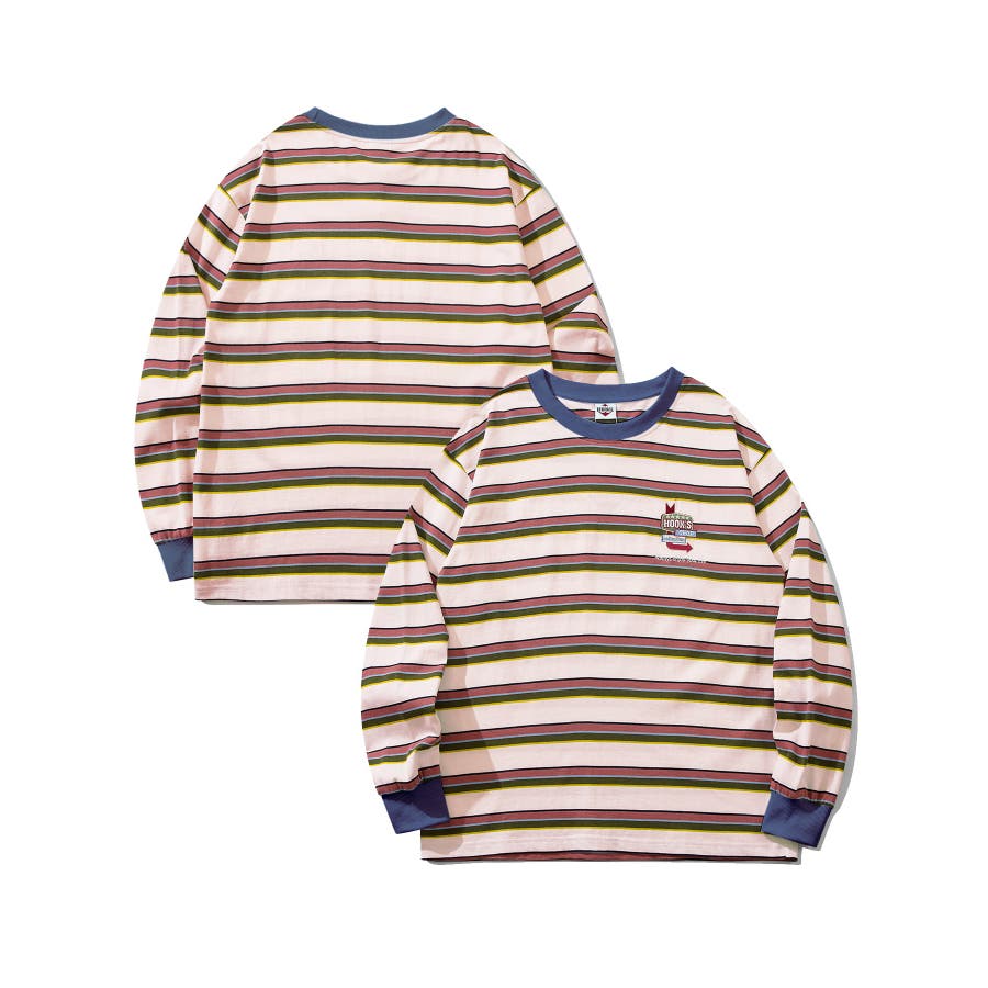 HOOK original アメカジワンポイント刺繍マルチボーダー長袖カット…