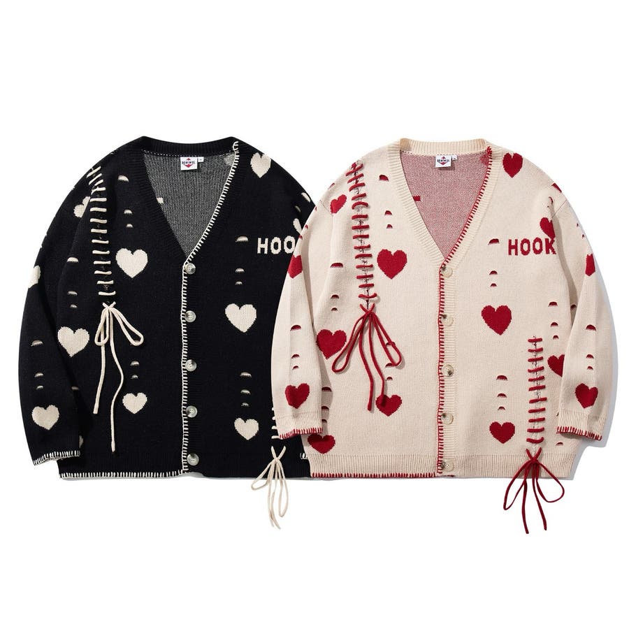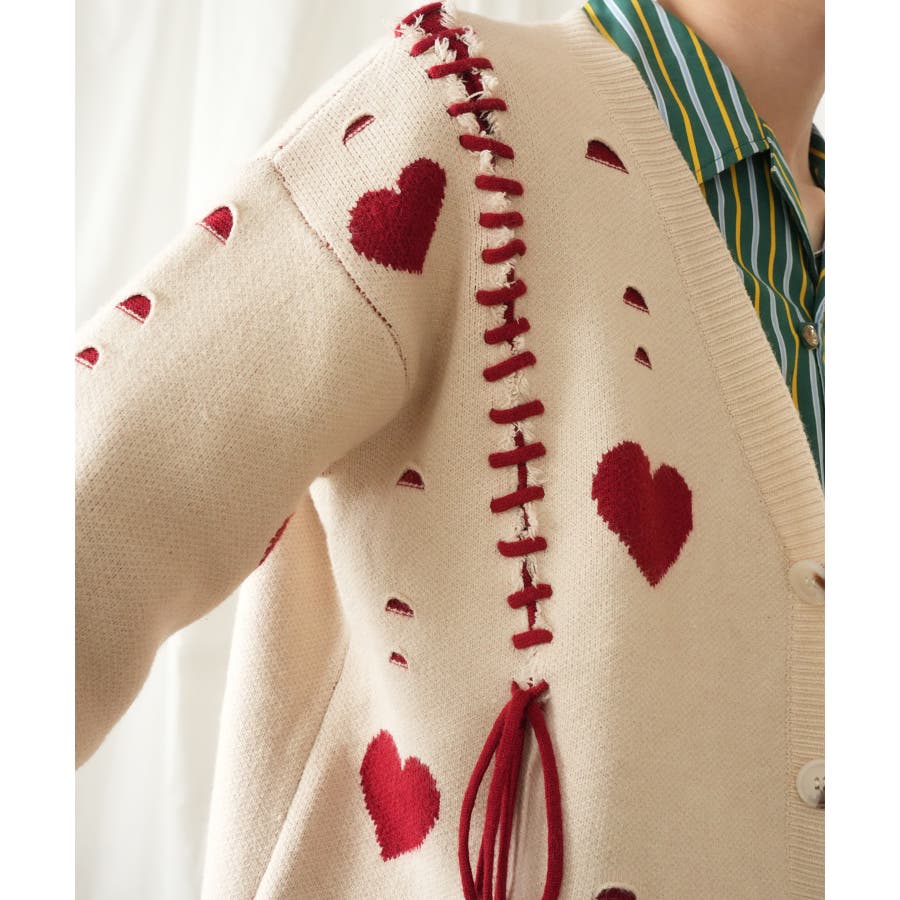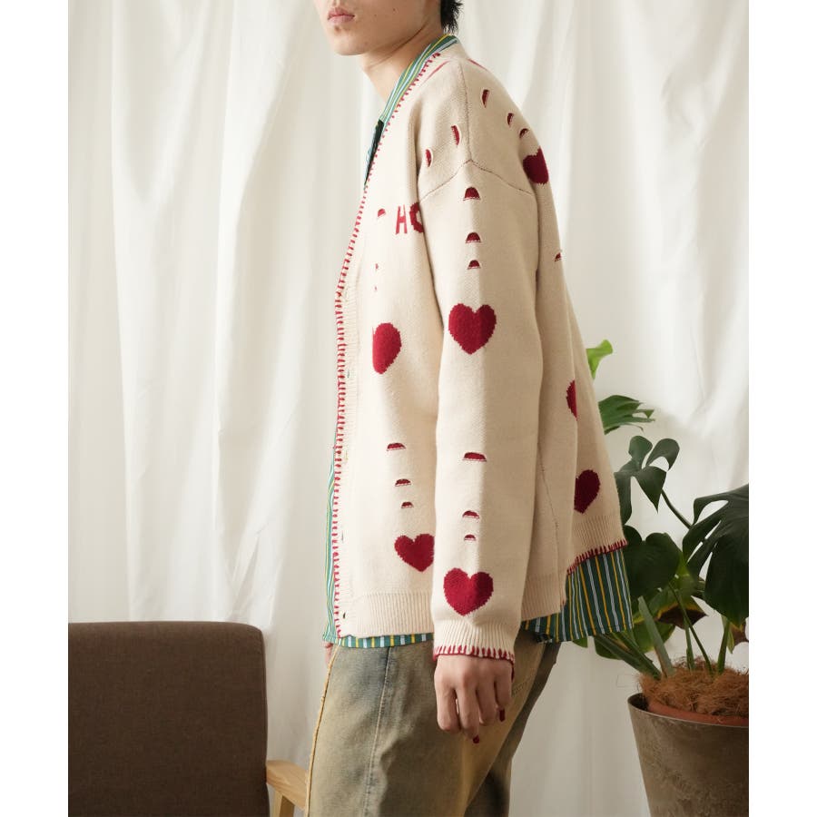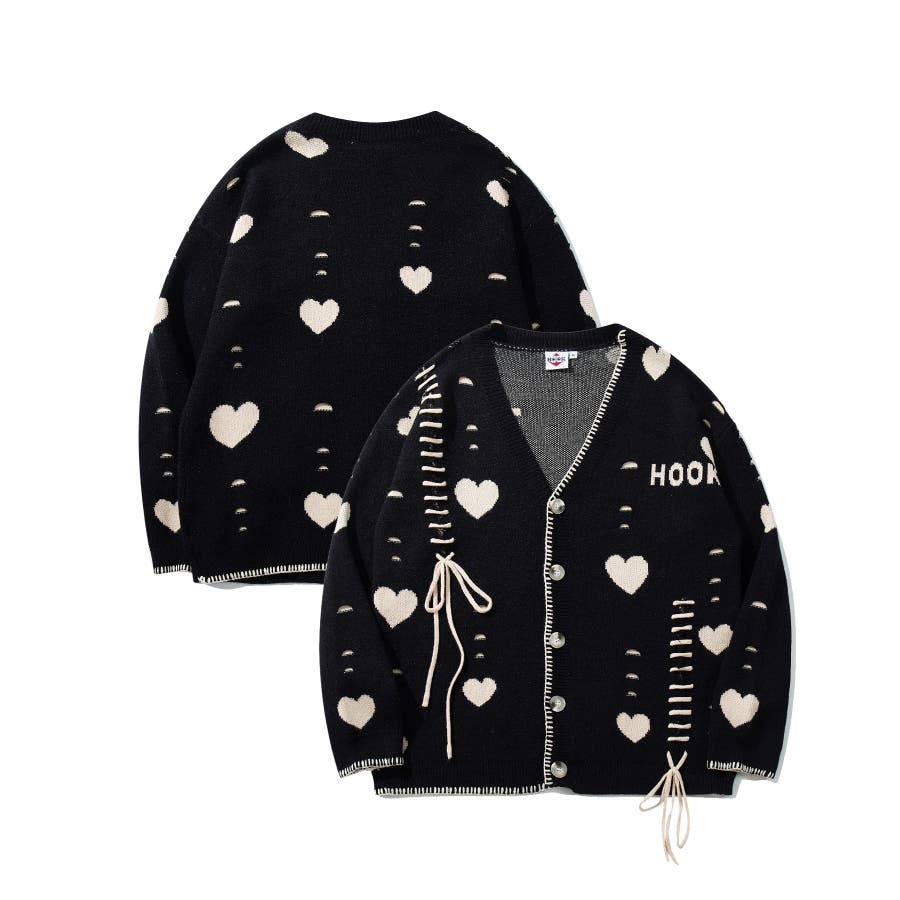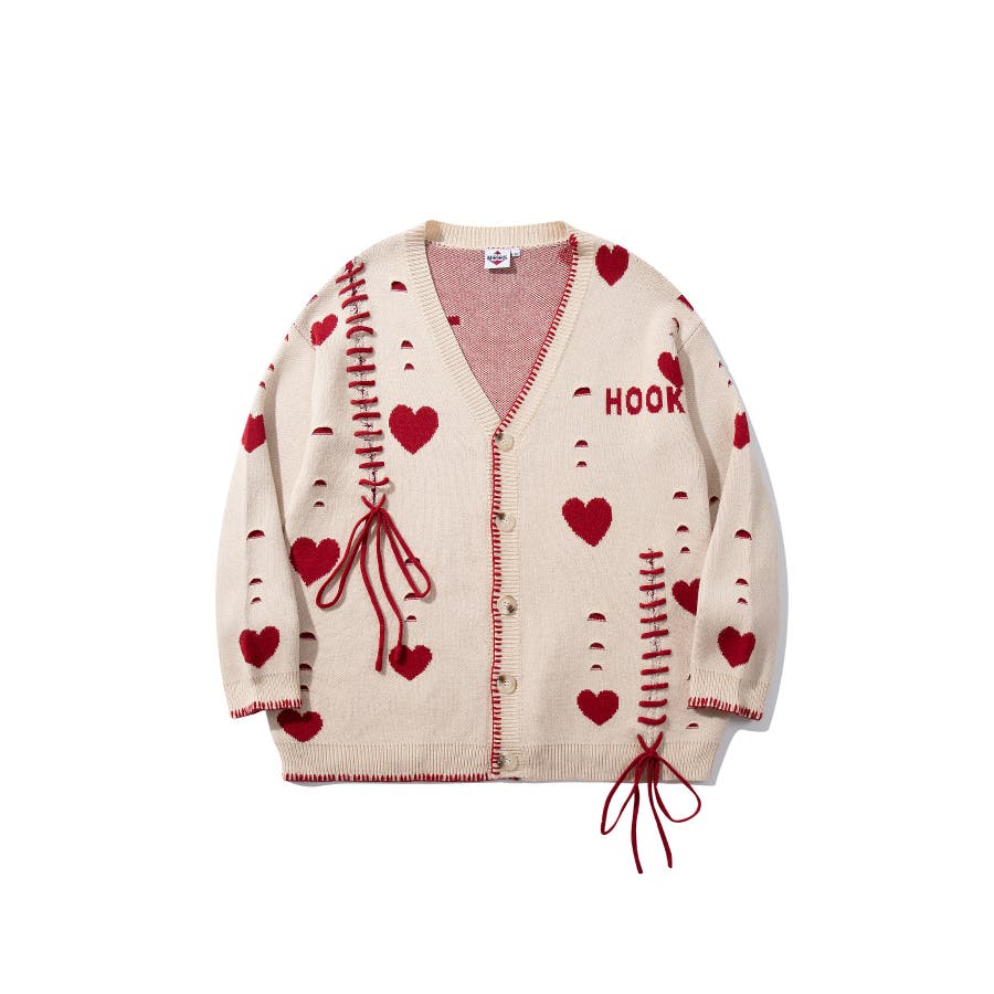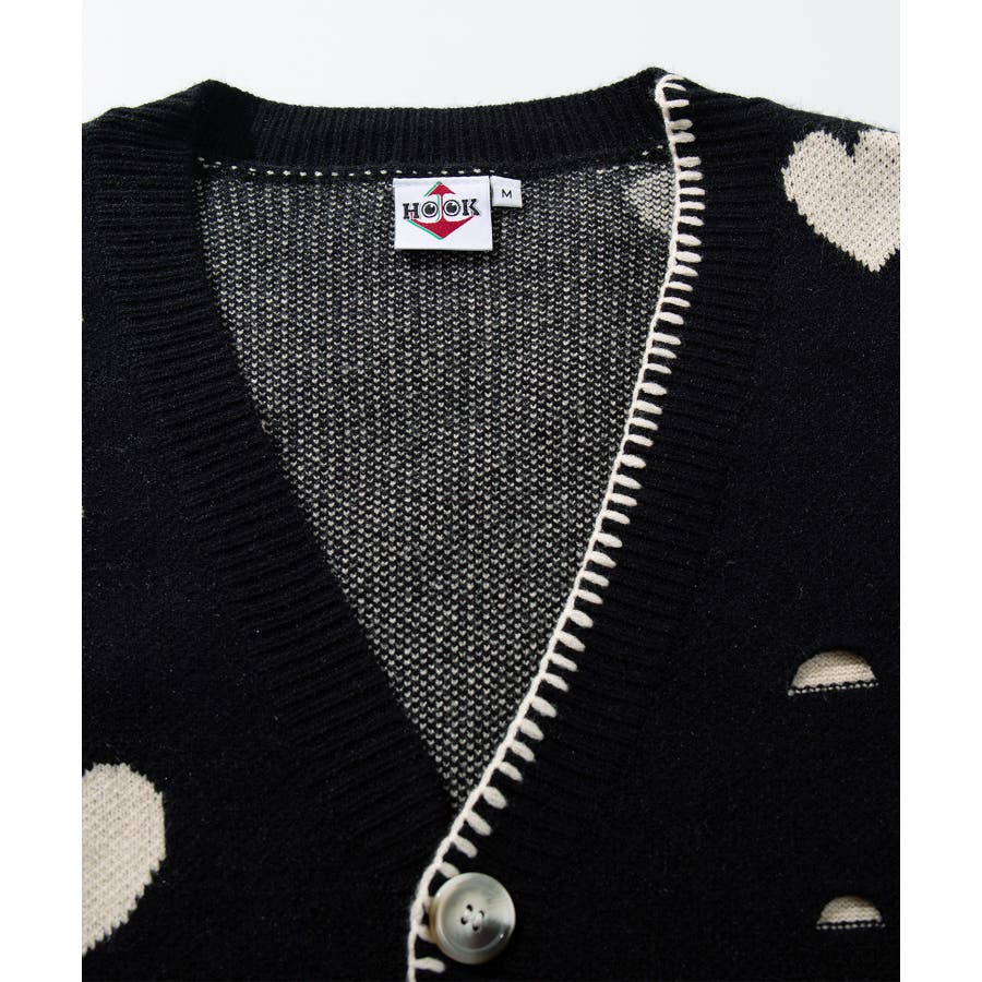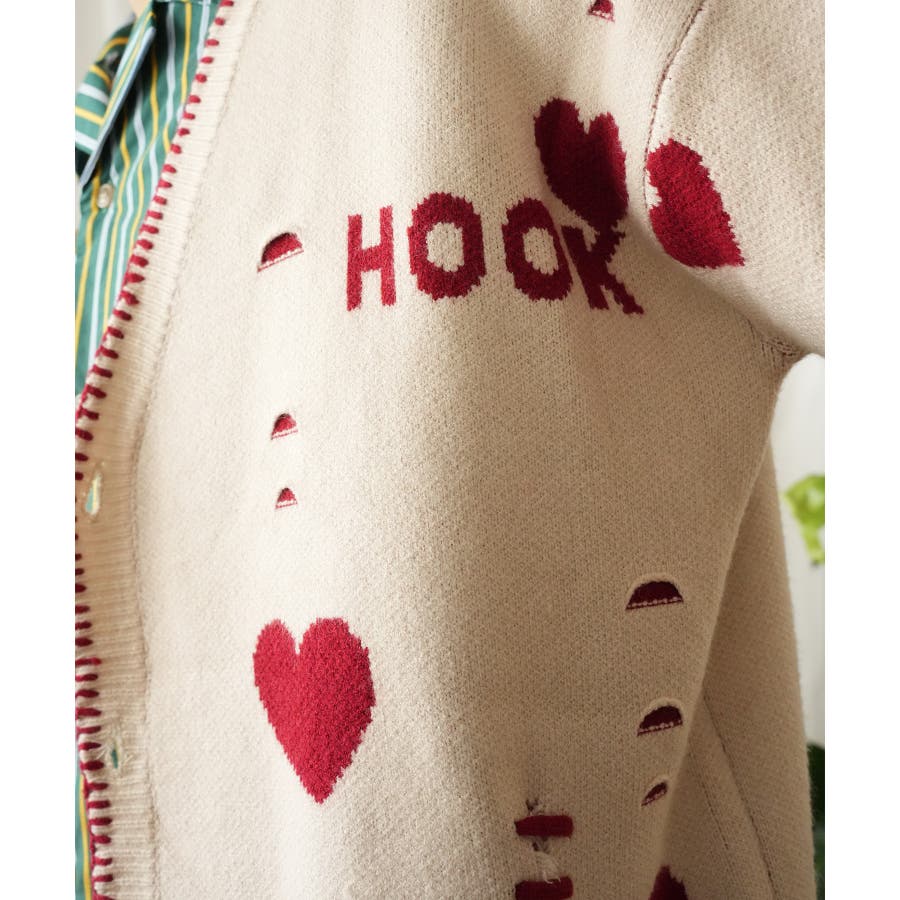 HOOK original ボロボロのハート総柄クレイジーステッチカーディガン