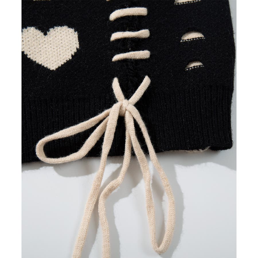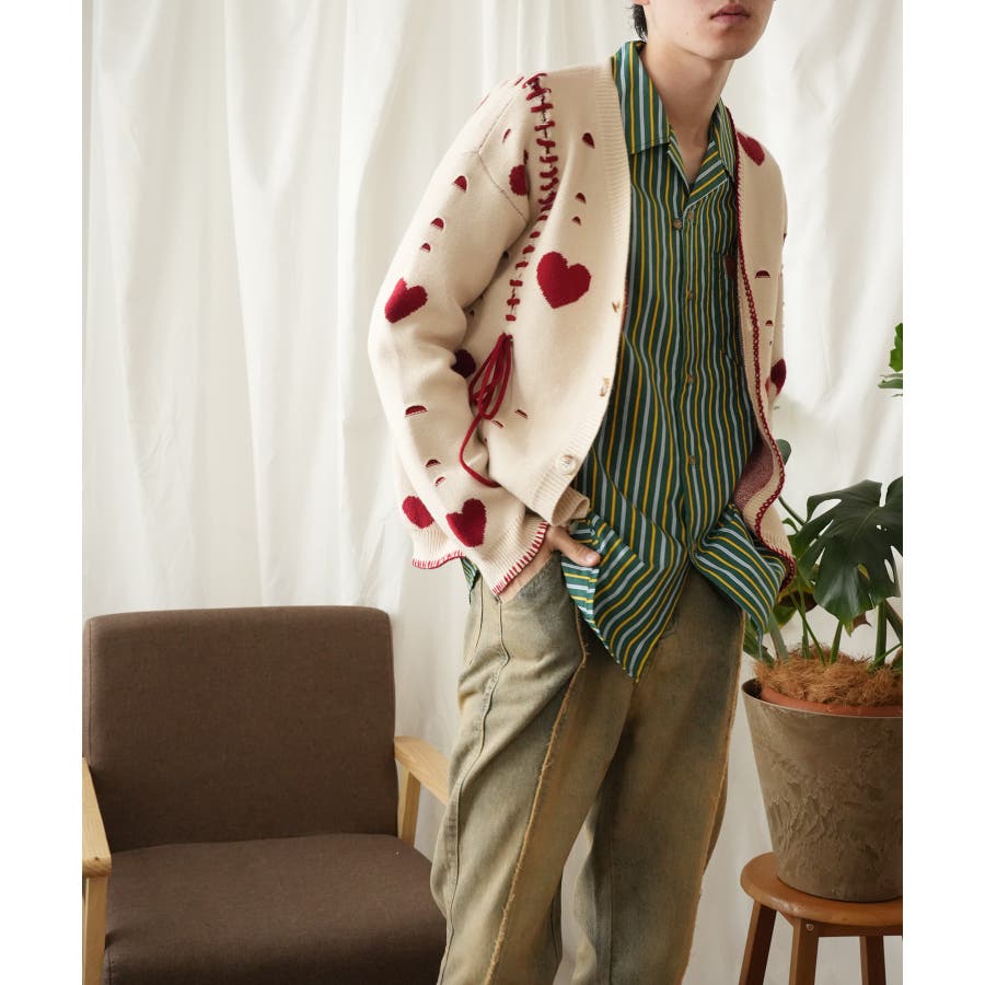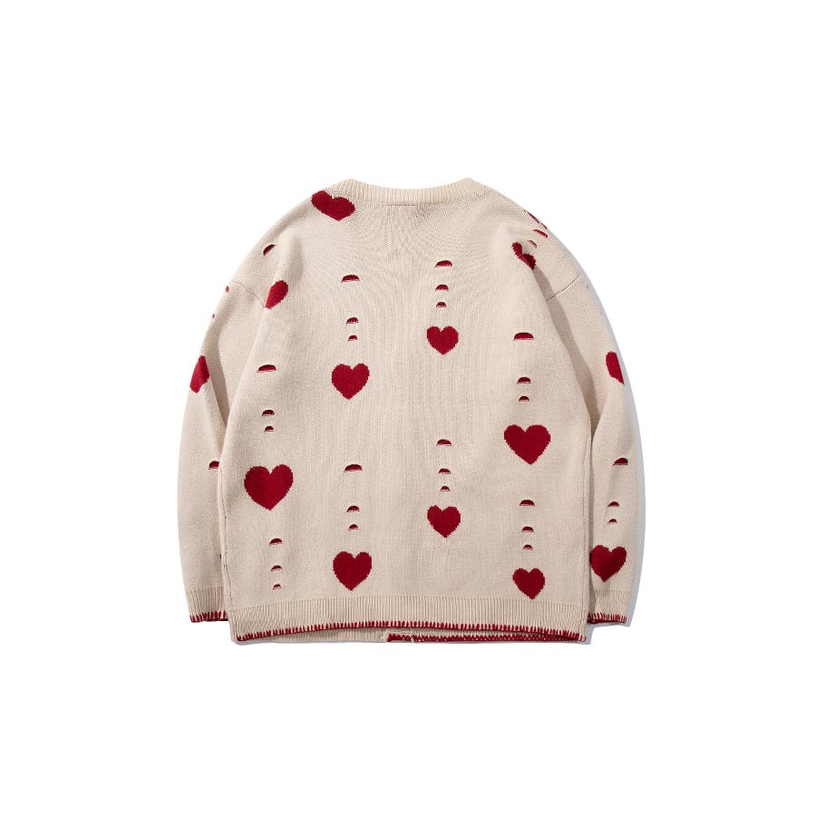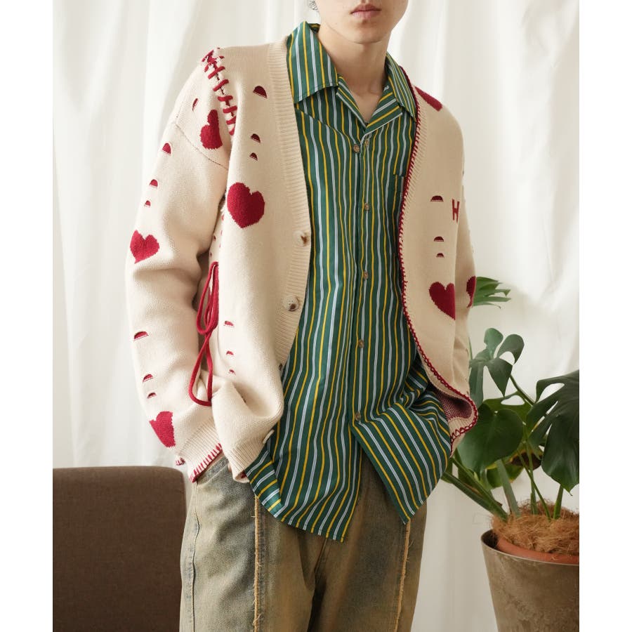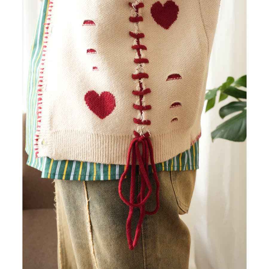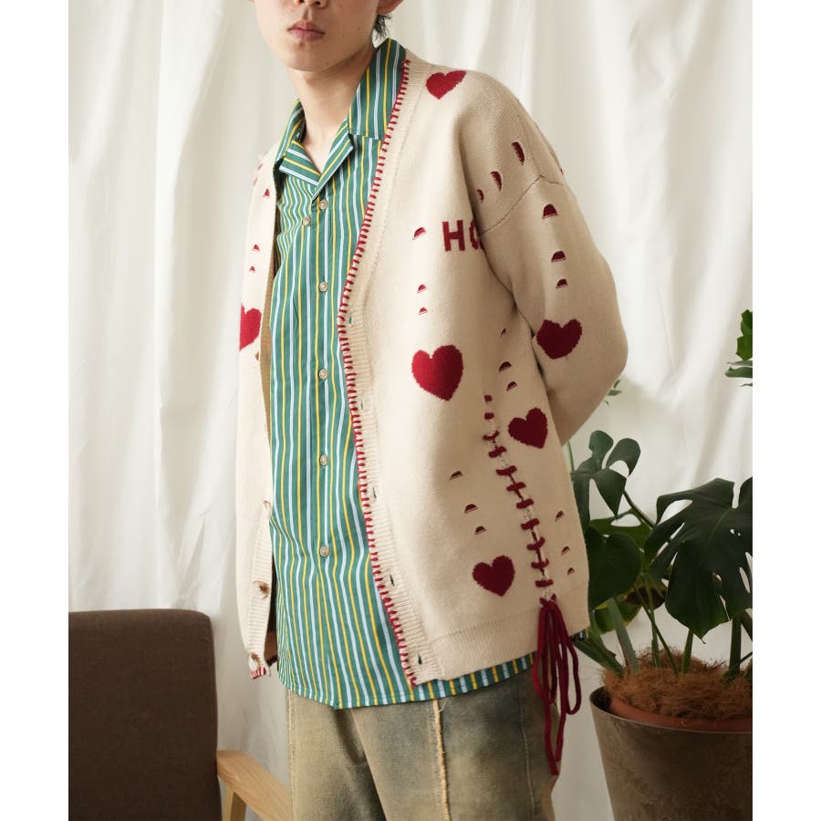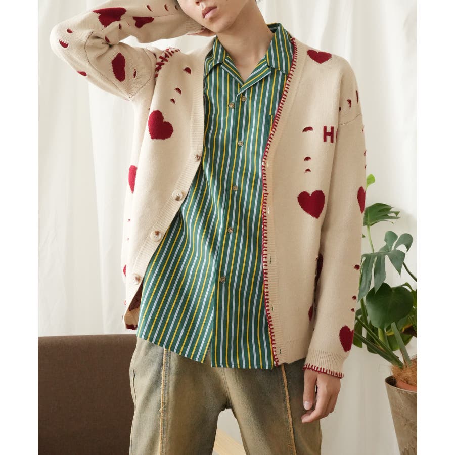 HOOK original ボロボロのハート総柄クレイジーステッチカーディガン