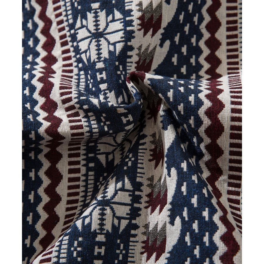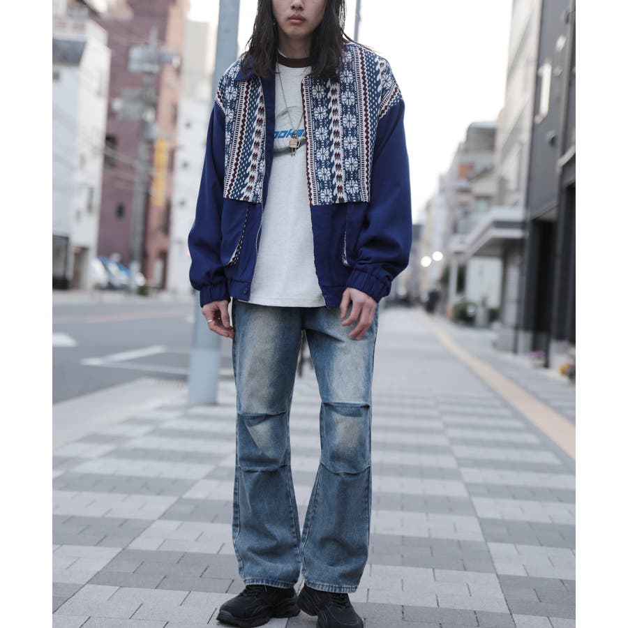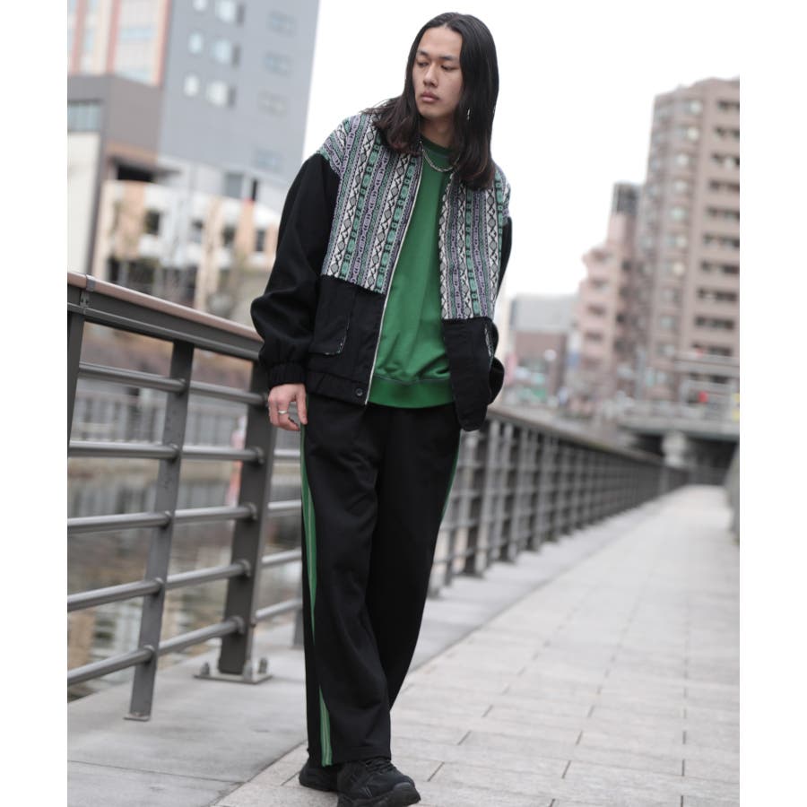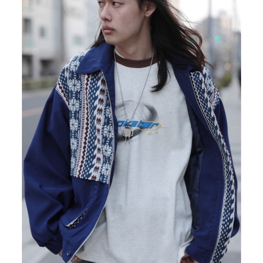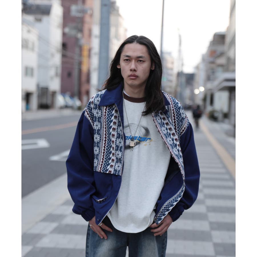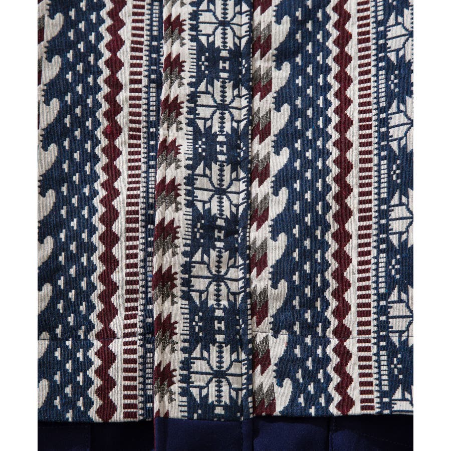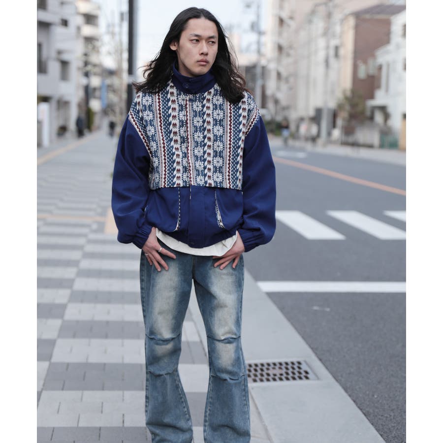 古着感覚の幾何学模様ジャカード切り替えコーチジャケット。ジャカードの部分はケープ風レイヤードデザインで、コーデのアクセントになります。無地の部分は触り心地よいのピッチスキン生地を使用し、防風性も抜群です。襟の部分は2WAYデザインで、スロートラッチをボタンで止めればハイネック仕様にもなれる機能性も抜群のブルゾンアイテム。ペアルック、リンクコーデ、カップルコーデにもおすすめ!! メンズ・レディース共にお勧めのユニセックスアイテムです。