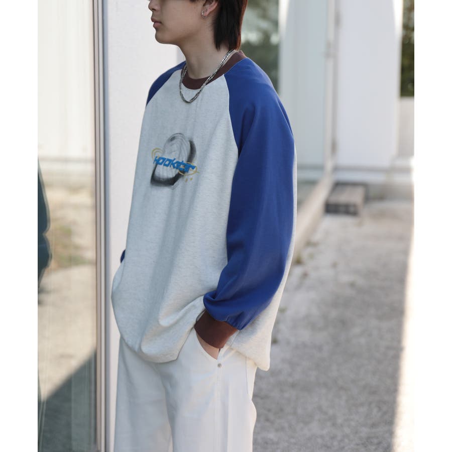 HOOK -original- Y2Kプリント配色ラグランスリーブロンTEE