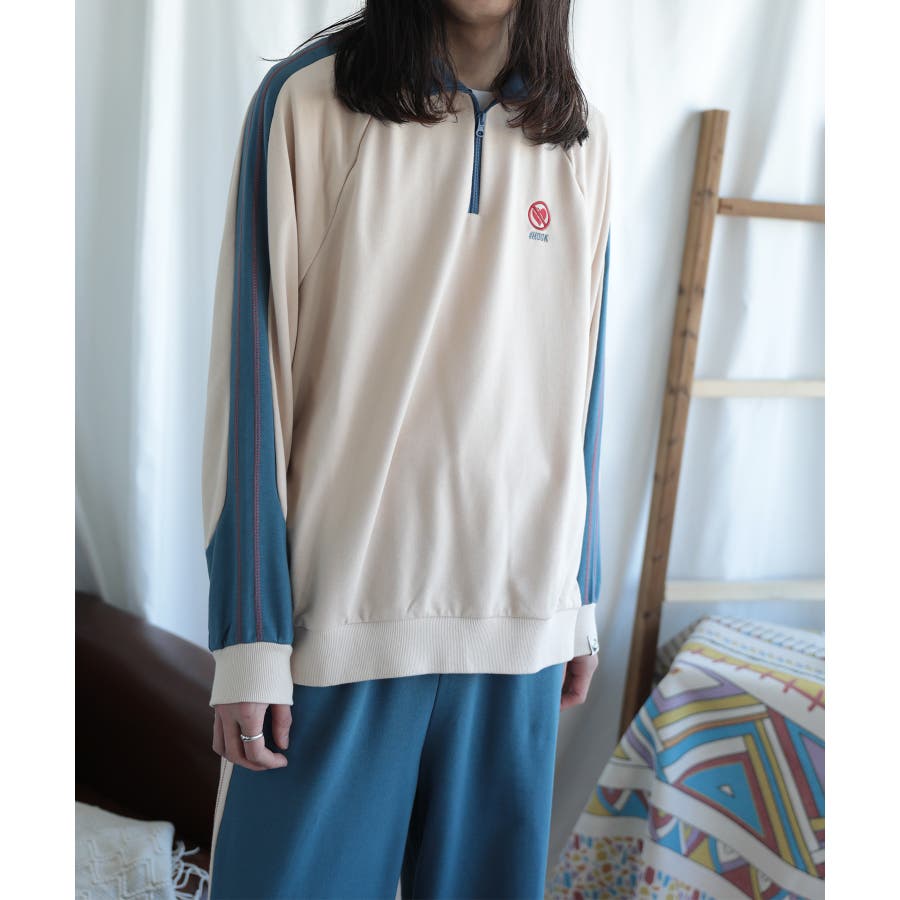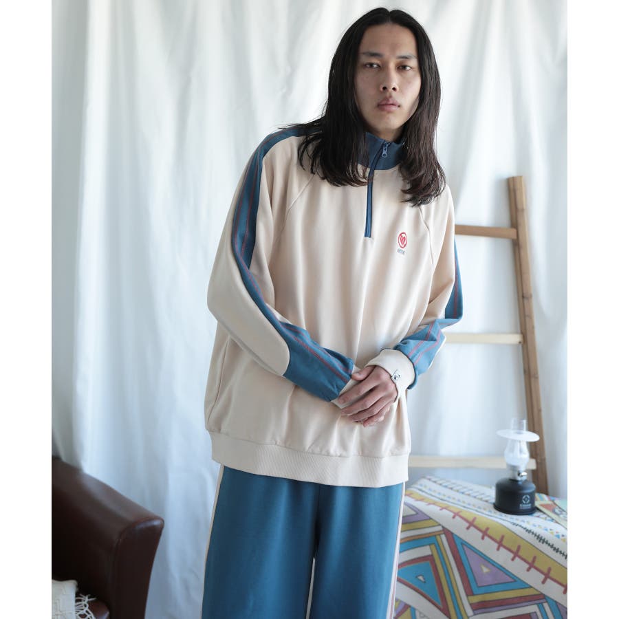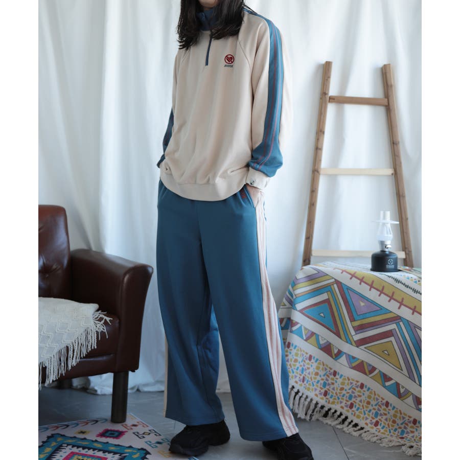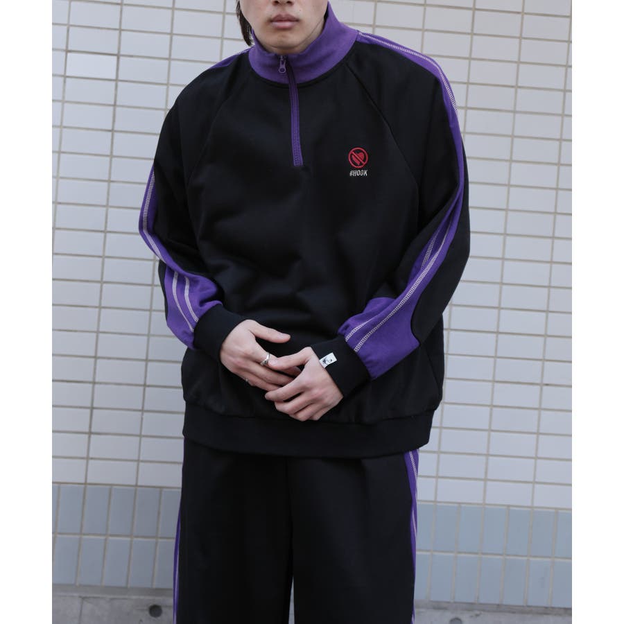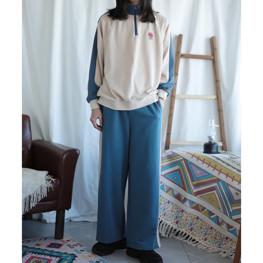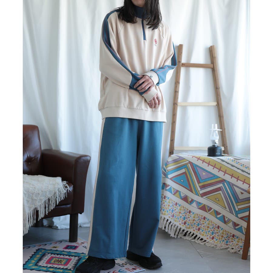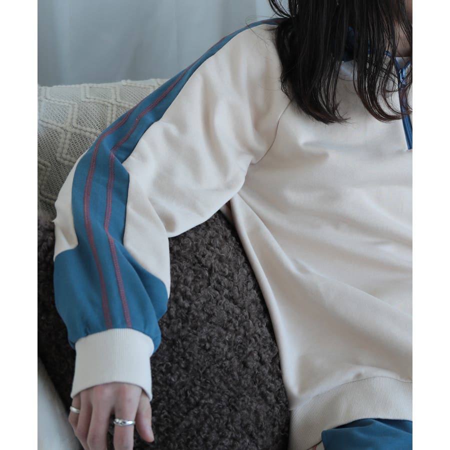 配色ワンポイント刺繍飾りステッチサイドラインハーフジップ セットアップ可能