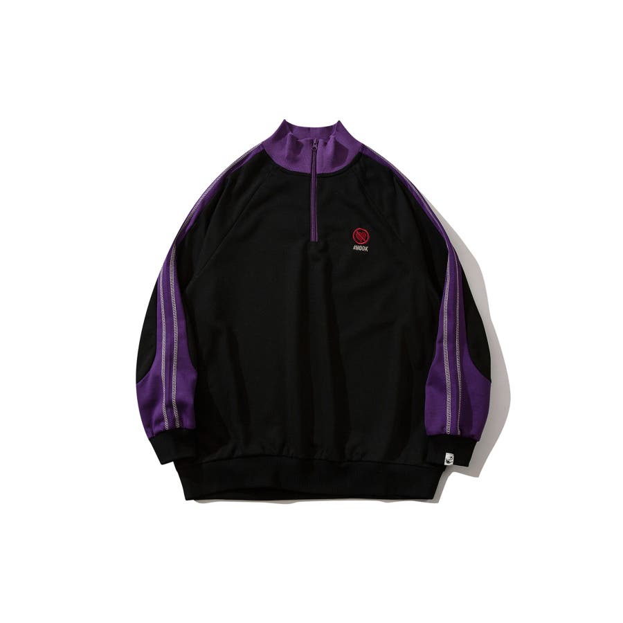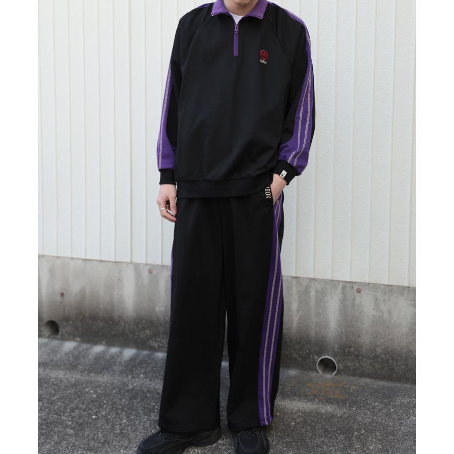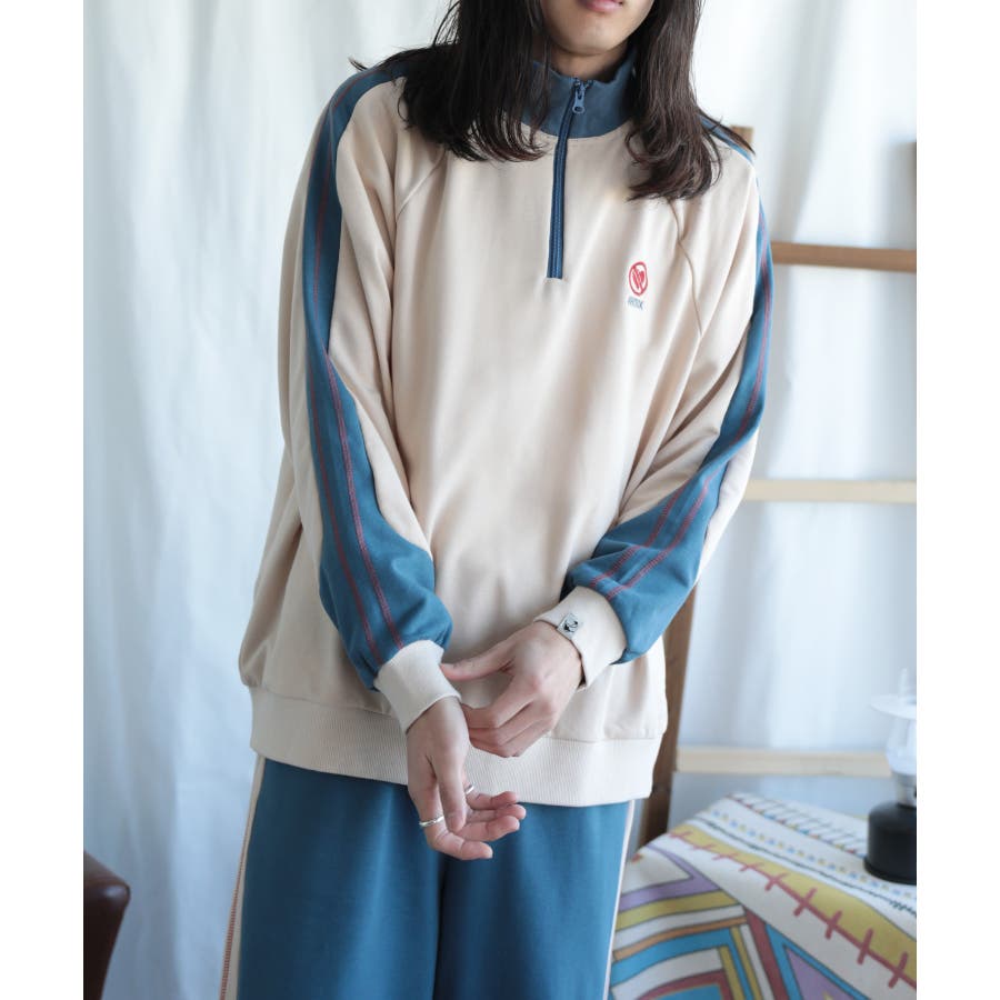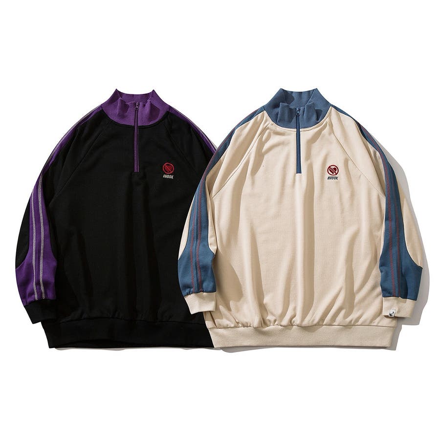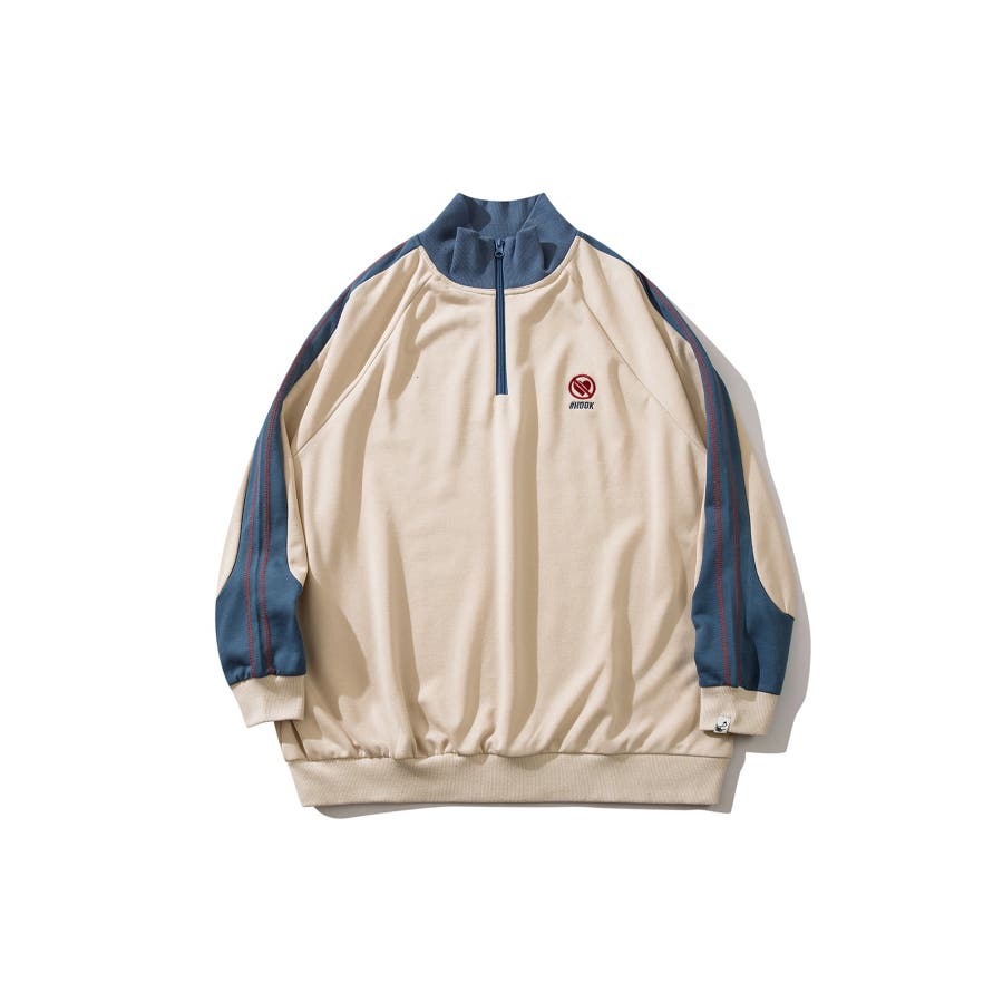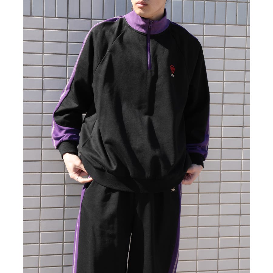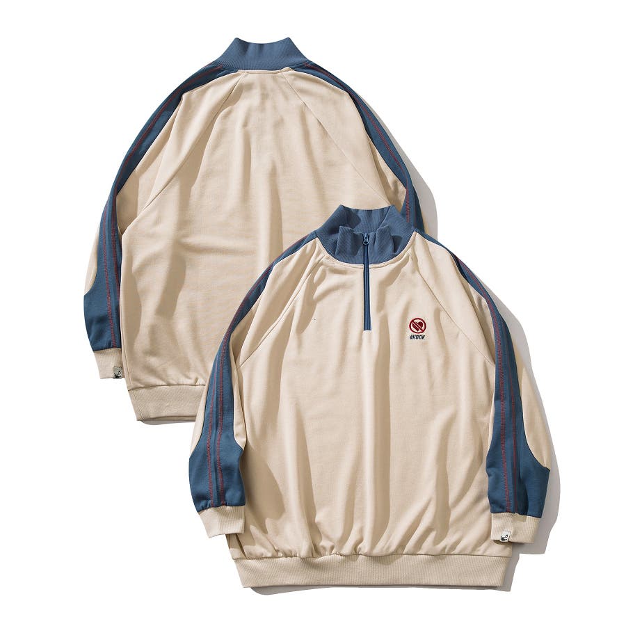 配色ワンポイント刺繍飾りステッチサイドラインハーフジップ セットアップ可能