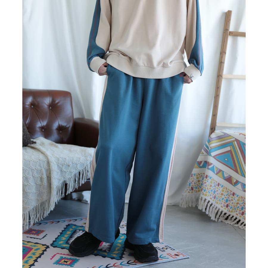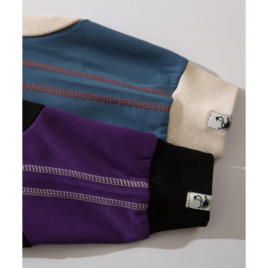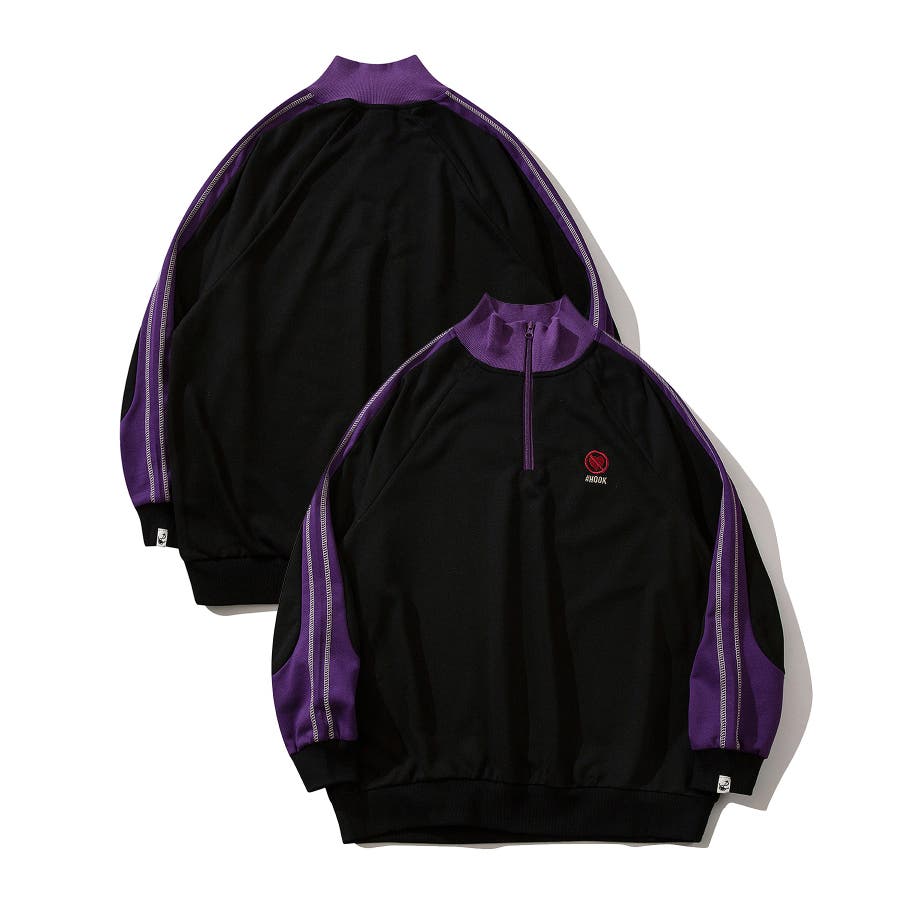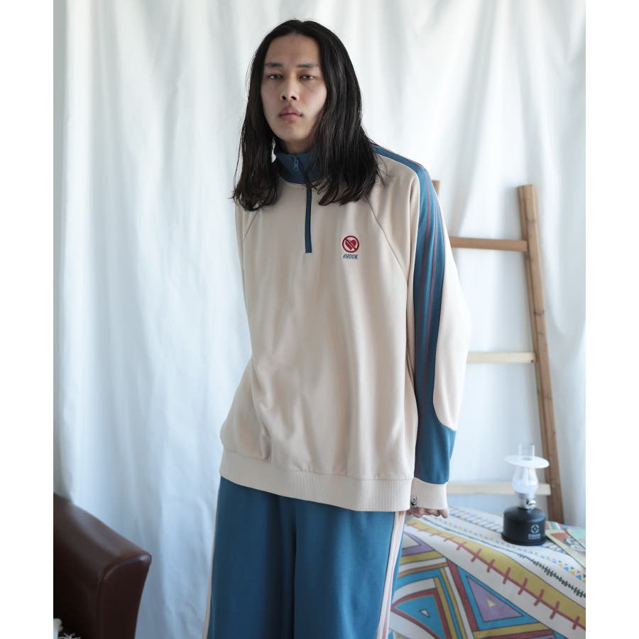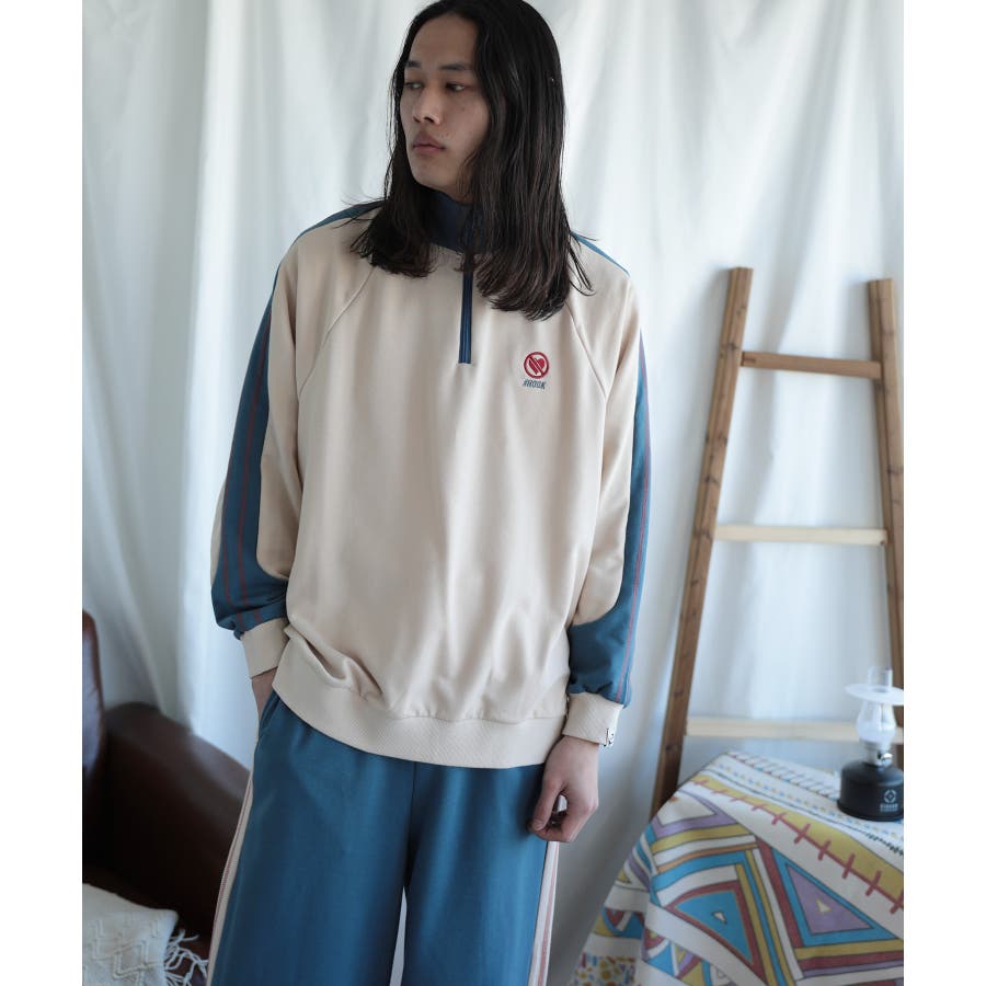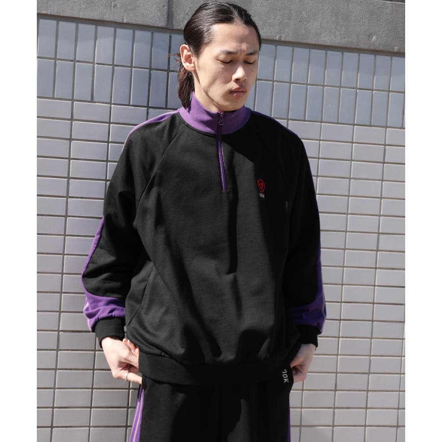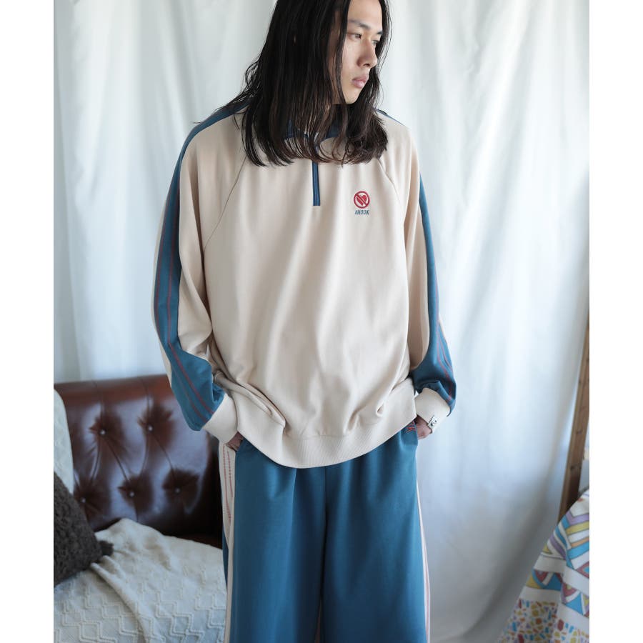 配色ワンポイント刺繍飾りステッチサイドラインハーフジップ セットアップ可能
