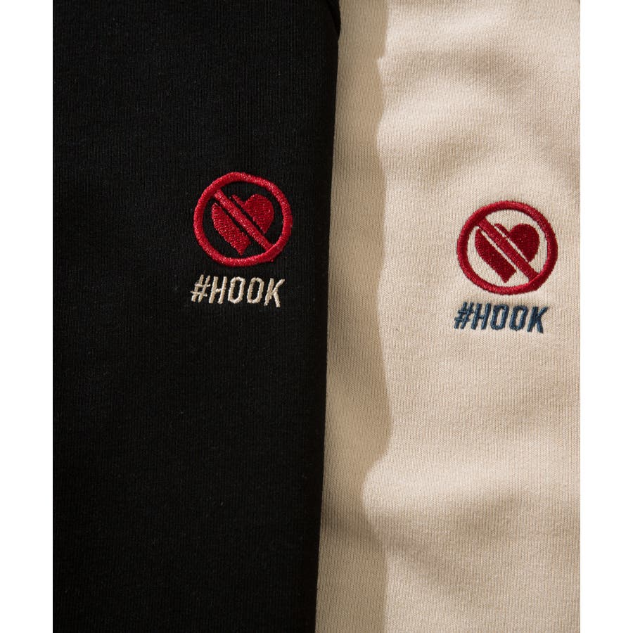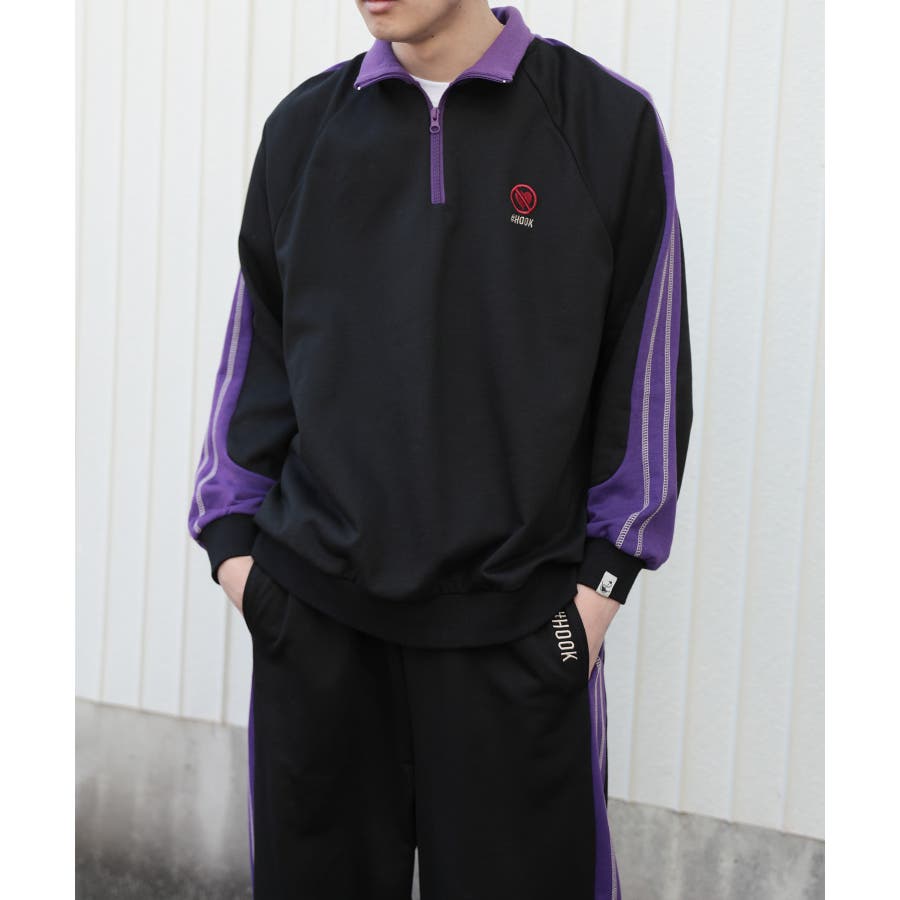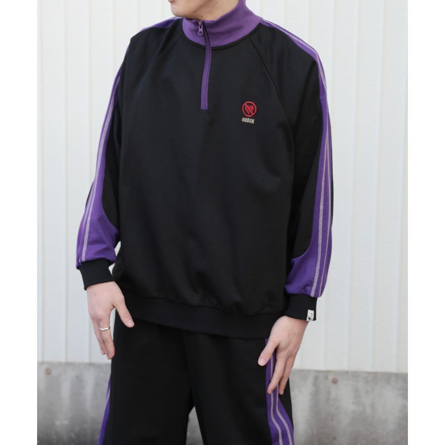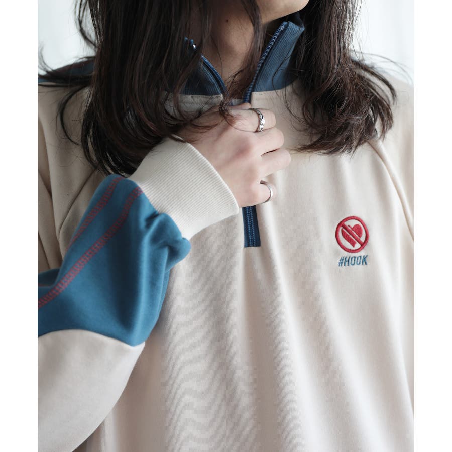トレンドに左右されず、永年愛用できるHOOKの定番シリーズが登場!袖の切り替え線がカーブなっているユニークな配色スウェットハーフジップ。胸元の「NO CRUSH」ハート刺繍のロゴがワンポイント。袖山の2本の飾りステッチはHOOKの定番デザイン。ファスナーを締めるとハイネックとして、開けるとポロ襟としても2WAYの着こなしが出来る人気アイテム。同時販売中のスウェットパンツとセットアップコーデが可能!ペアルック、リンクコーデ、カップルコーデにもおすすめ!! メンズ・レディース共にお勧めのユニセックスアイテムです。●生地の柔らかさ 普通(黒は別の色よりやや硬い。着用する前に一度洗濯することがおすすめ)●生地の厚み 普通●生地の透け感 なし●生地の伸縮性 あり【S(cm)】身幅58 肩幅57 総丈65 そで丈48【M(cm)】身幅62 肩幅59 総丈68 そで丈50【L(cm)】身幅65 肩幅61 総丈70 そで丈52【XL(cm)】身幅68 肩幅63 総丈72 そで丈54【素材】 ポリエステル65%、綿35%【生産国】 中国
