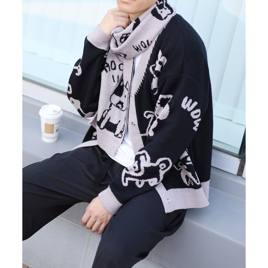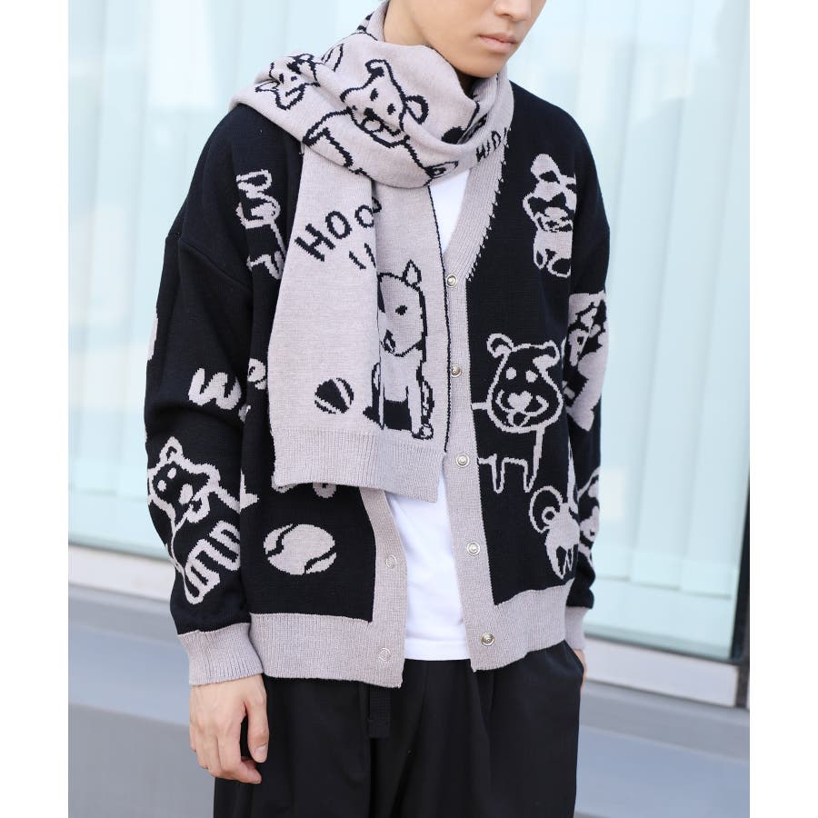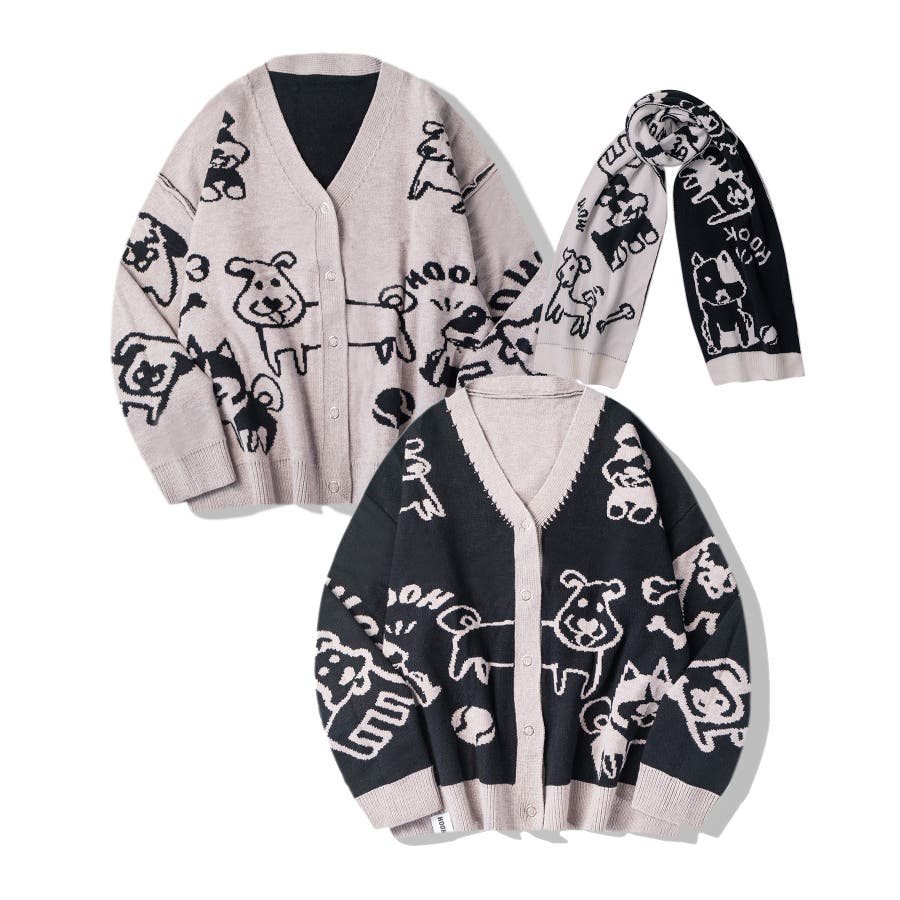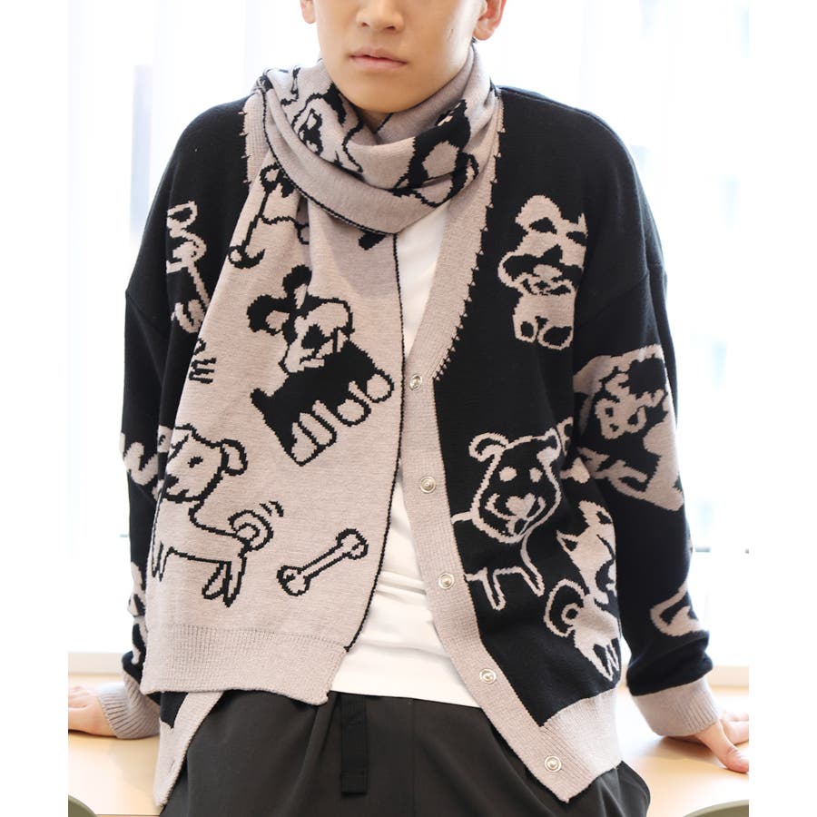 2WAYリバーシブルワンちゃんニットカーディガン マフラー付き【AW】