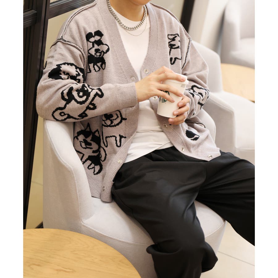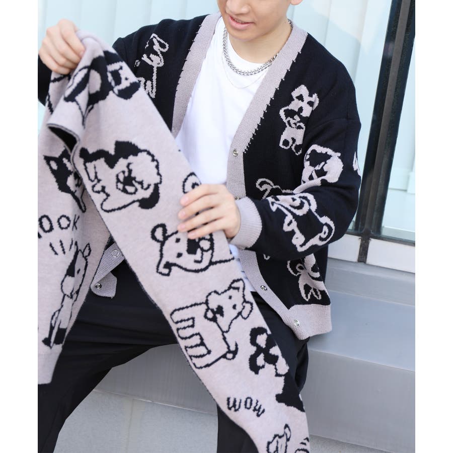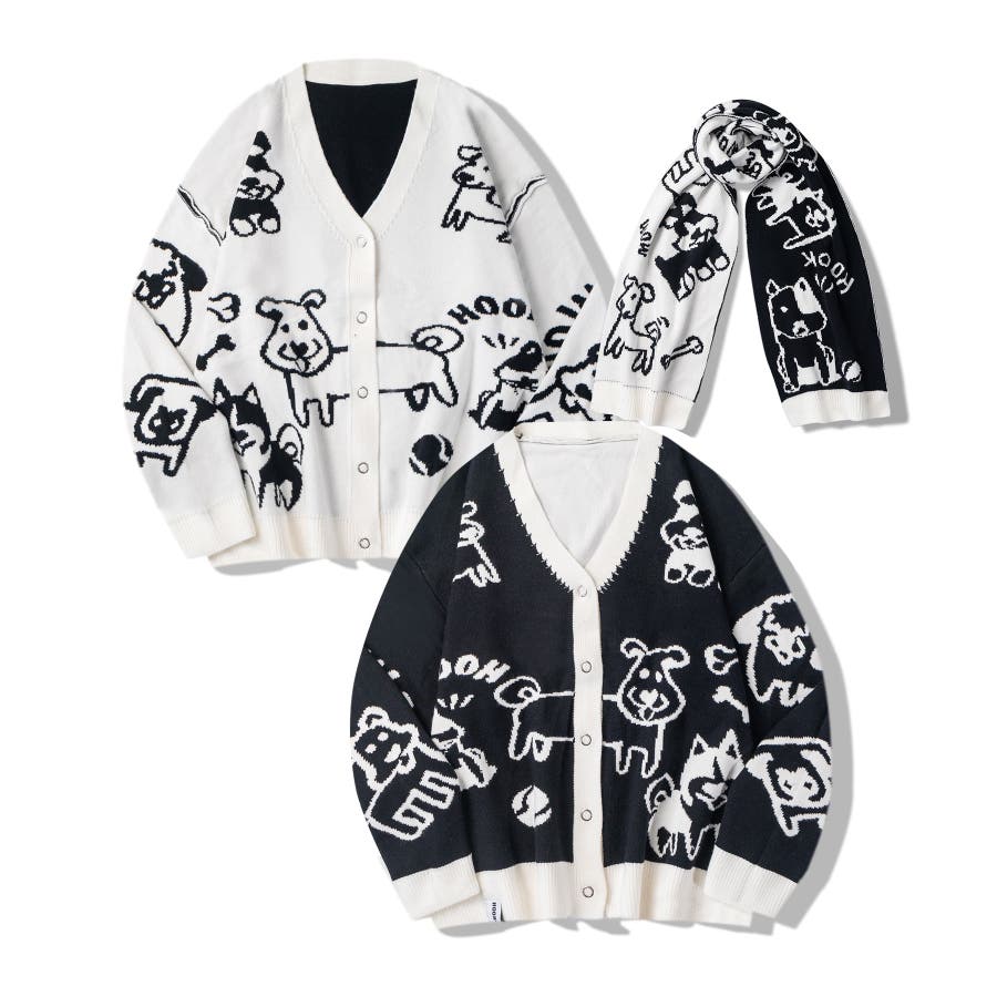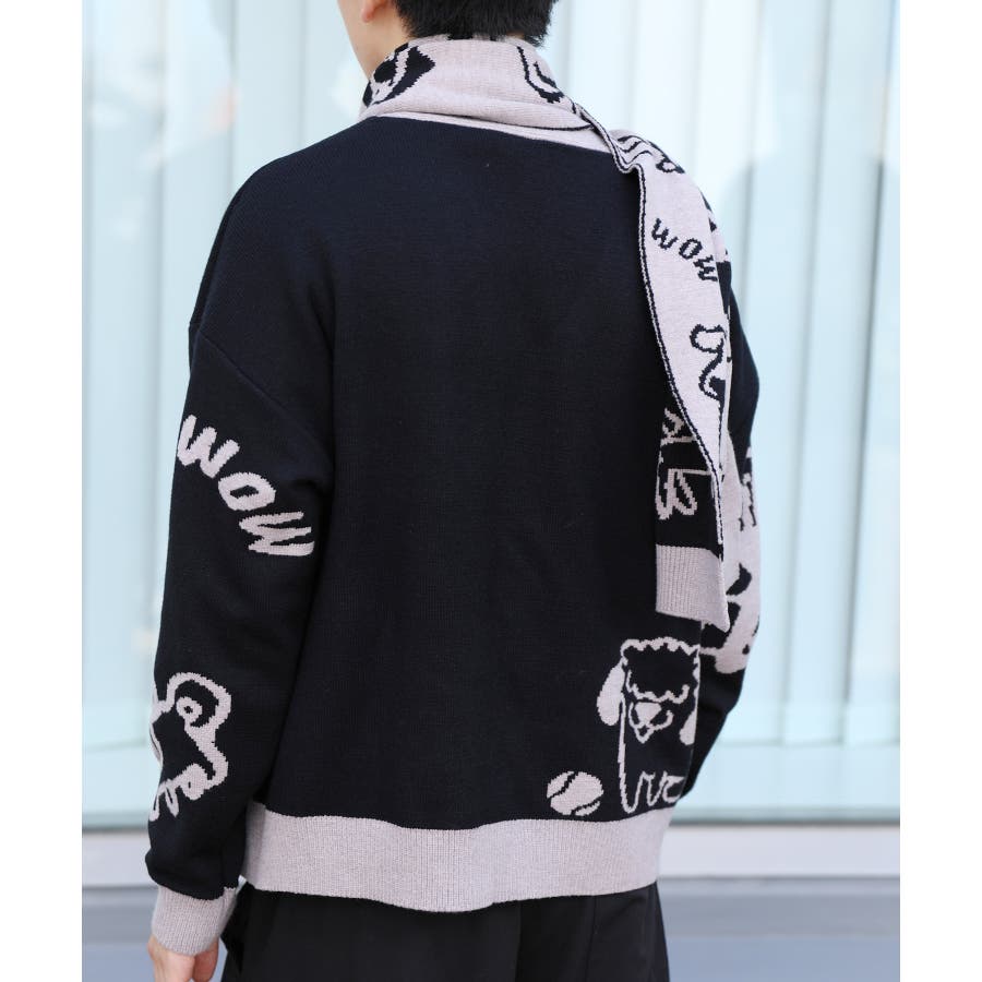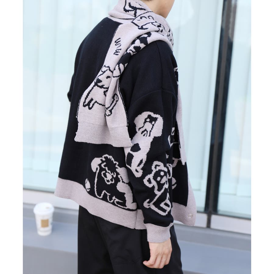 2WAYリバーシブルワンちゃんニットカーディガン マフラー付き【AW】