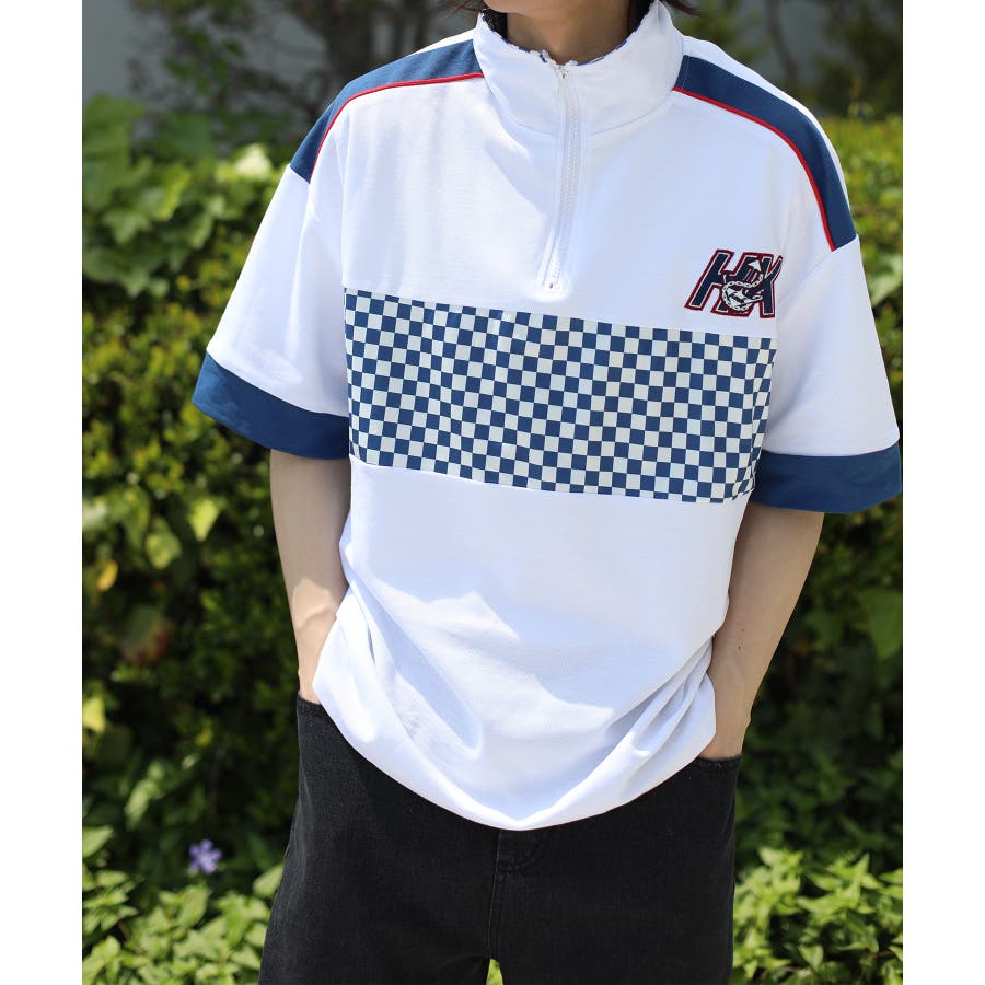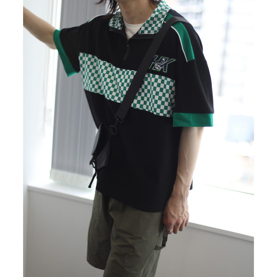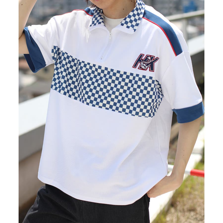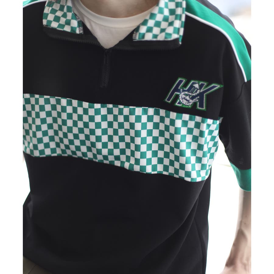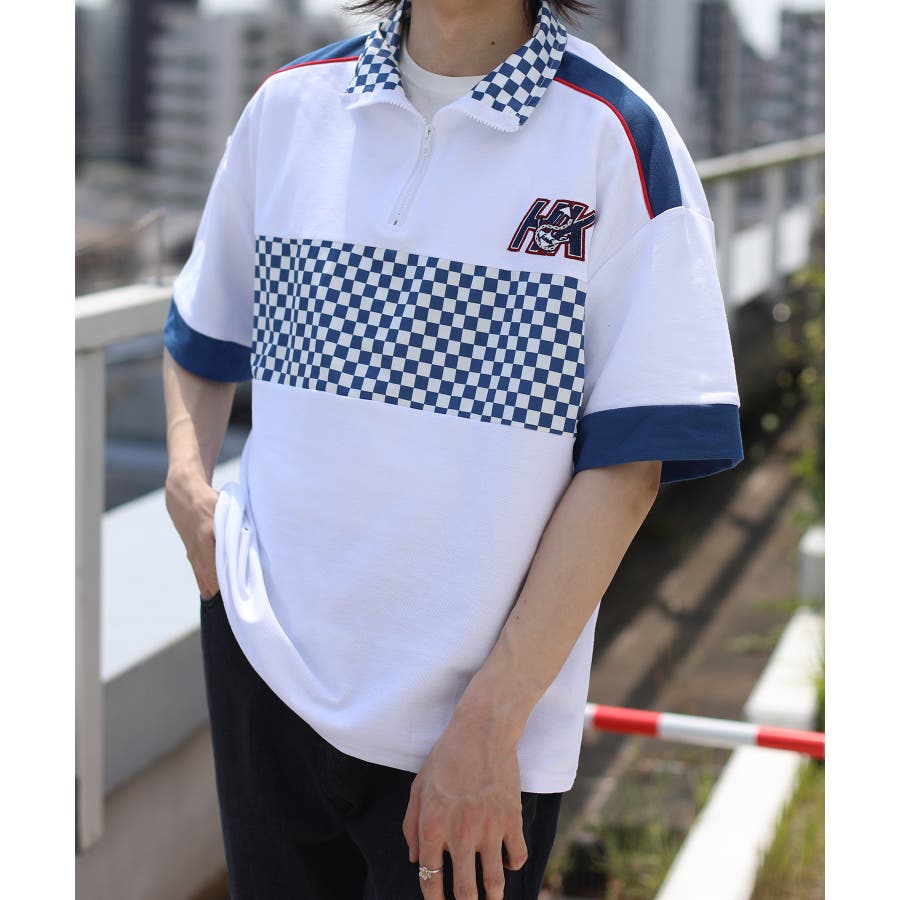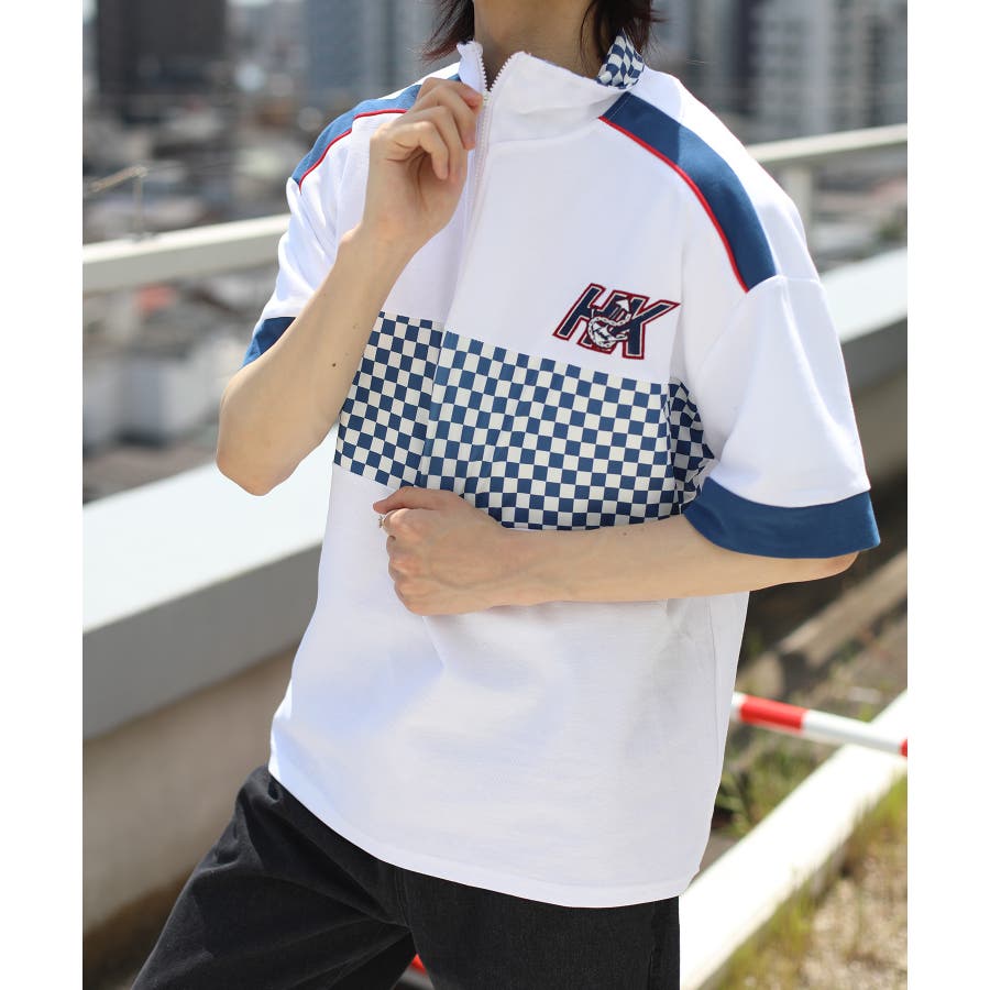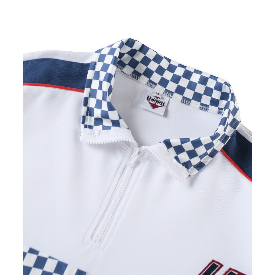HOOK original レーシング風ブロックチェック切り替え半袖ハーフジッ…