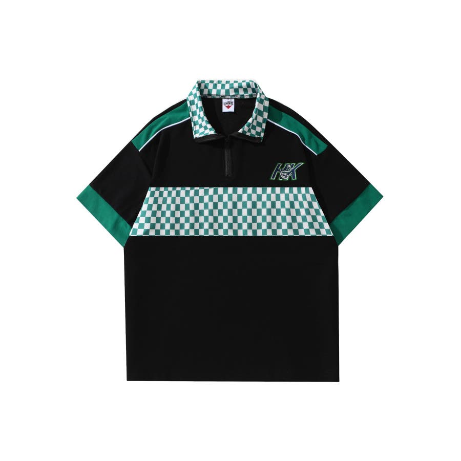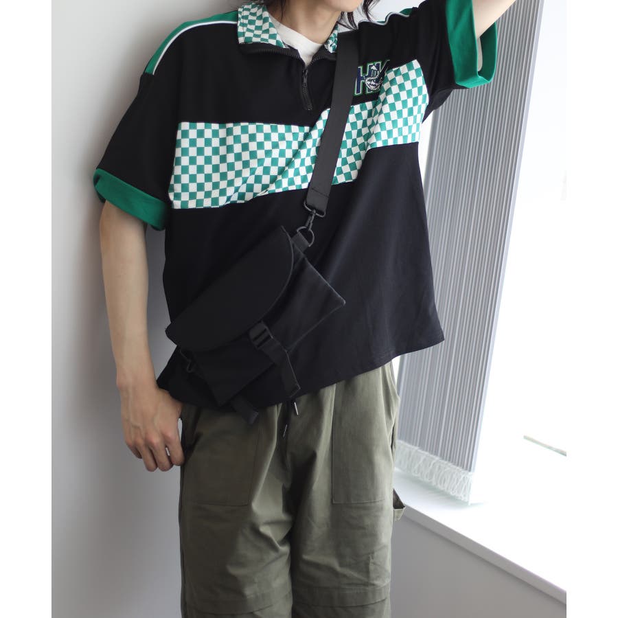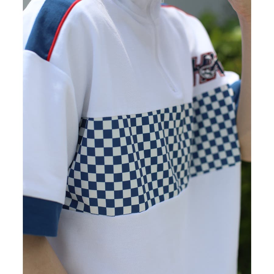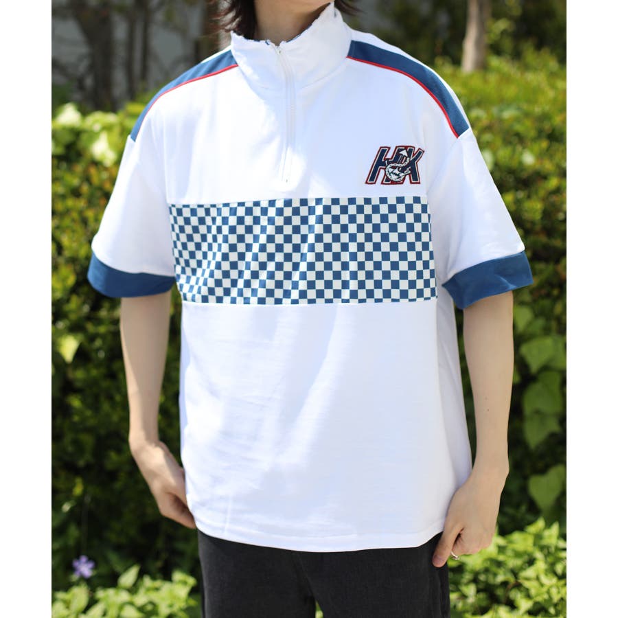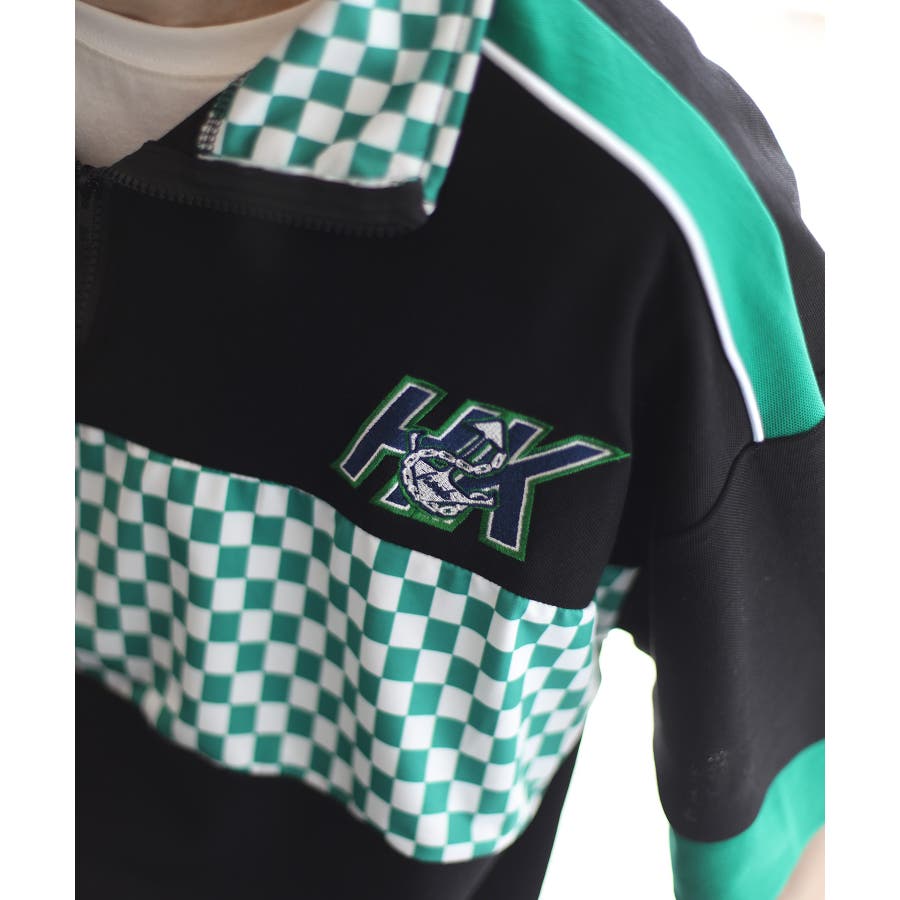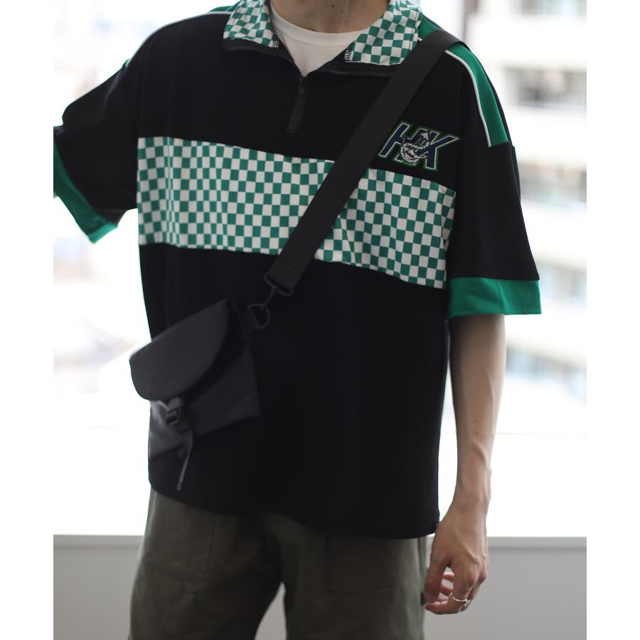 HOOK original レーシング風ブロックチェック切り替え半袖ハーフジッ…