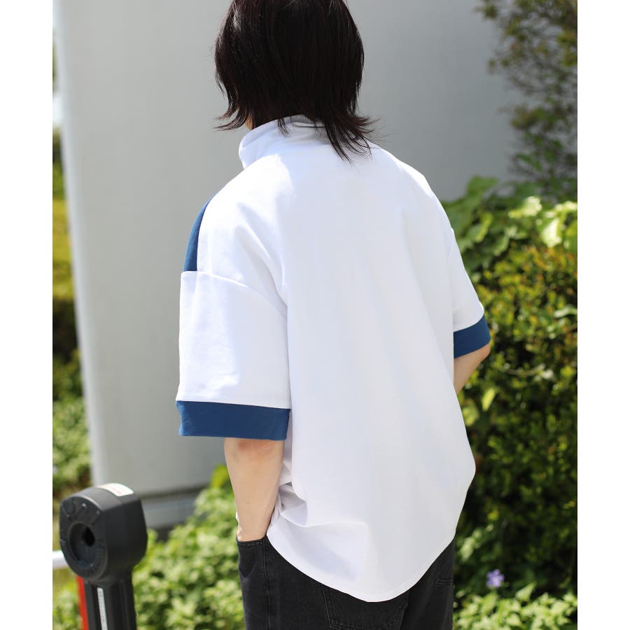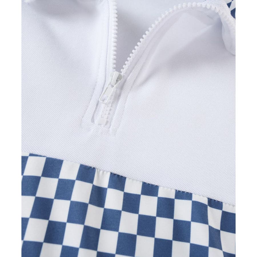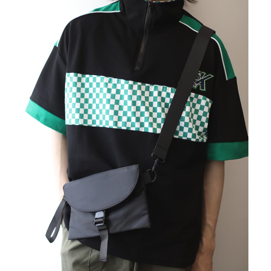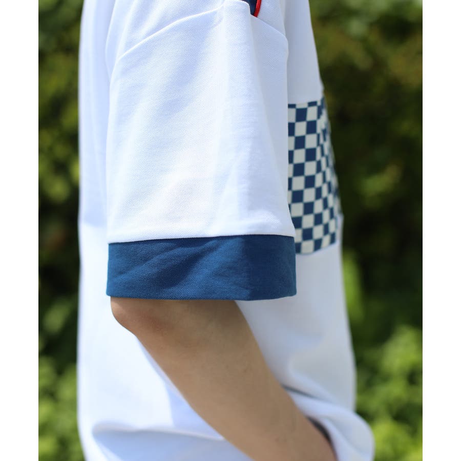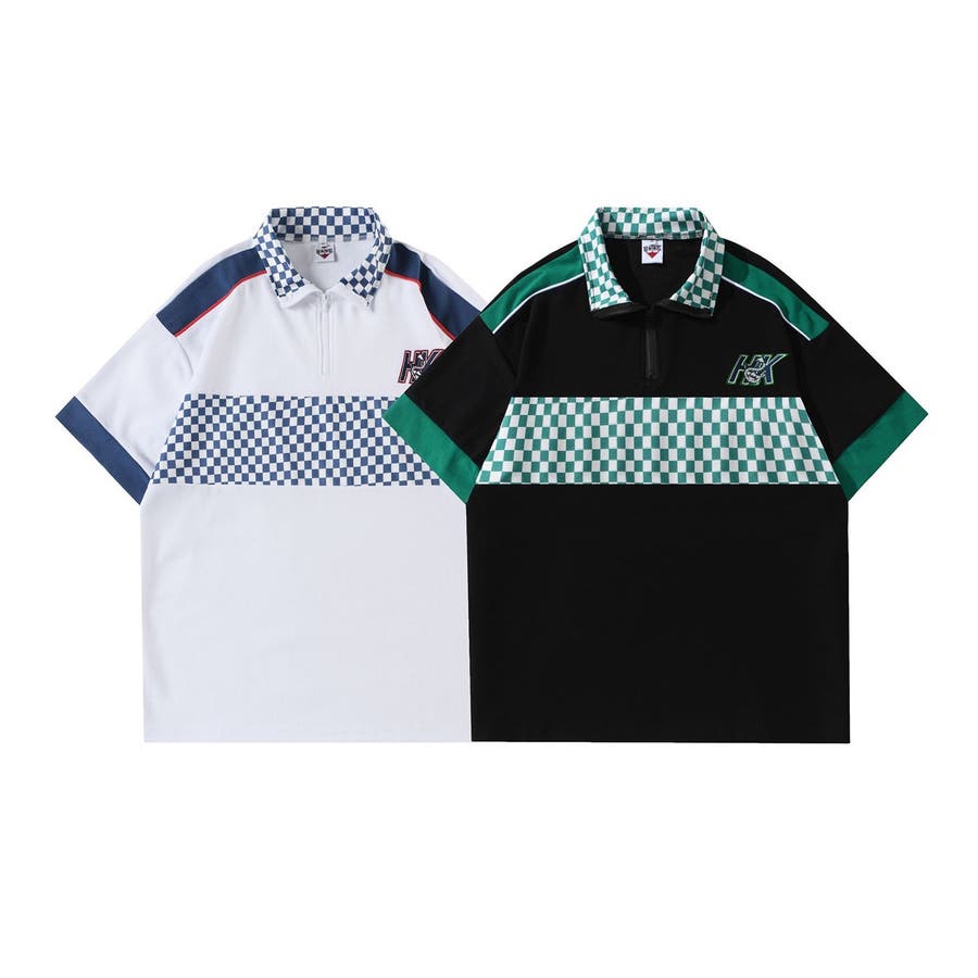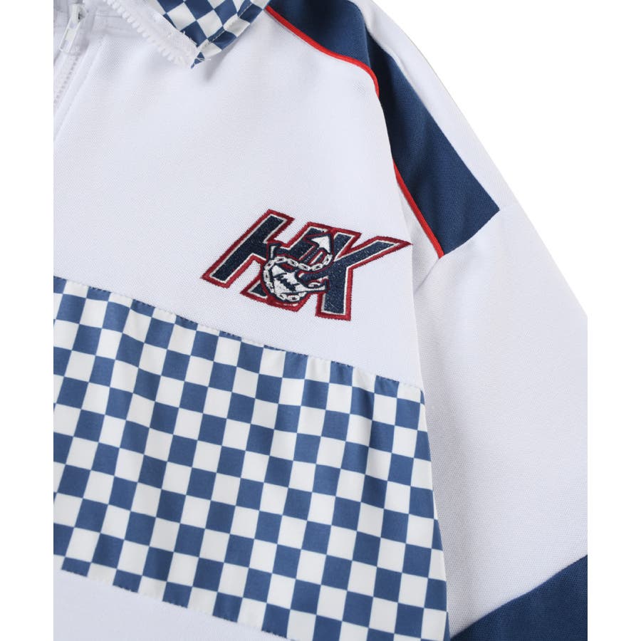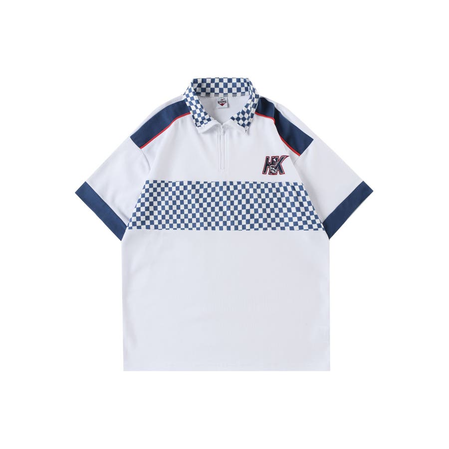 HOOK original レーシング風ブロックチェック切り替え半袖ハーフジッ…