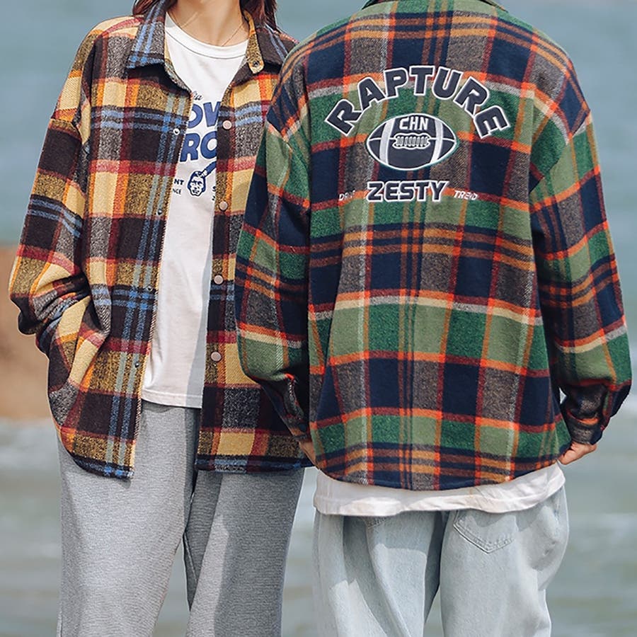チェックシャツ アメカジ配色チェック柄バック刺繍ビッグシャツ 韓国ファッション