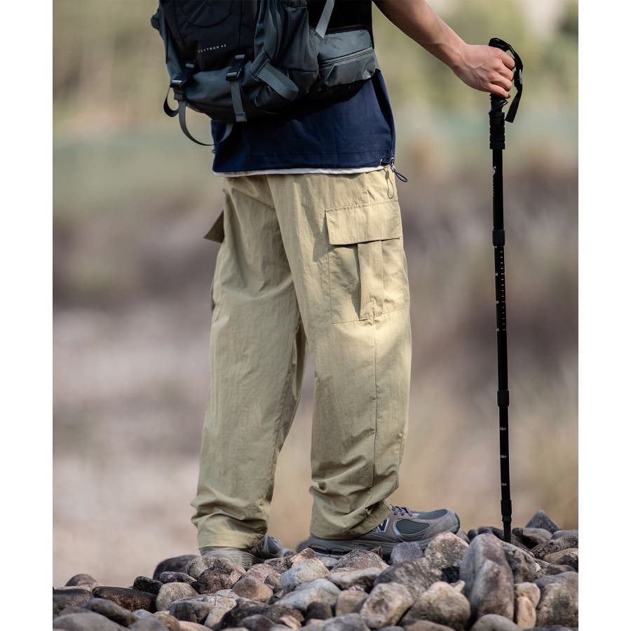 シンプルなデザインで着回しやすく、高い汎用性を備えたクライミングパンツ上部からアクセスする大き目ポケットは容量充分で使いやすい仕様になっています着回しやすく動きやすいスタイルで、普段のストリートコーデはもちろん、キャンプなどのアウトドア、タウンユース、フェス、山登り、自転車など、様々なシーンで活躍すること間違いなしメンズ、レディースともに着用できるユニセックスモデルで、イベントやフェスでのカップルコーデ、友達同士のペアコーデにおすすめです。●生地の厚み 普通●生地の透け感 なし●生地の伸縮性 なし
