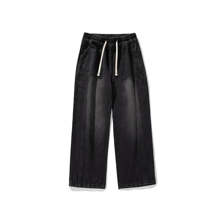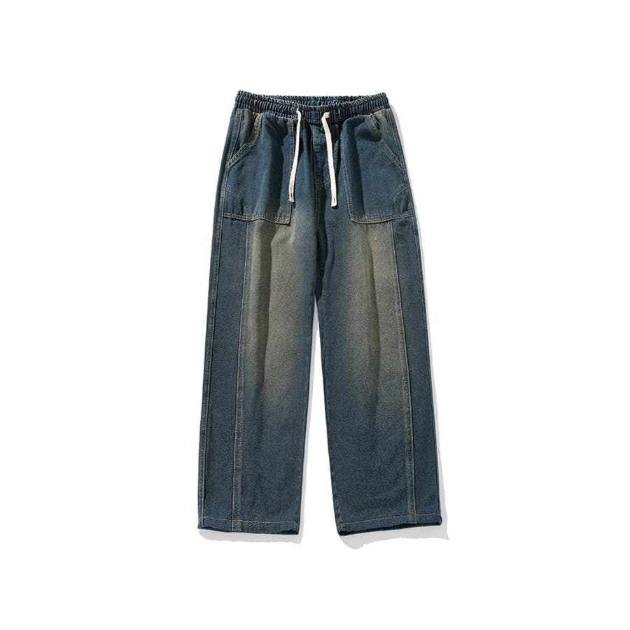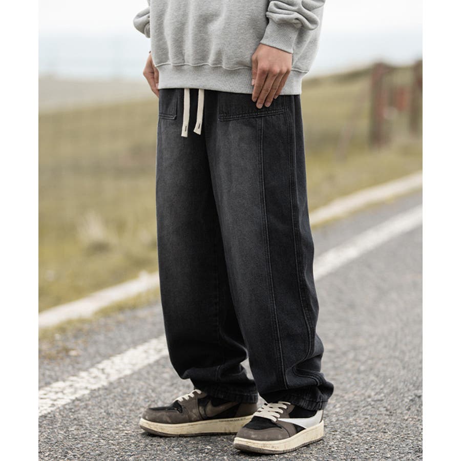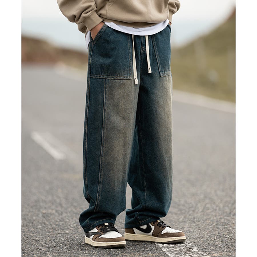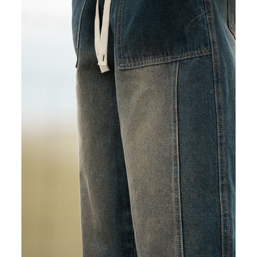 【HOOK】古着風ウォッシュデニム切り替えワイドパンツ