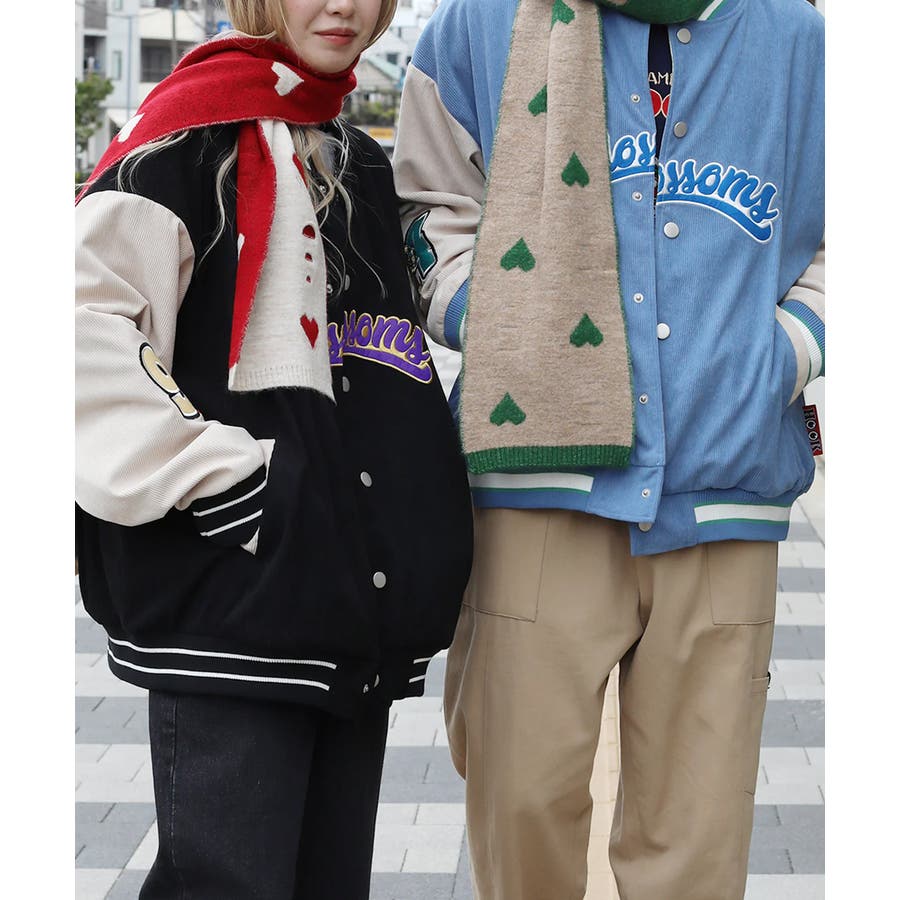 ダメージ加工が施されているようなハート模様のリバーシブルマフラー。柔らかな生地で、肌触りが良く、嫌なチクチク感がありません。表裏で異なるカラーのリバーシブル仕様なので巻き方によって様々なパリエーションが楽しめます。インパクトのあるハート模様が、ニットやスウェットなどベーシックなコーディネートにアクセントをプラスします。