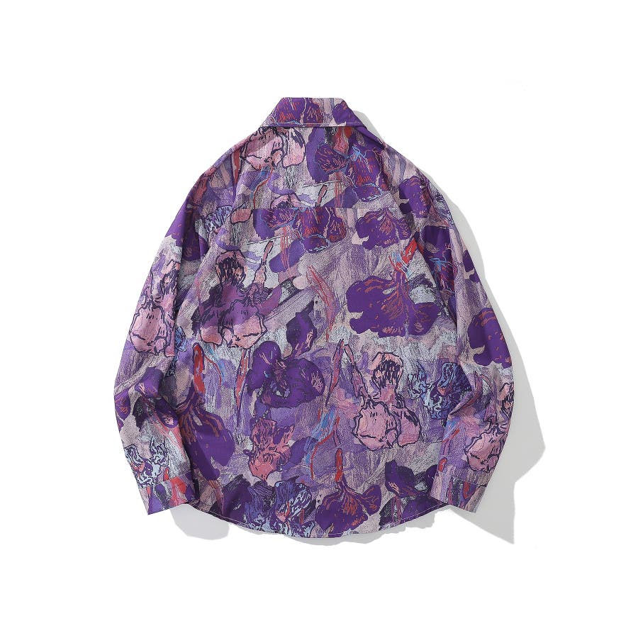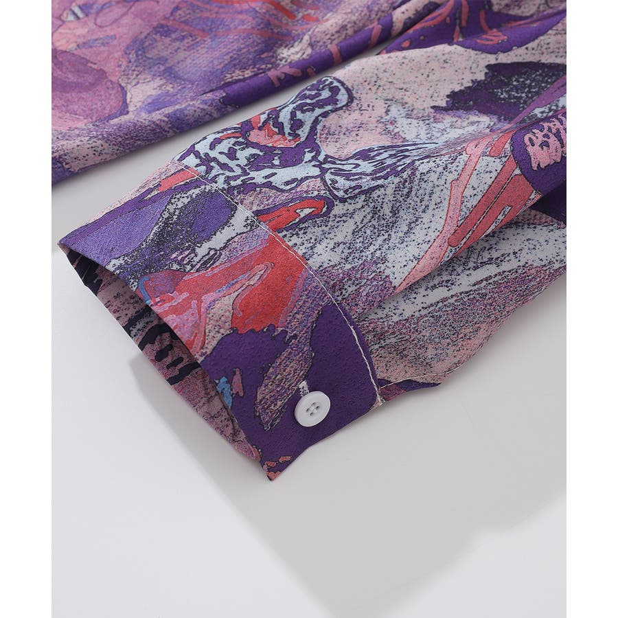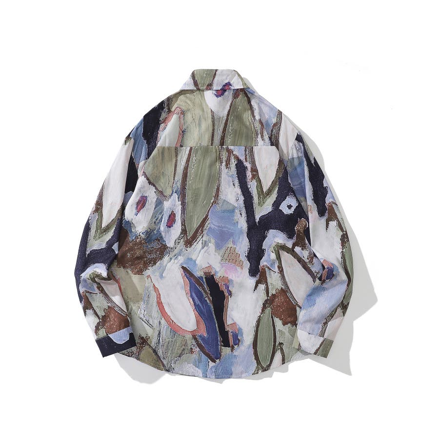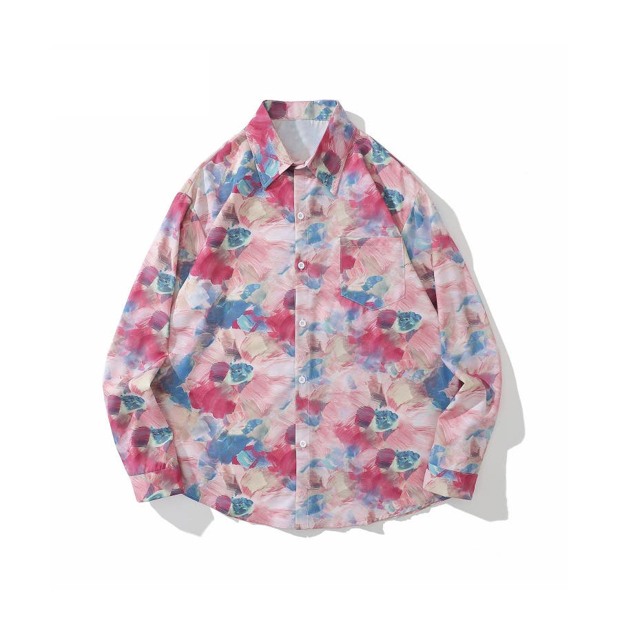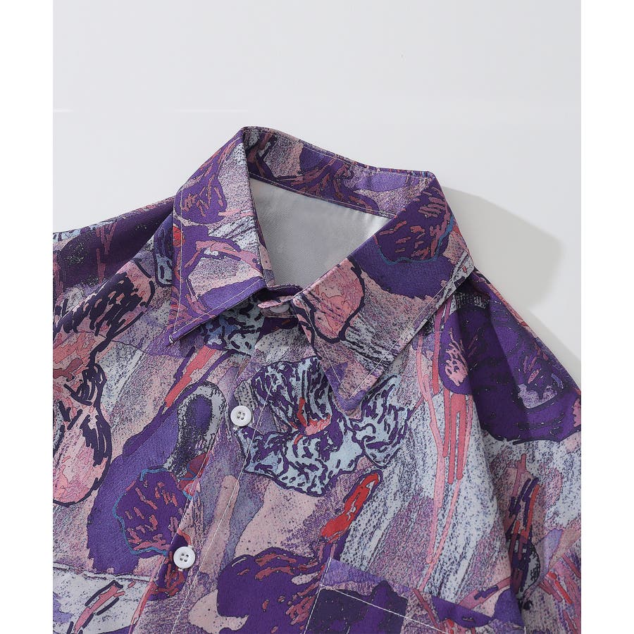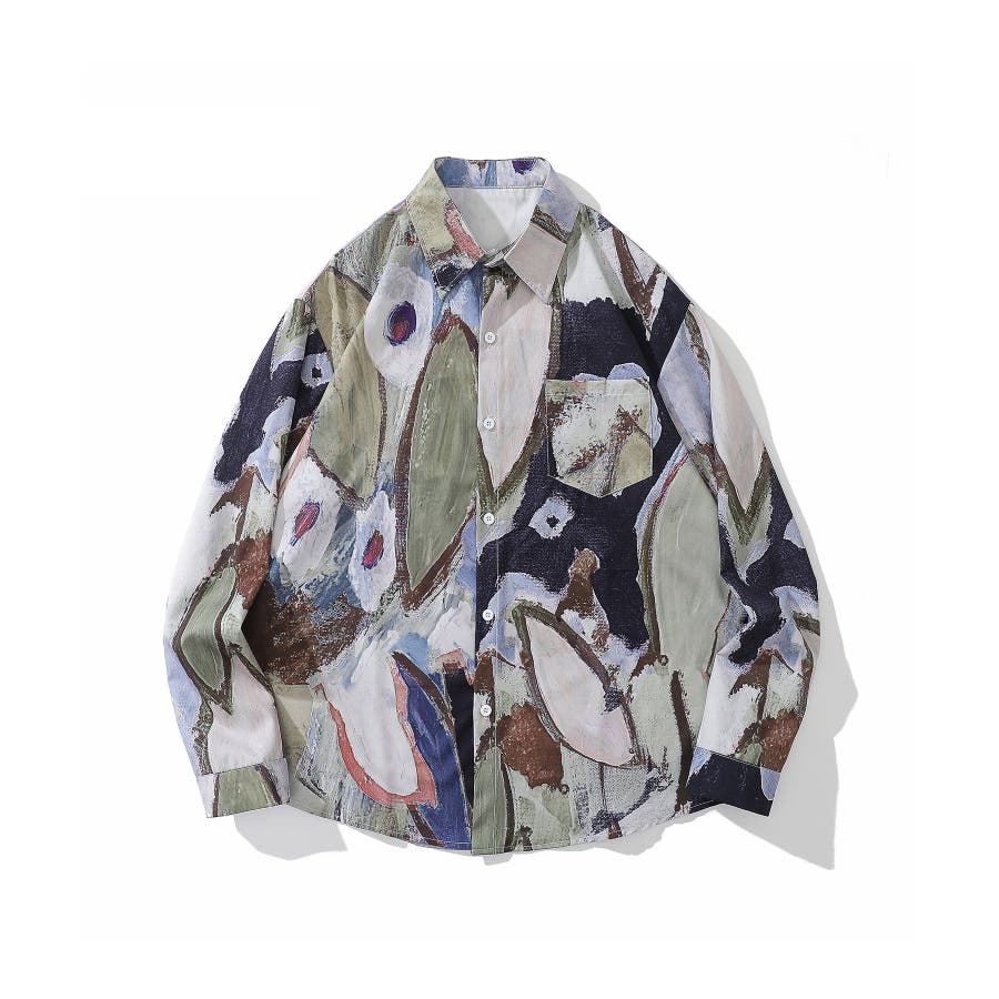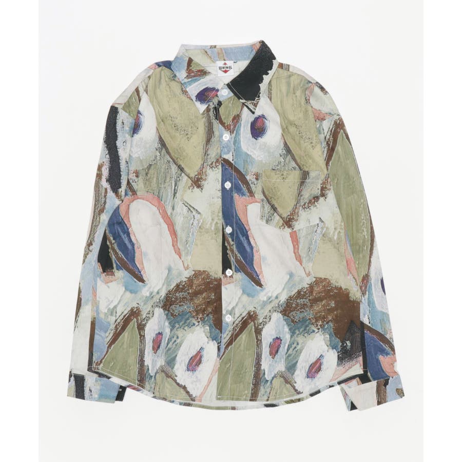 HOOK の新作!レトロ柄がお洒落な総柄長袖シャツシリーズが登場!落書き柄、絵画柄、フルーツ柄、抽象柄、幾何学柄…今季の総柄シャツのバラエティ豊富なデザインに。水彩で描いたようなにじみが、古着のようなレトロ感を演出しています。