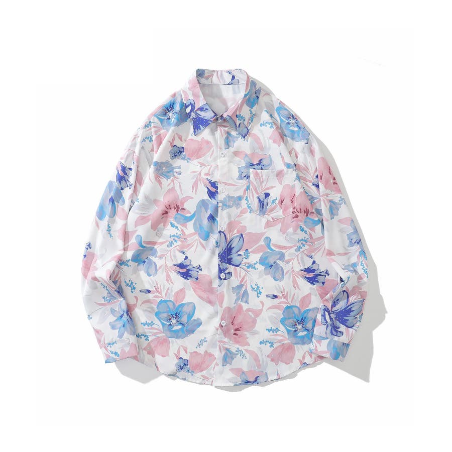 古着風総柄デザイン 長袖シャツ 韓国ファッション
