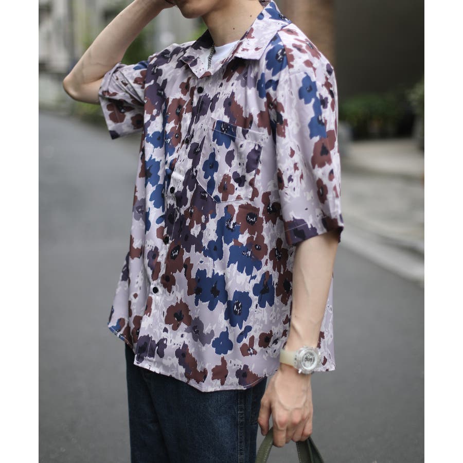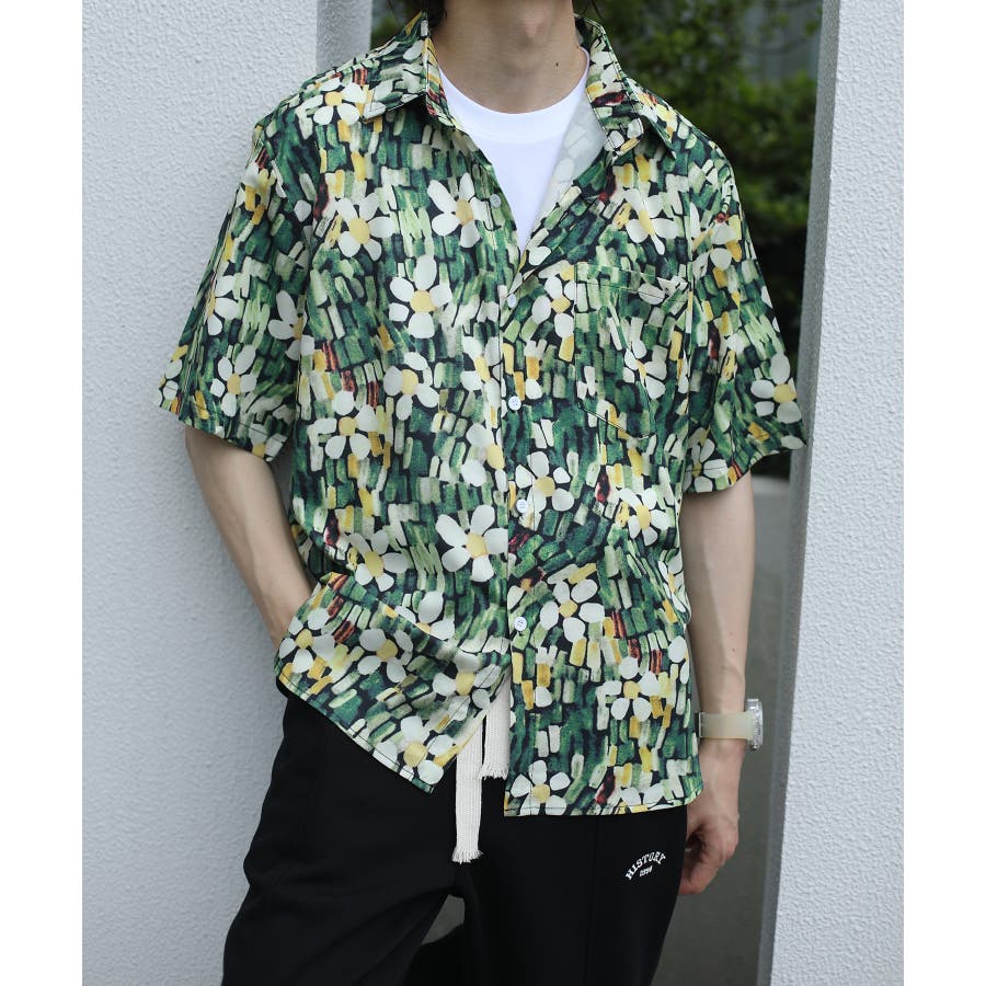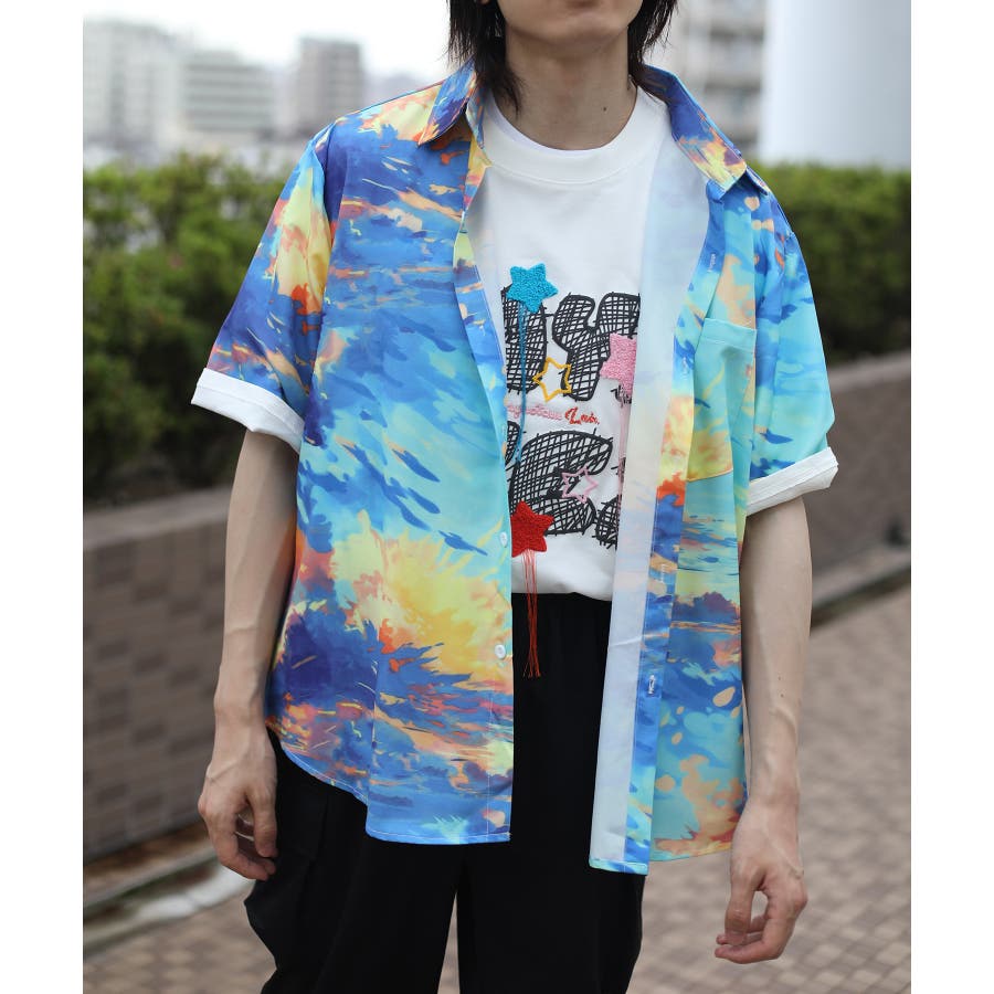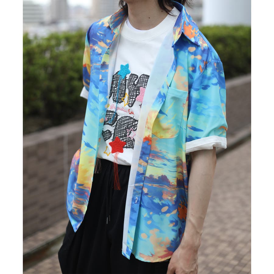 HOOK の新作!レトロ柄がお洒落な総柄シャツシリーズが登場!落書き柄、絵画柄、フルーツ柄、抽象柄、幾何学柄…今季の総柄シャツのバラエティ豊富なデザインに。水彩で描いたようなにじみが、古着のようなレトロ感を演出しています。やや薄手で柔らかな質感のポリエステル素材を使用。シルエットは程よくオーバーサイズにしており今らしいアイテムです。タックインやアウトスタイルでもトレンド感漂うコーディネートを楽しめる一枚