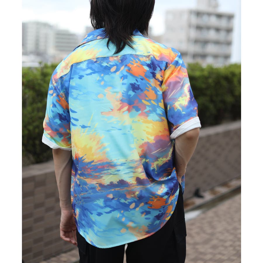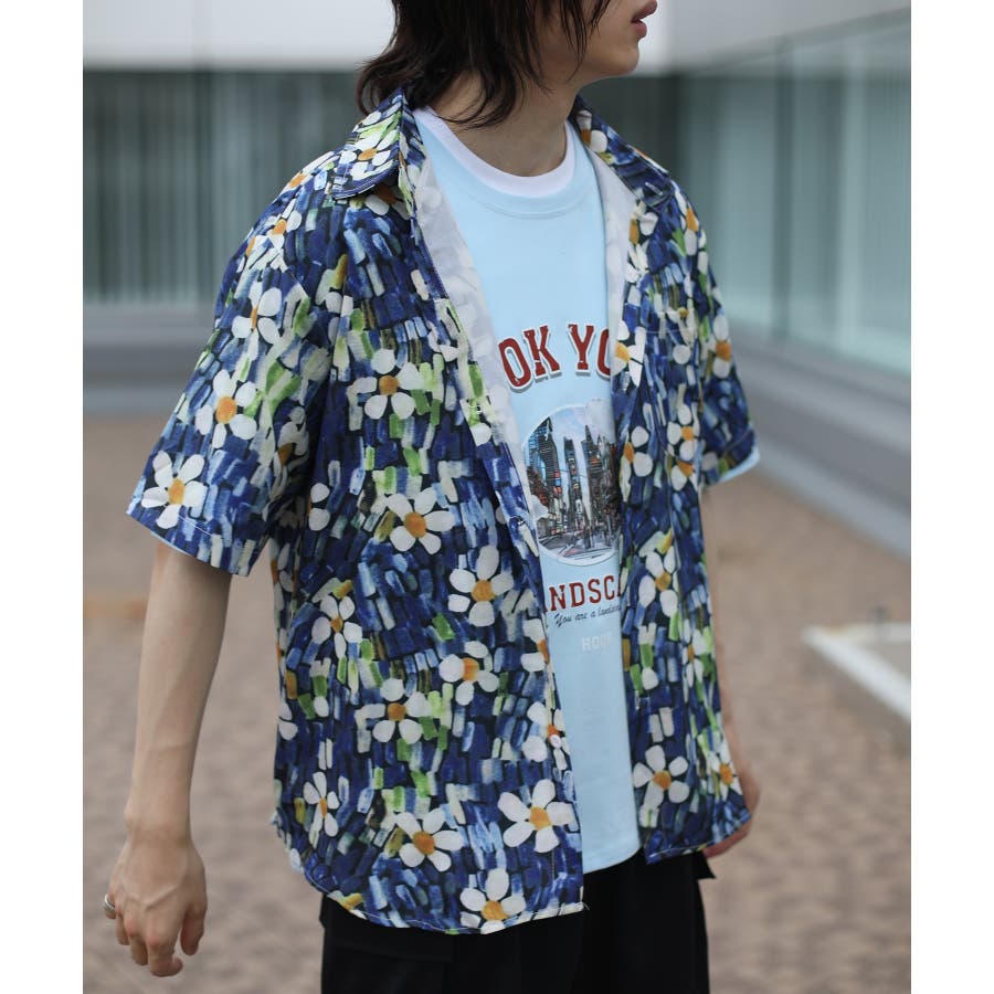 古着風油絵総柄ビッグシャツ 柄シャツ 韓国ファッション