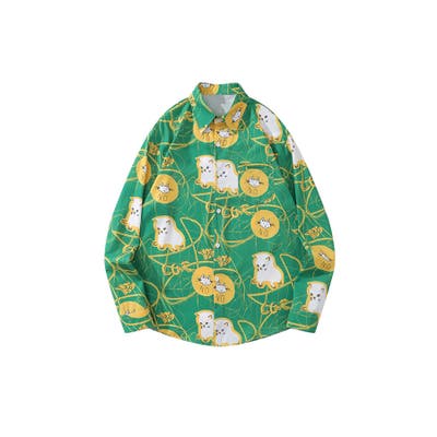 【HOOK】かわいい動物イラスト総柄プリントシャツ