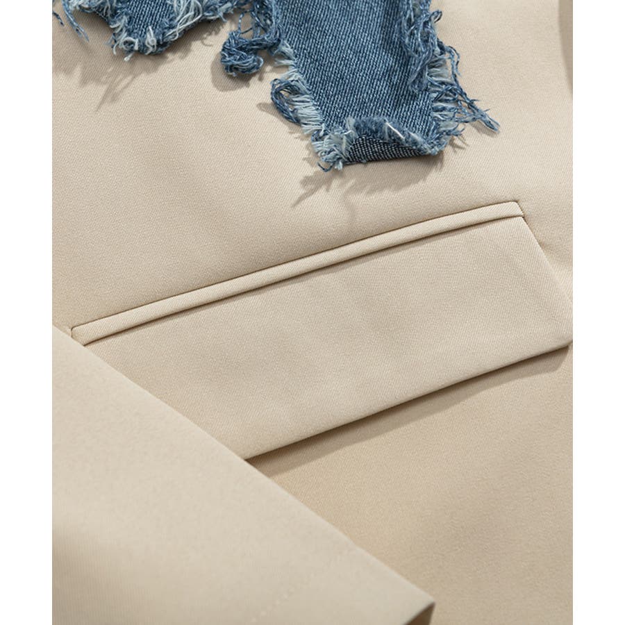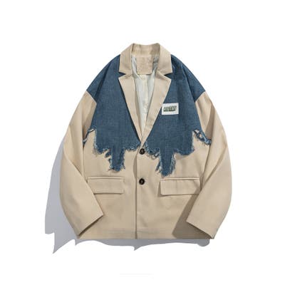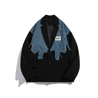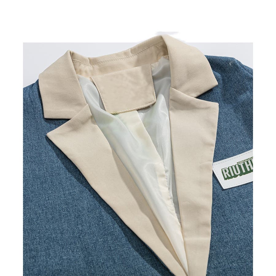 【HOOK】個性派 デニム異素材切り替えデザインテーラードジャケット