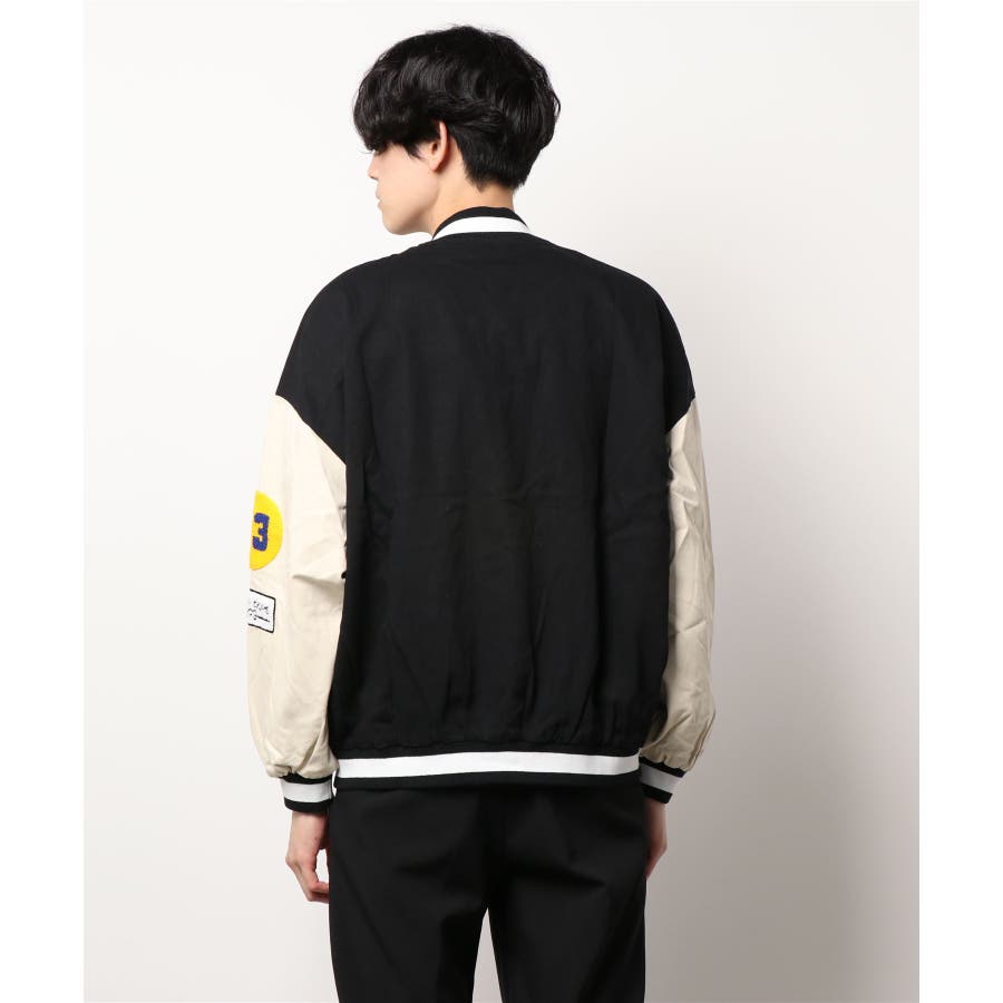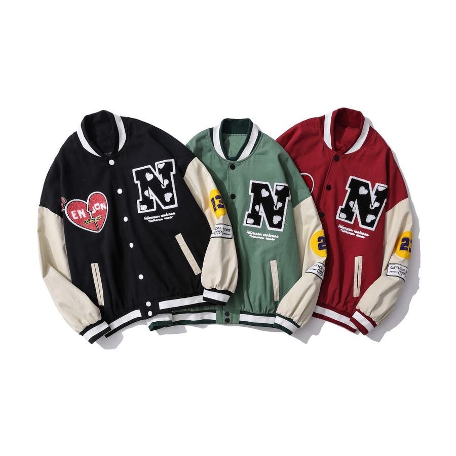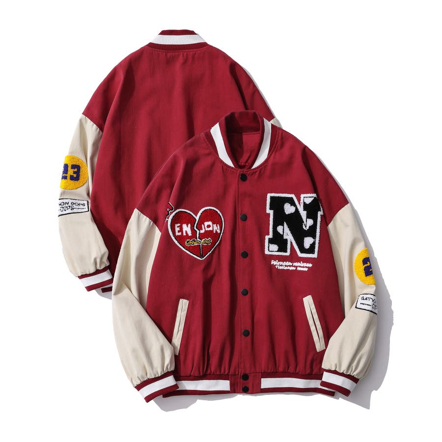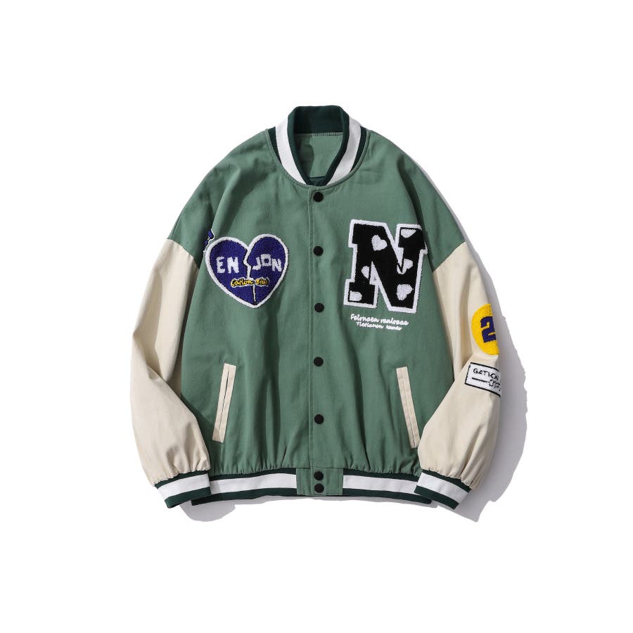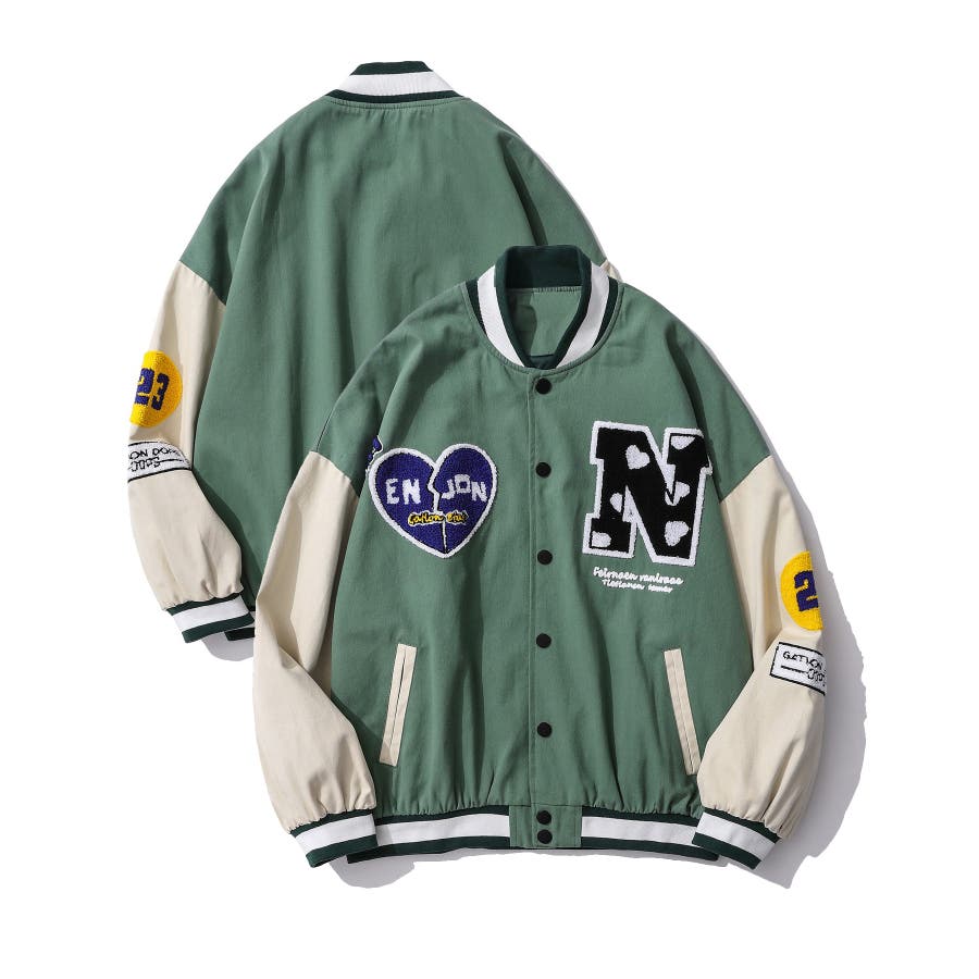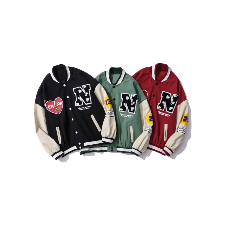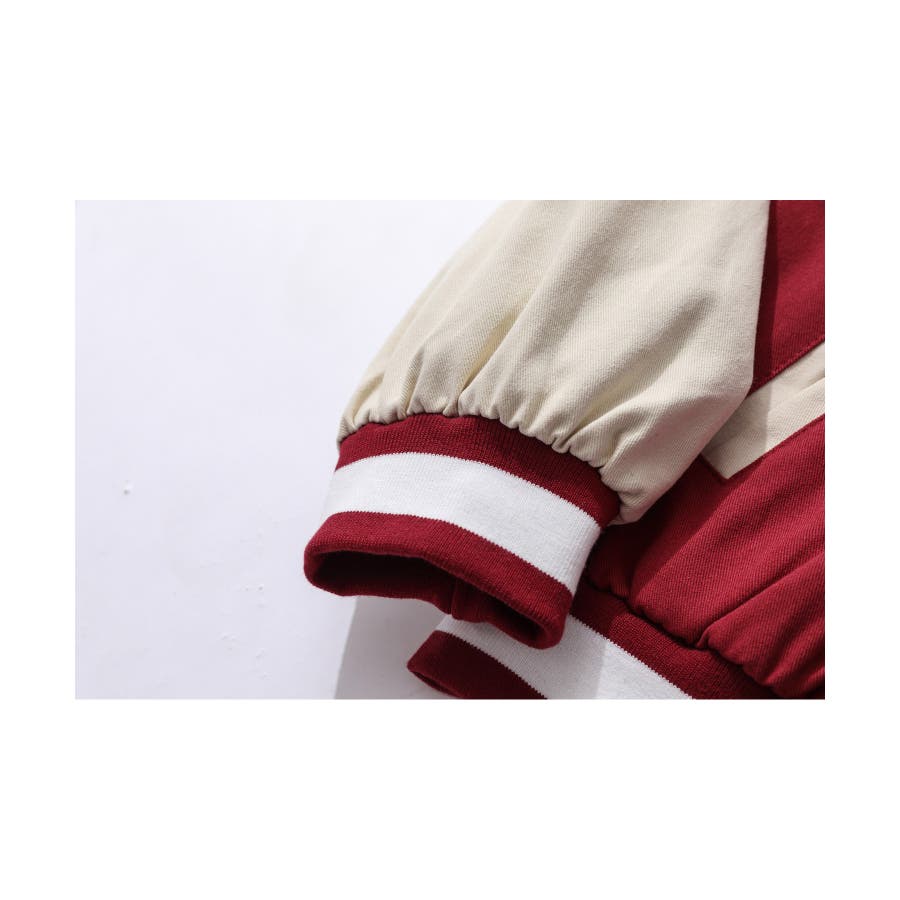 HOOK新作 ユニセックス アメカジ袖配色切り替えドッキングブルゾン