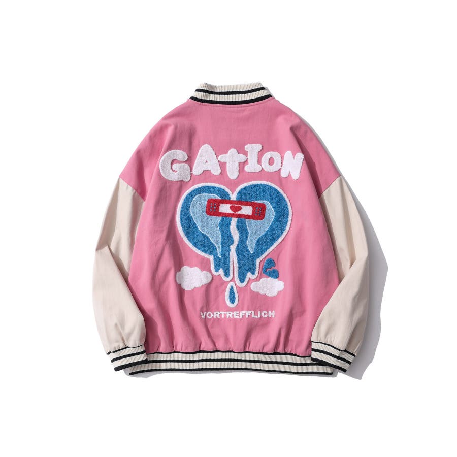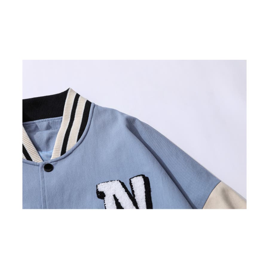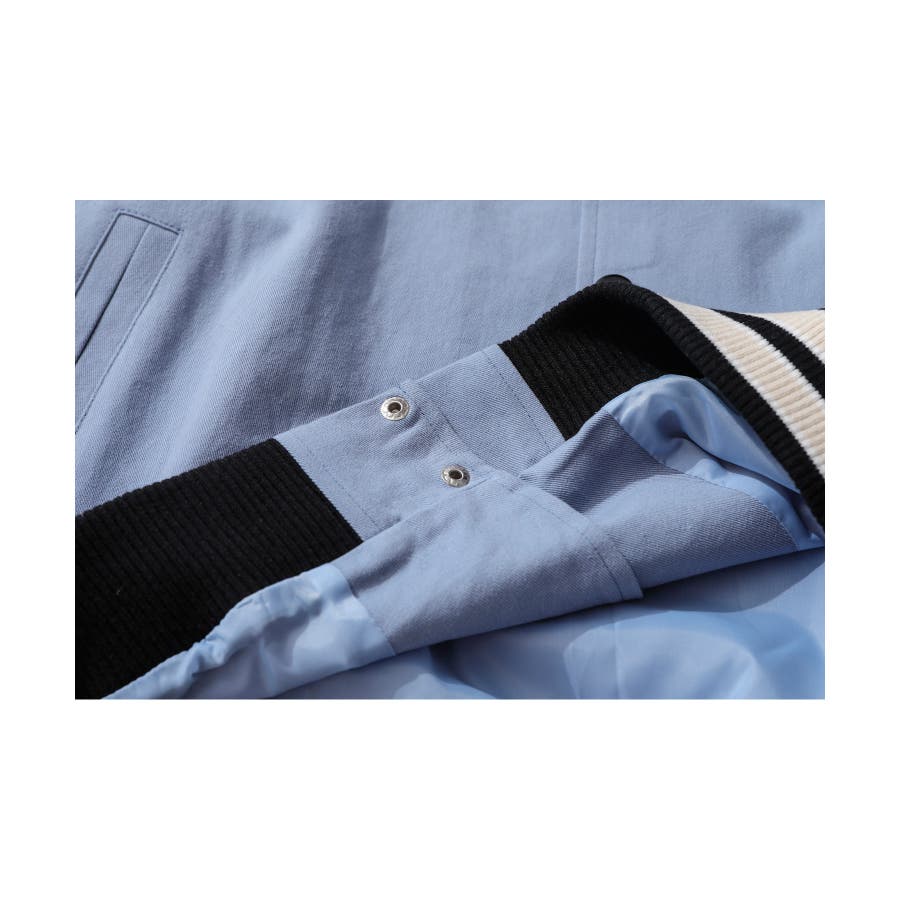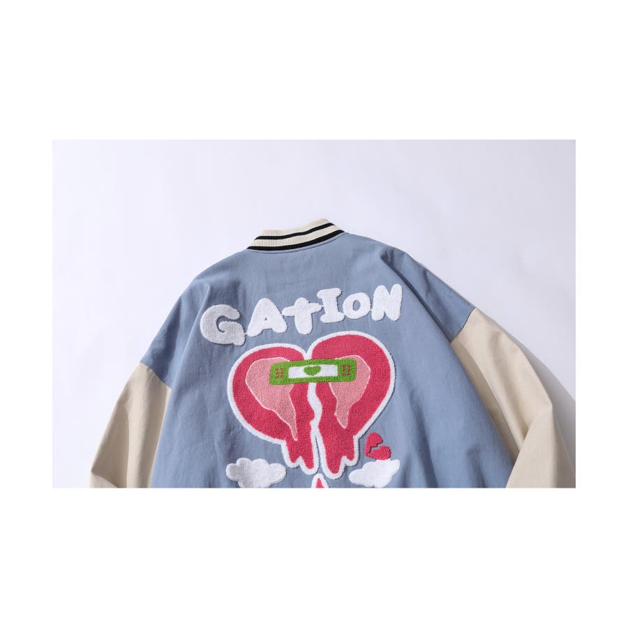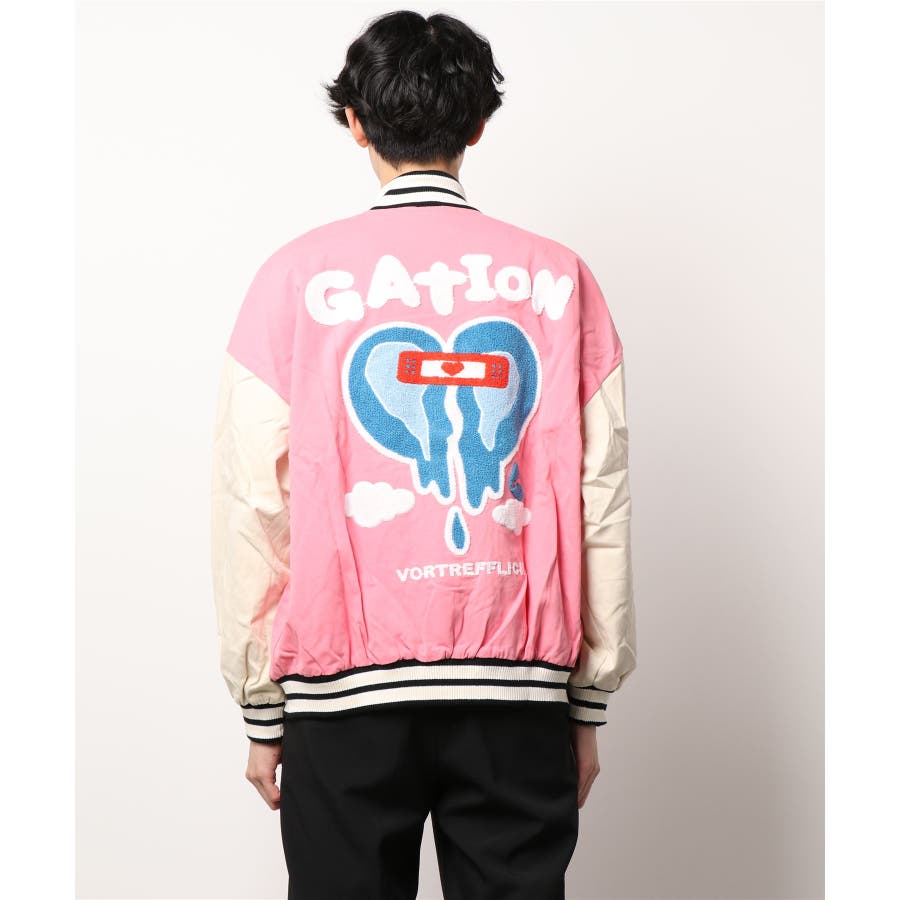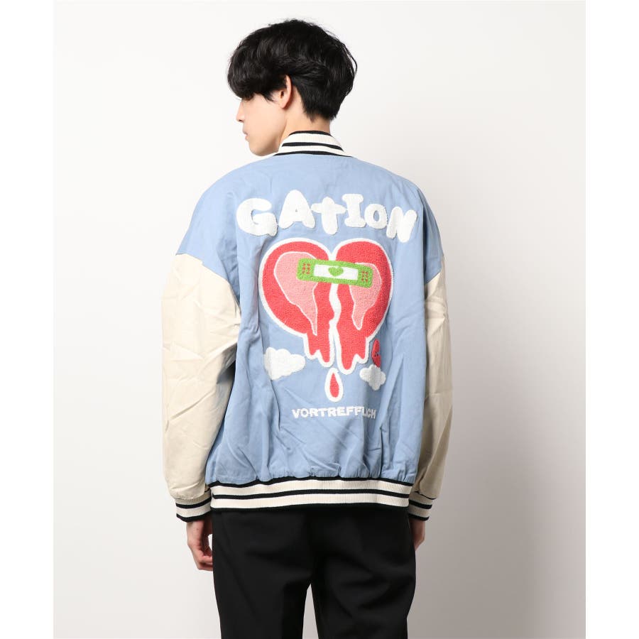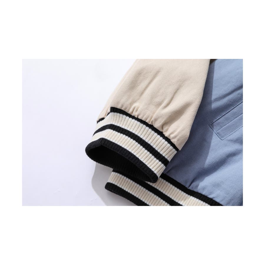 HOOK新作 アメカジ袖配色切り替えドッキングブルゾン ワッペン刺繍入り
