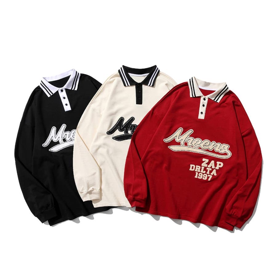 新作!HOOK アメカジロゴ刺繍ポロスウェット ストリート系
