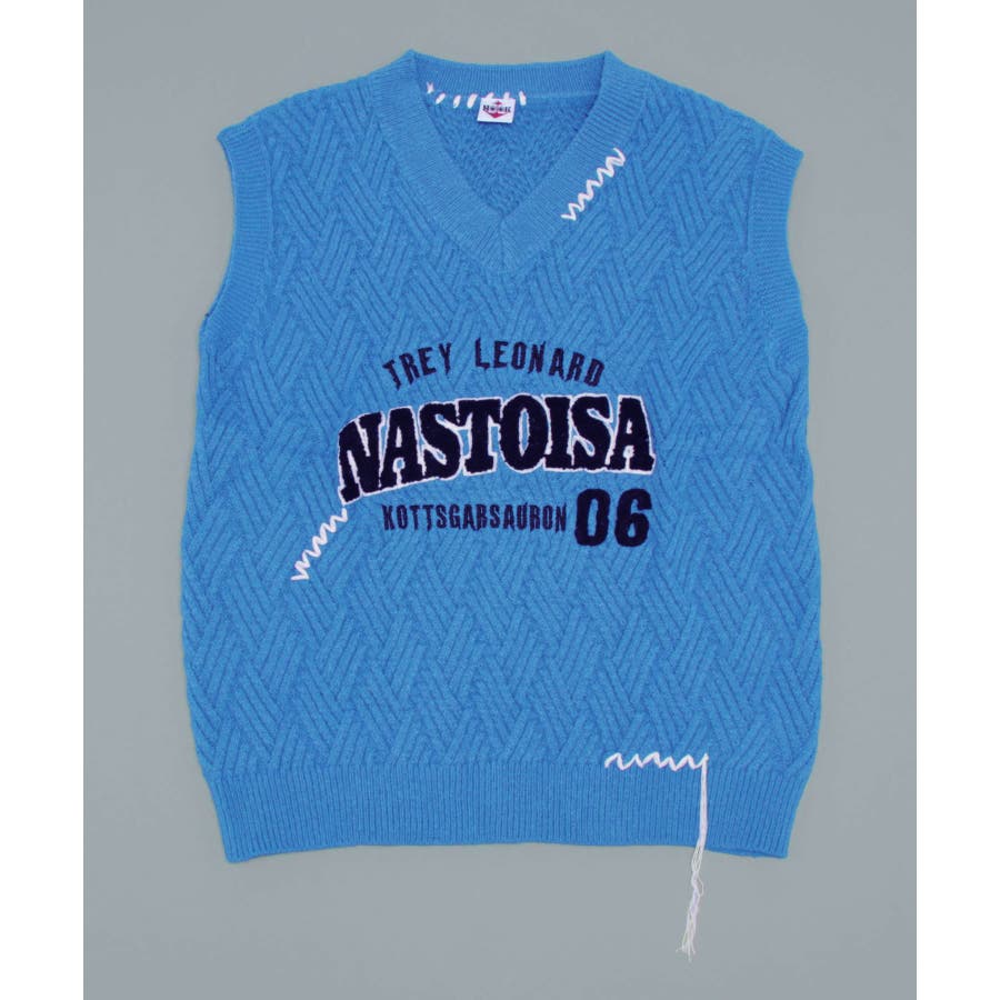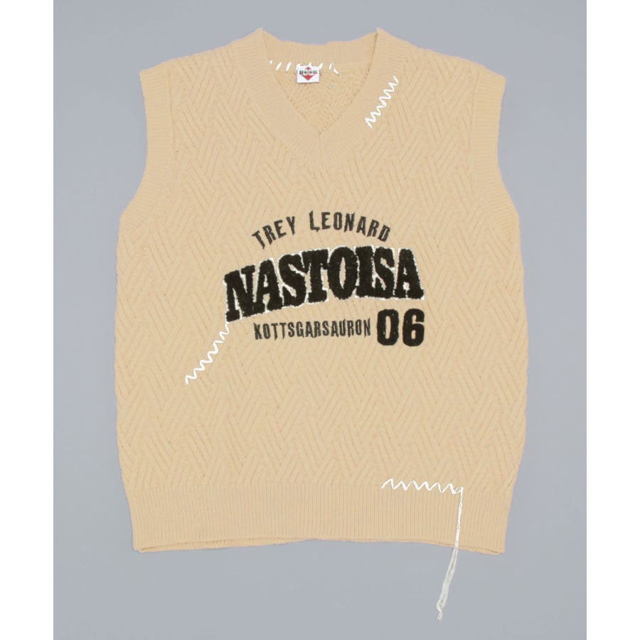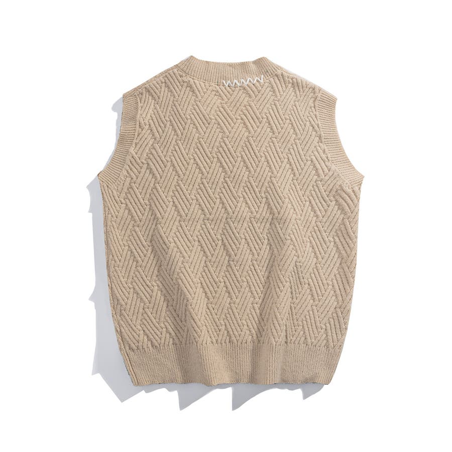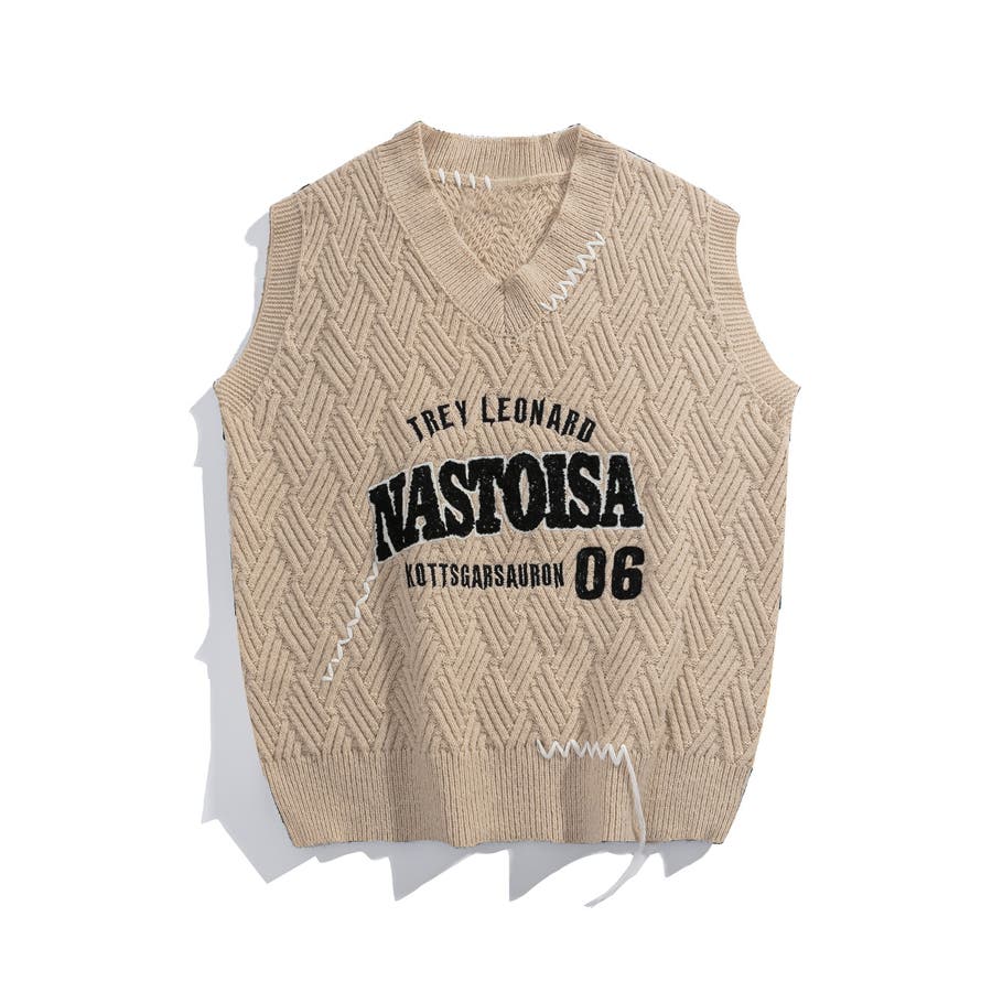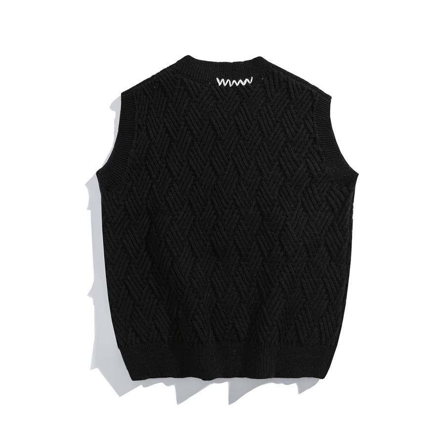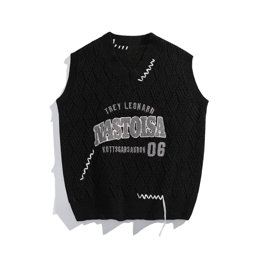 英字刺繍Vネックニットベスト ストリート系 オラオラ系
